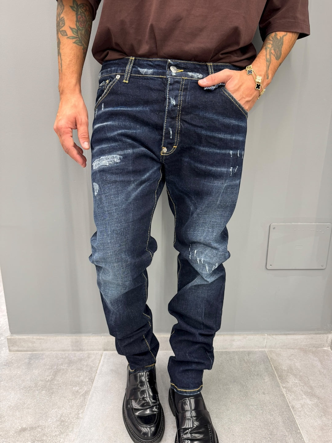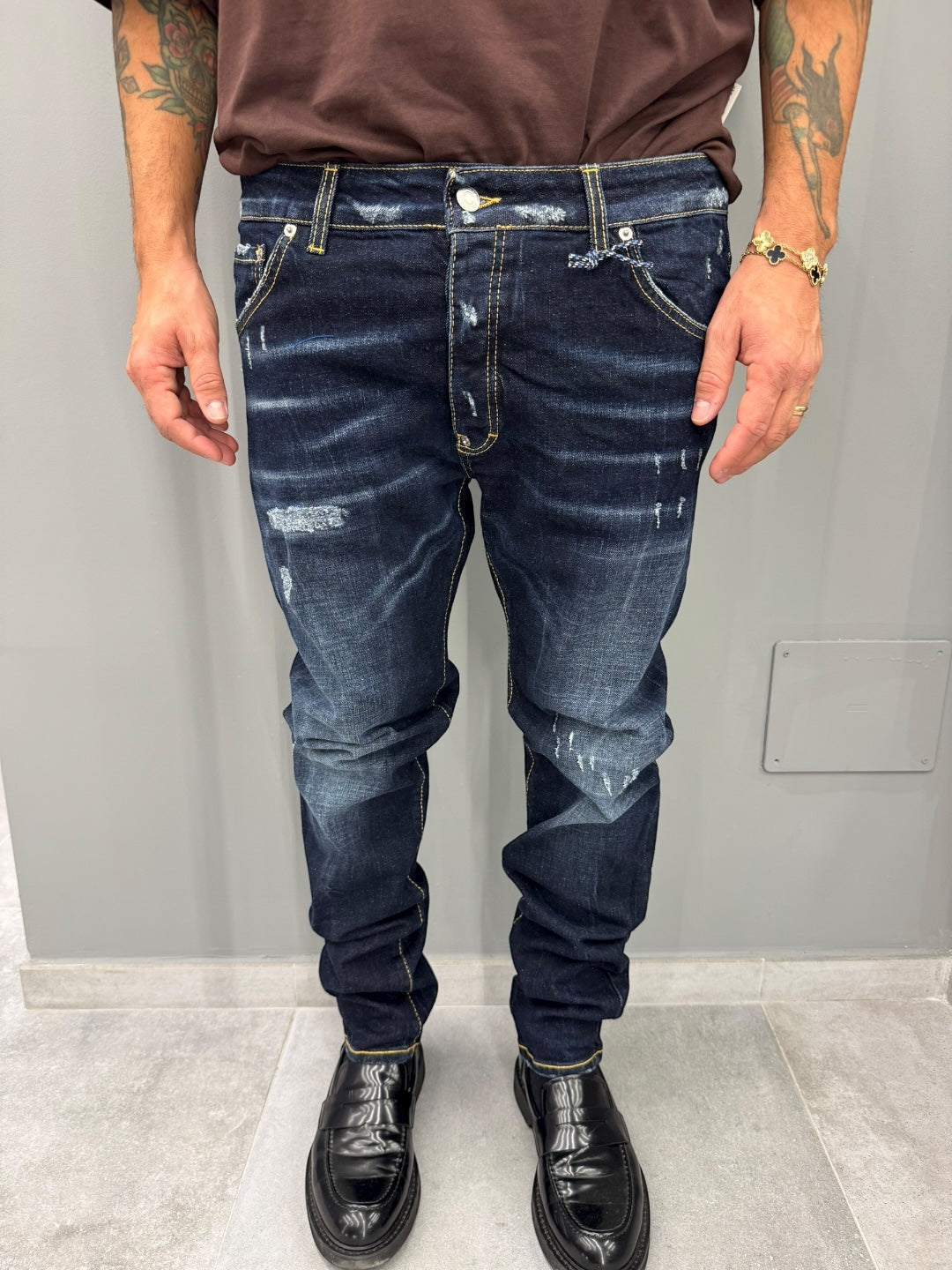 Il design contemporaneo presenta una tonalità di blu scuro con dettagli effetto vissuto, che donano un look sofisticato ma allo stesso tempo disinvolto. Perfetti per passare facilmente da un impegno formale a un uscita serale con amici.