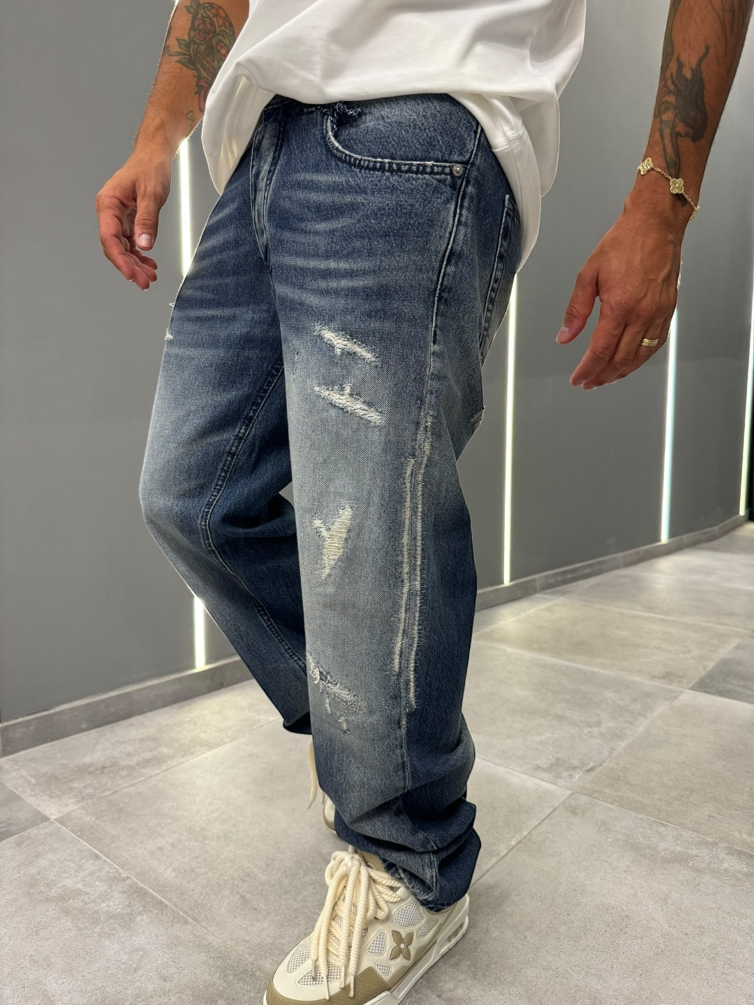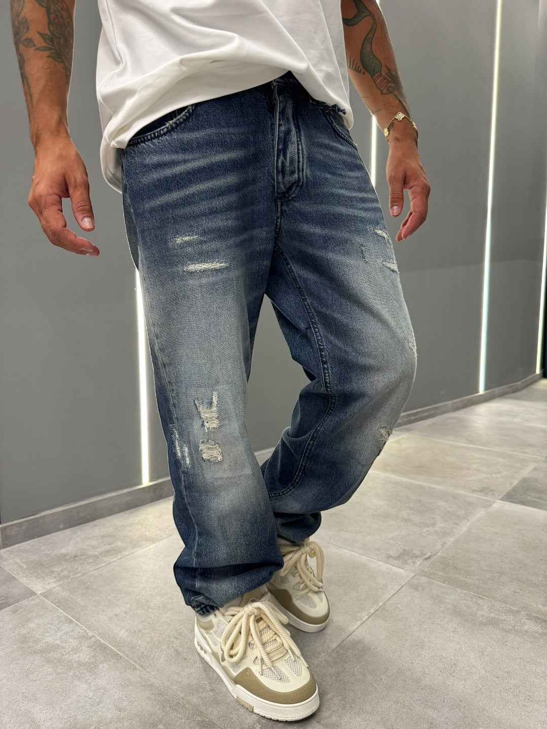 Scopri l'energia di uno stile urbano autentico con questo jeans dal carattere unico! Realizzato in denim di alta qualità, questo modello presenta un lavaggio vintage con dettagli distressed che conferiscono un look vissuto e dinamico, perfetto per chi ama distinguersi con un tocco di grinta. Le strappi strategici e le sfumature sfumate aggiungono movimento e personalità al capo, mentre il taglio dritto assicura una vestibilità comoda e versatile, ideale per affrontare ogni giornata con comfort senza rinunciare allo stile.