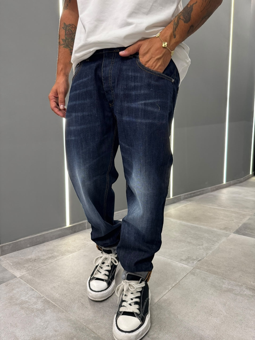 Il modello è alto 1,78 x 75kg indossa una 48