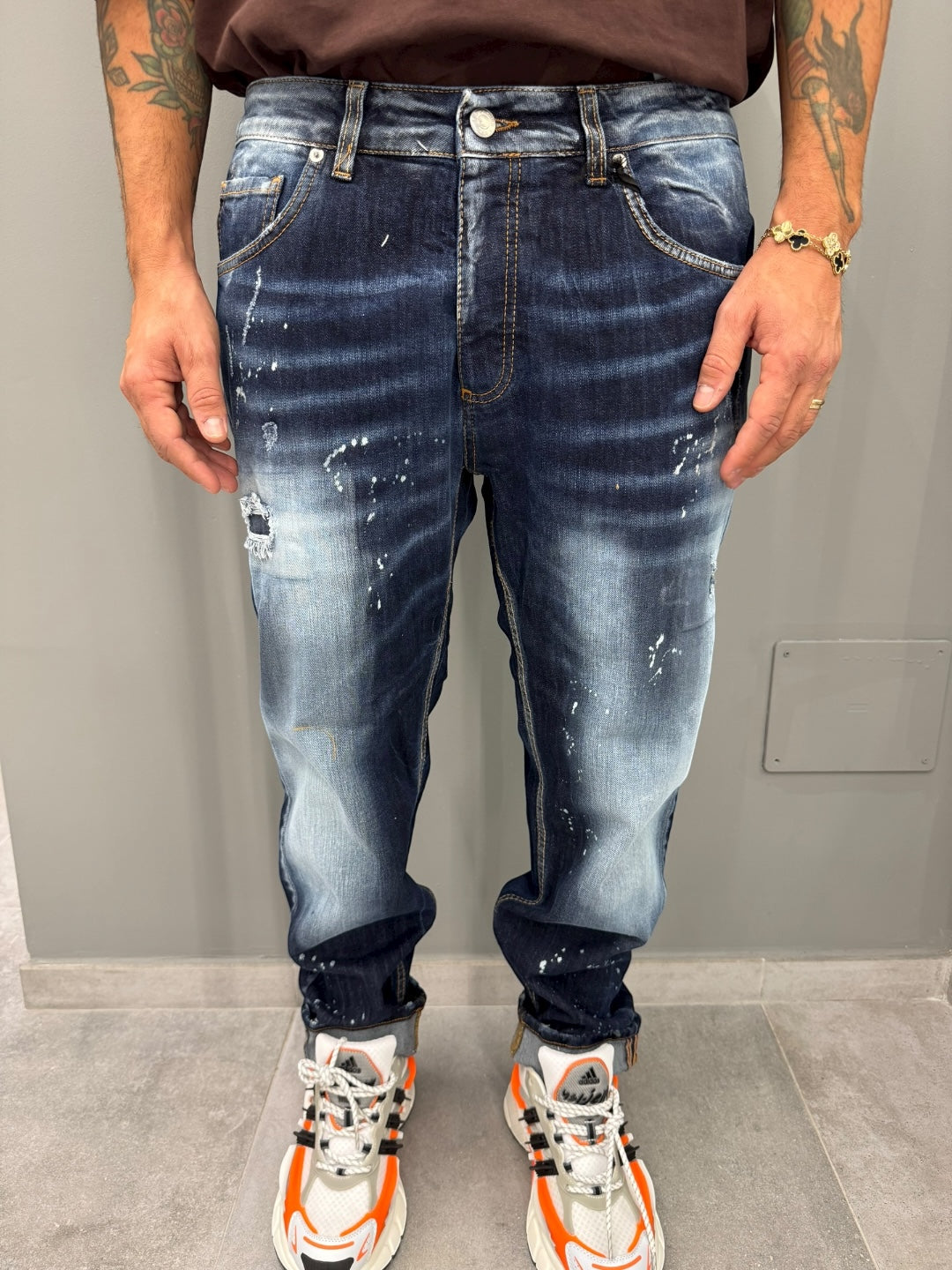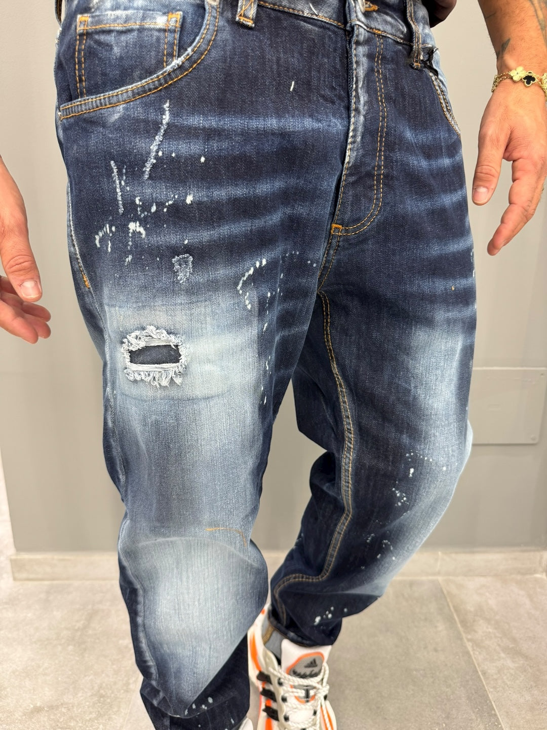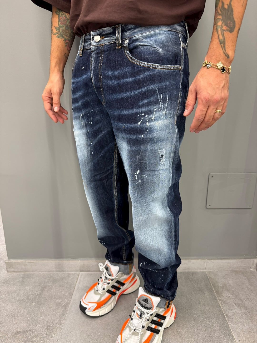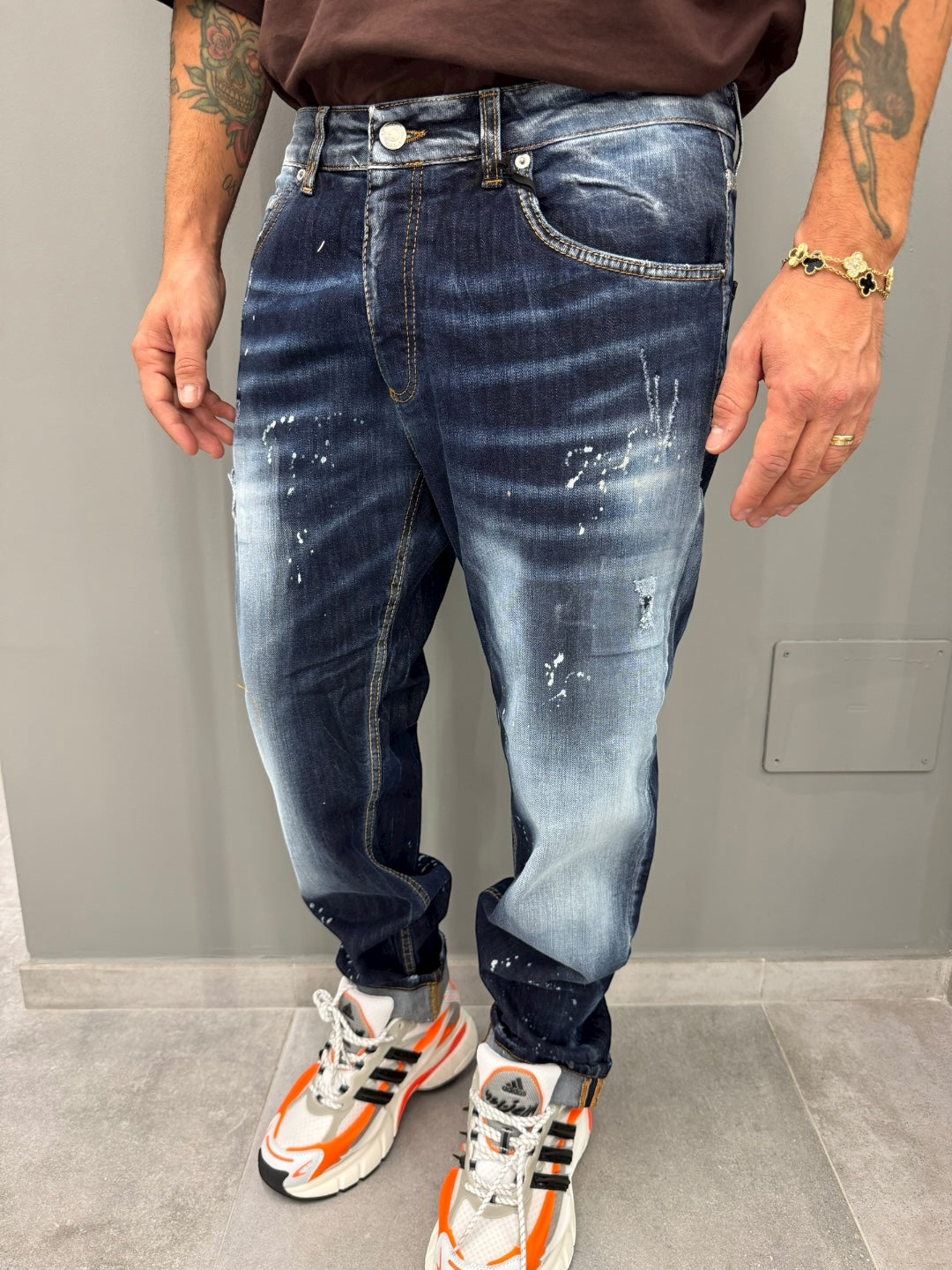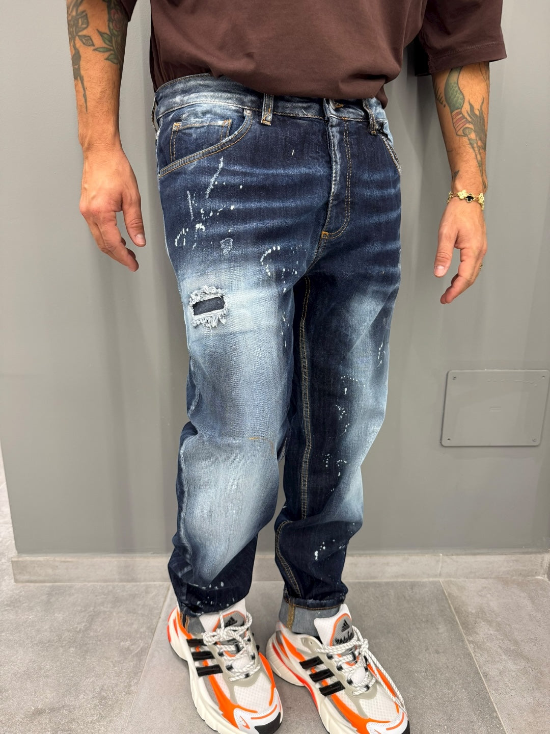 Scopri i jeans regular che rivoluzioneranno il tuo guardaroba! Realizzati con un denim di alta qualità, questi jeans offrono una vestibilità classica perfetta per ogni occasione. Il lavaggio blu scuro, arricchito da dettagli scoloriti e piccole abrasioni, aggiunge un tocco di carattere e modernità che ti farà distinguere con stile.