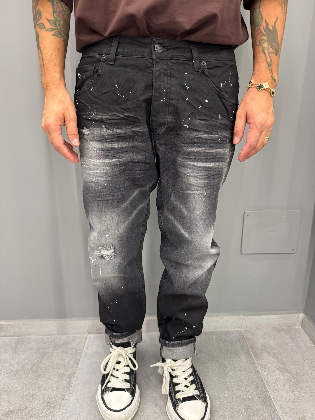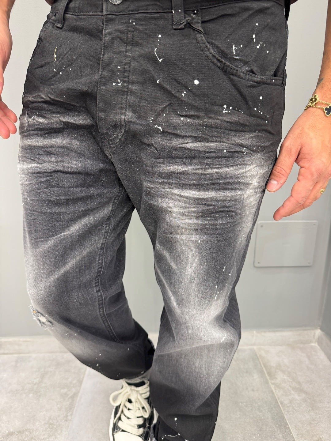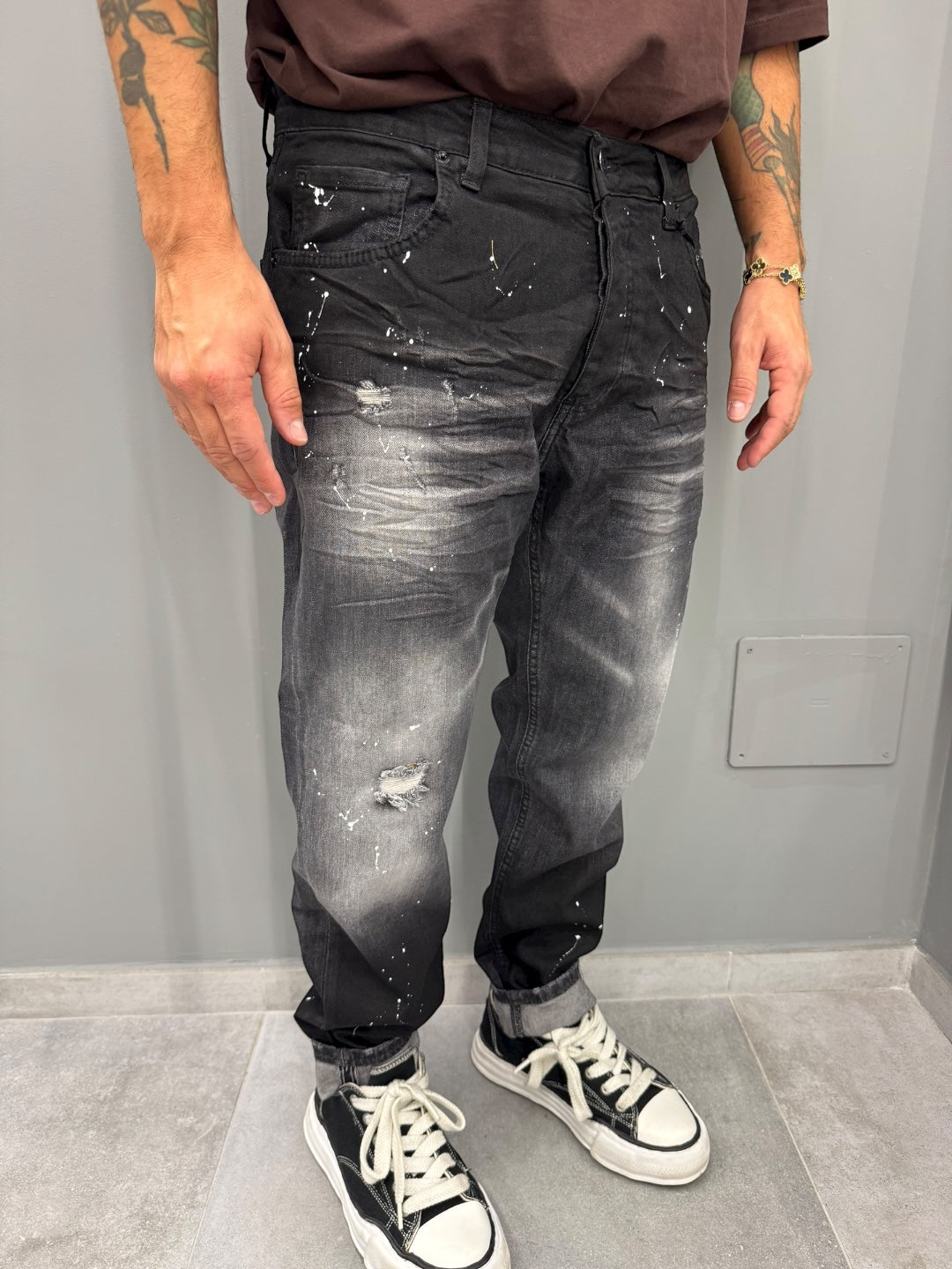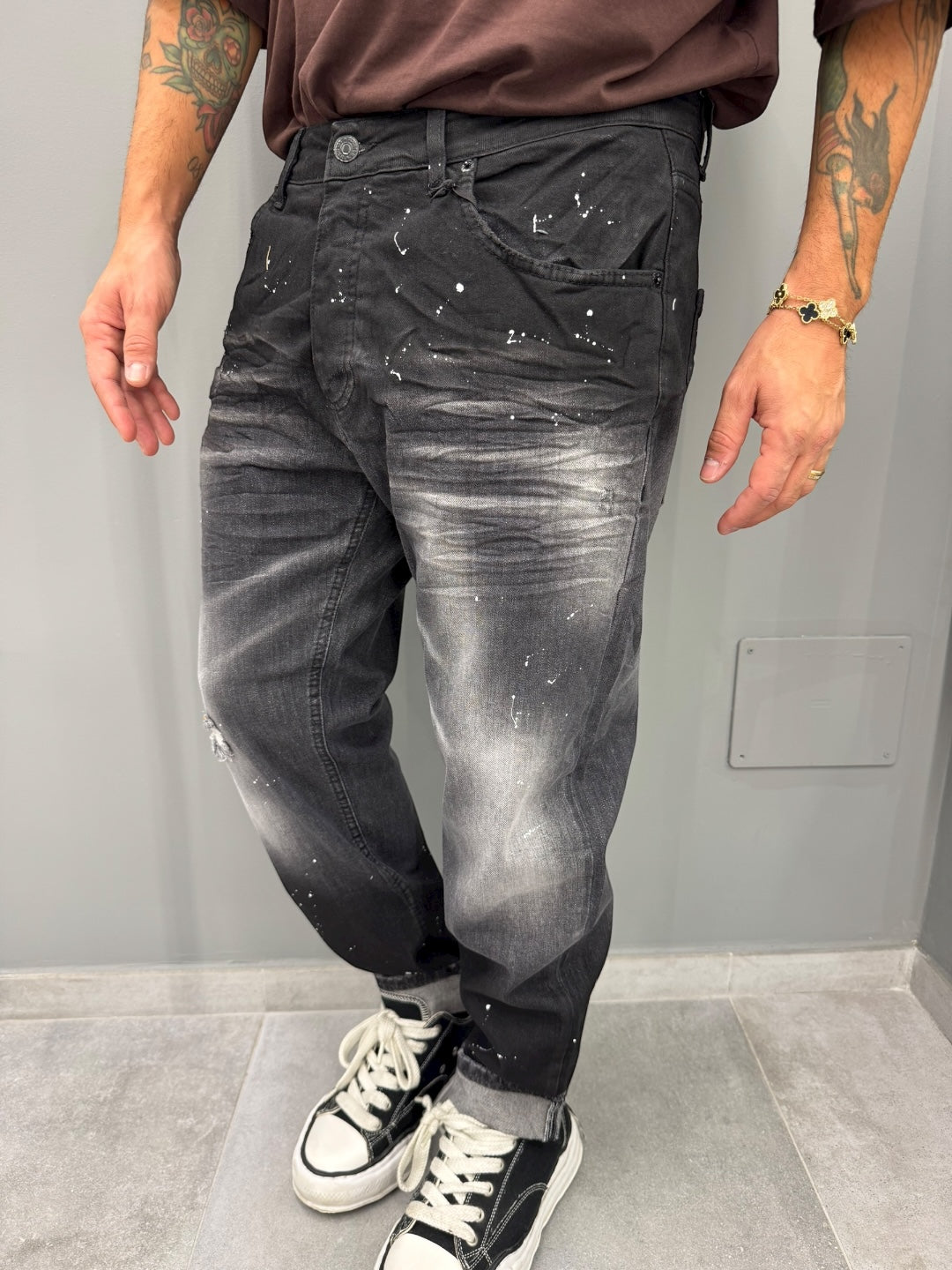 Il lavaggio nero con dettagli effetto schizzato aggiunge un tocco di originalità, conferendo ai jeans un aspetto unico e alla moda. Sono ideali per chi vuole aggiungere un elemento distintivo al proprio outfit senza esagerare.