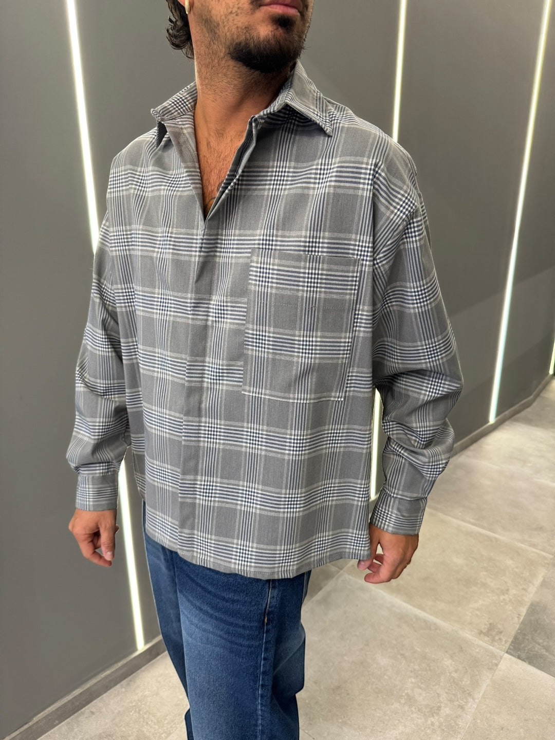 Scopri la nostra camicia a quadri grigi, un capo che combina eleganza senza tempo e comfort moderno. Realizzata in un tessuto di qualità superiore, offre una sensazione morbida e una vestibilità perfetta per ogni occasione.