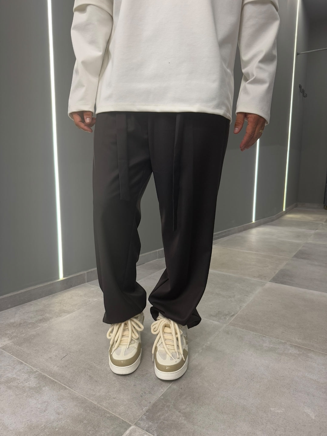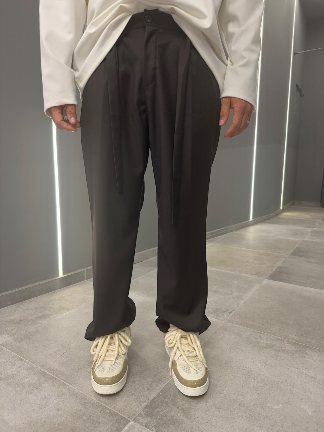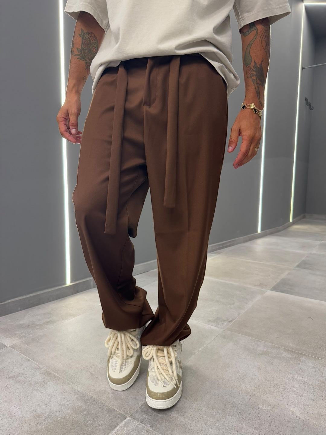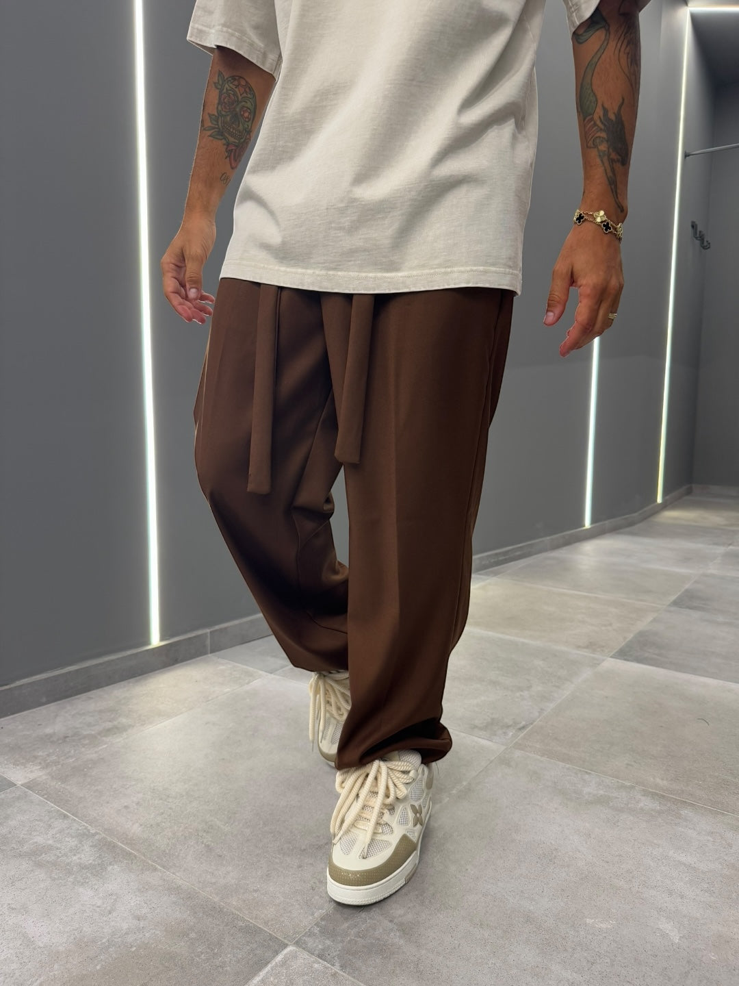 Scopri l’eleganza senza tempo e il comfort assoluto di questo pantalone dal taglio ampio e sartoriale, perfetto per chi vuole distinguersi con stile in ogni occasione. Realizzato in un tessuto di alta qualità, morbido e resistente, questo pantalone è dotato di una cintura integrata che aggiunge un tocco di personalità e praticità al look.