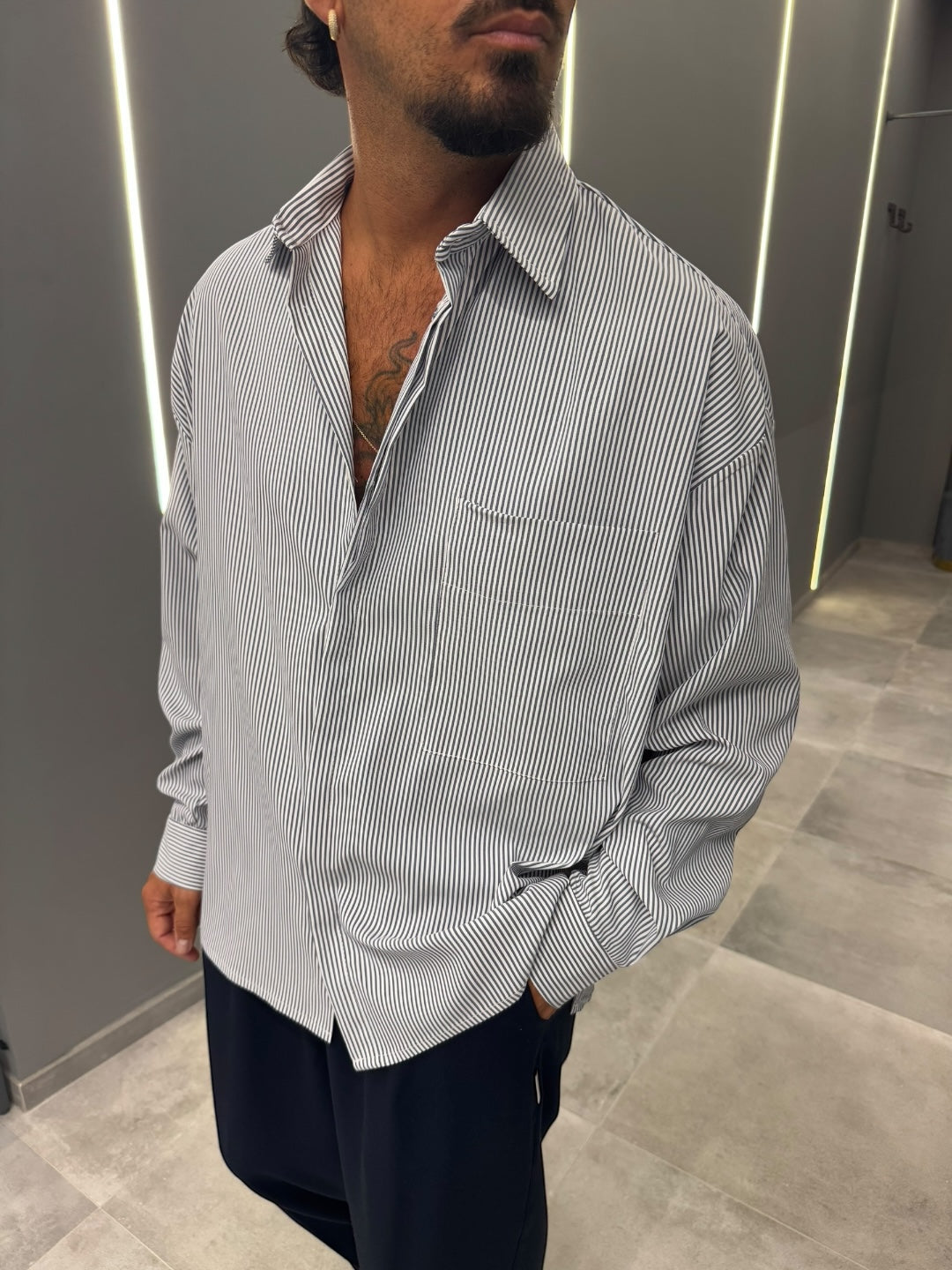 Scopri la nostra camicia a righe, l’alleato perfetto per chi cerca una vestibilità comoda e alla moda! Realizzata in morbido cotone, questa camicia offre un comfort eccezionale senza rinunciare a uno stile impeccabile. Il taglio leggermente relaxed si adatta magnificamente a ogni figura, garantendo una libertà di movimento che la rende ideale per le tue giornate più dinamiche.