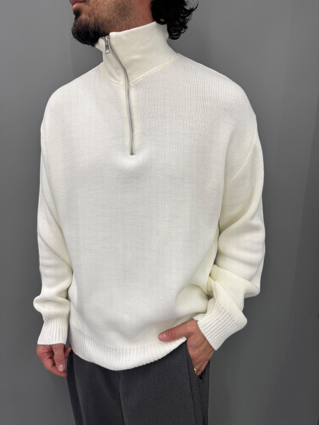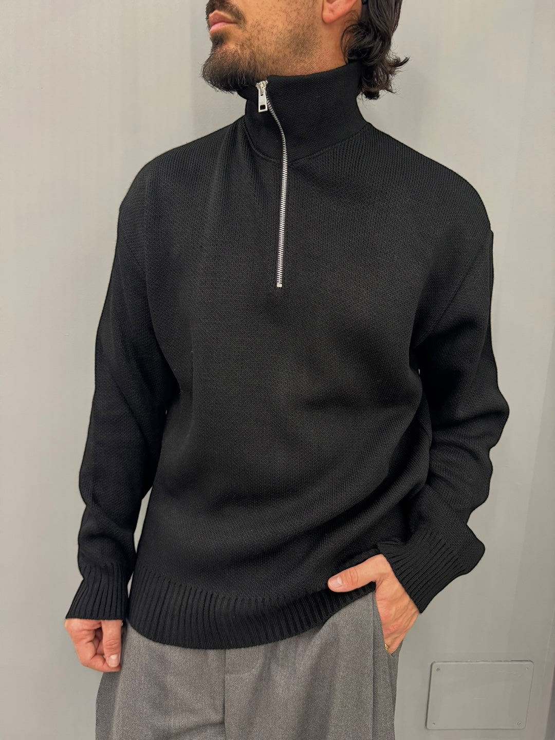 Maglione a Collo Alto con Zip - Eleganza e Comodità