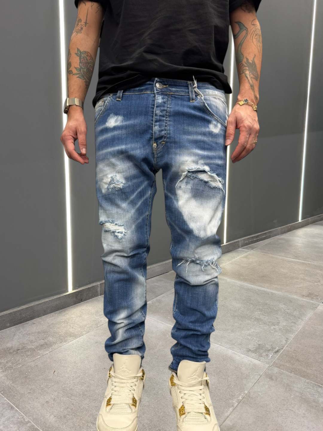 Il modello è alto 1,78 e pesa 76kg , indossa una Taglia 48