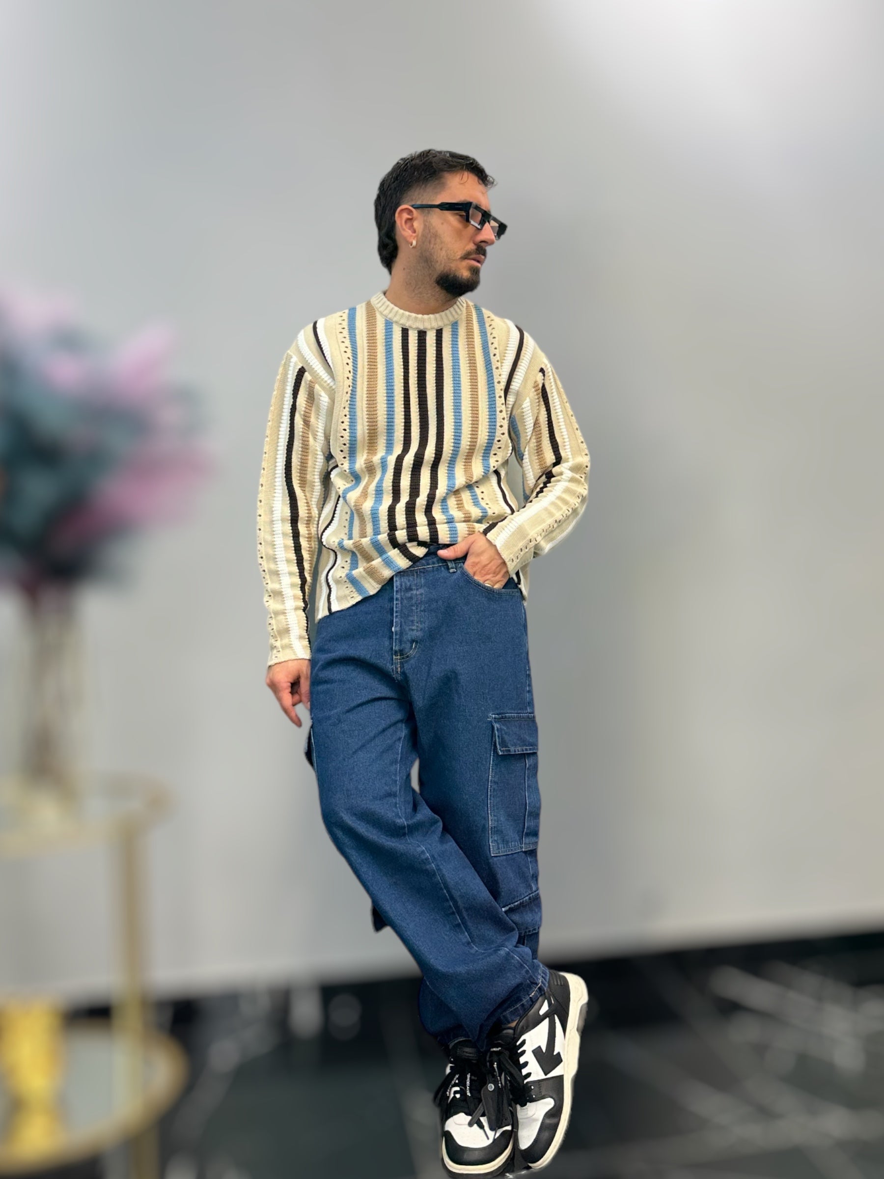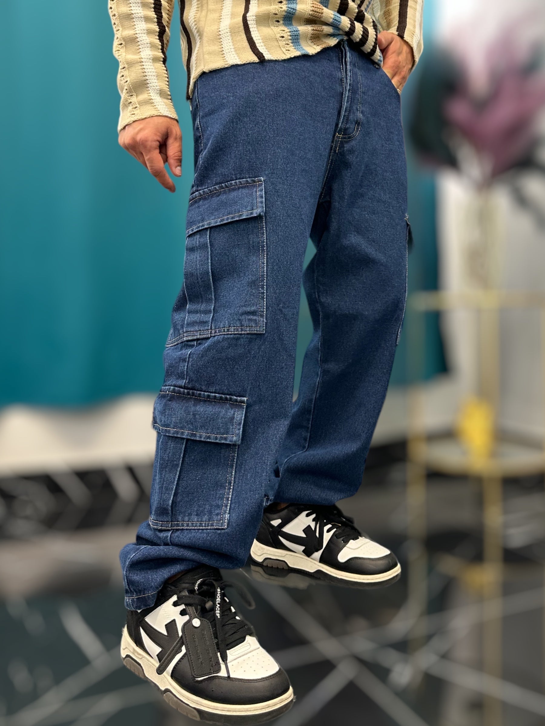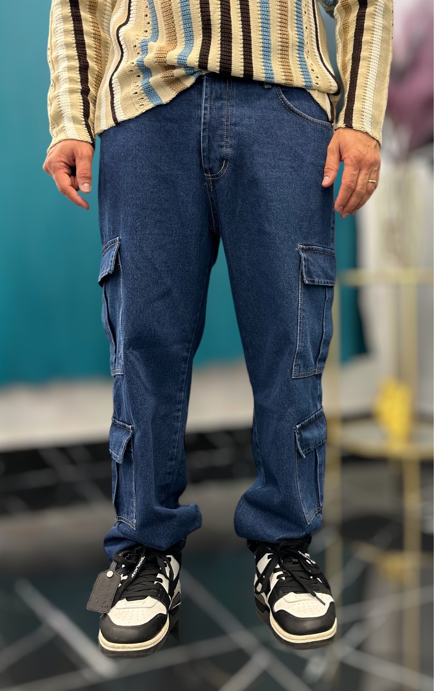 il cargo in blu jeans con fondo largo e multi tasconi è un capo di abbigliamento casual e funzionale. Realizzato in resistente denim blu, questo pantalone offre una vestibilità comoda che ti permette di muoverti liberamente. I tasconi laterali offrono spazio extra per riporre piccoli oggetti come chiavi, telefono o portafogli, rendendo questi pantaloni ideali per chi ha bisogno di comodità e praticità nella sua vestizione quotidiana. Il fondo largo conferisce uno stile rilassato e contemporaneo a questo capo, perfetto per un look informale ma alla moda.
