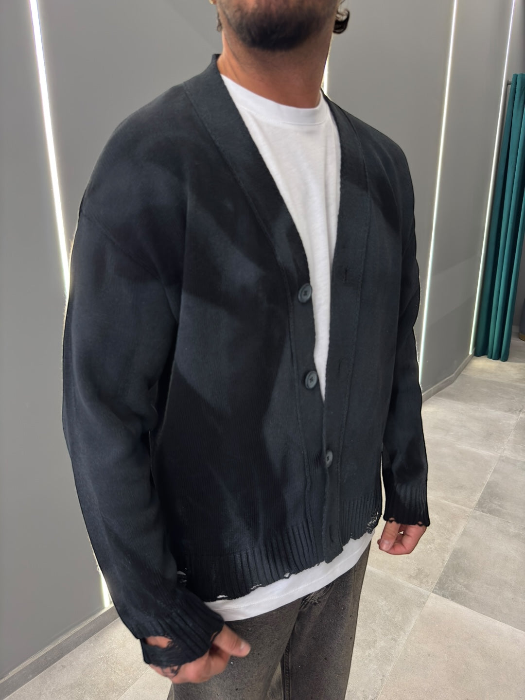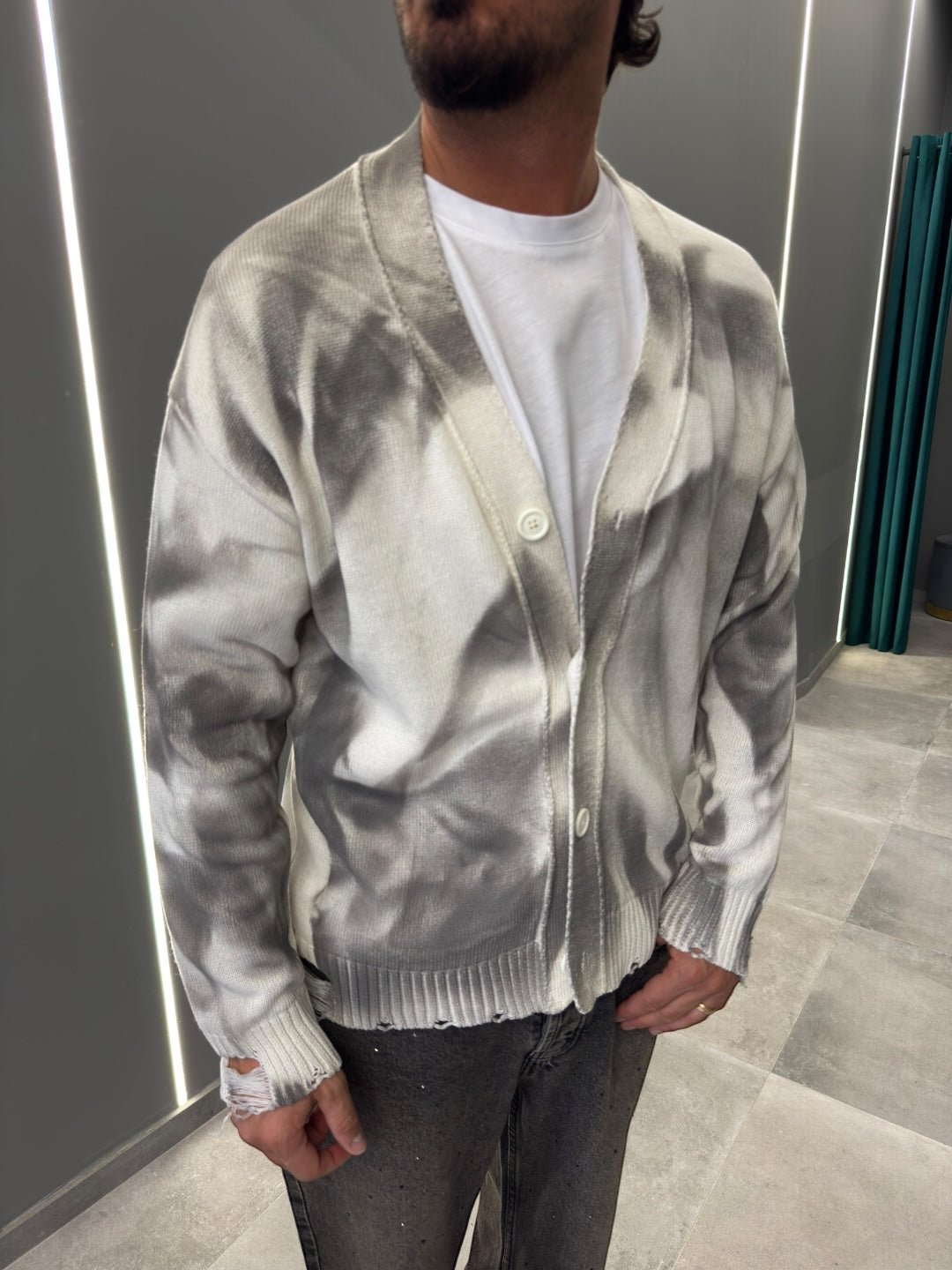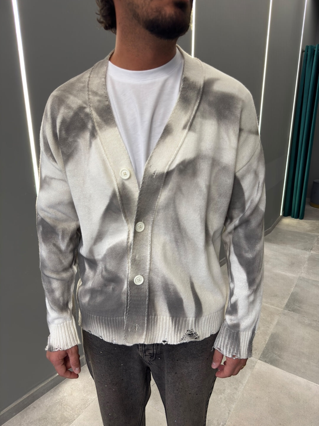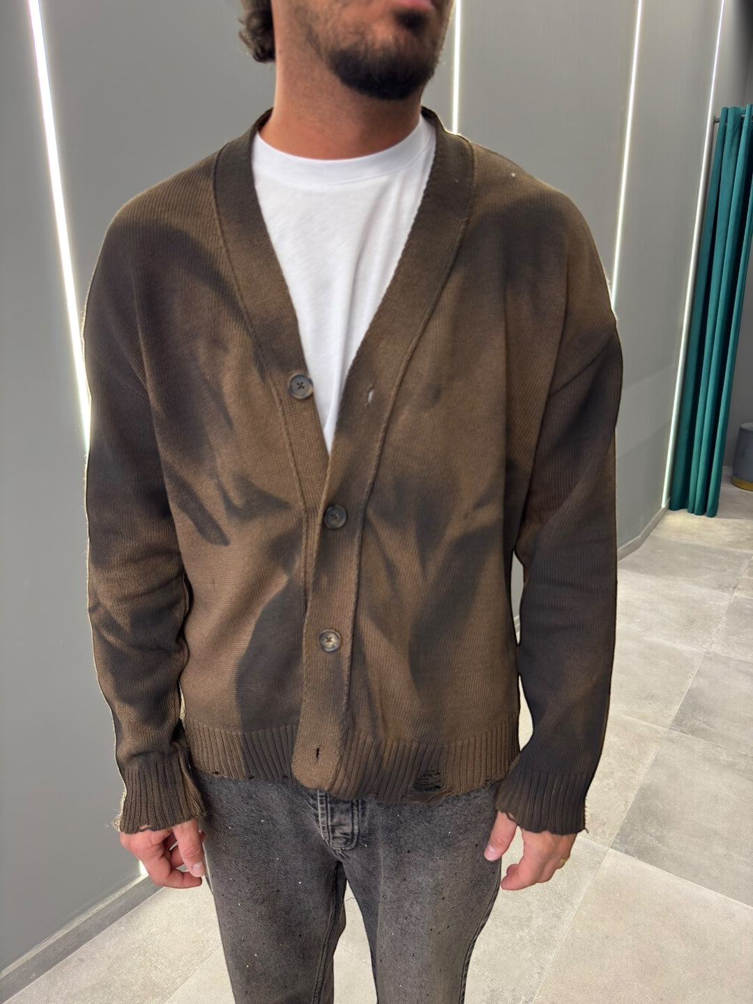 Realizzato in morbido tessuto di alta qualità, offre calore e una vestibilità rilassata. Il design con bottoni frontali e scollo a V aggiunge un tocco classico, mentre le sfumature uniche donano un aspetto contemporaneo e sofisticato.