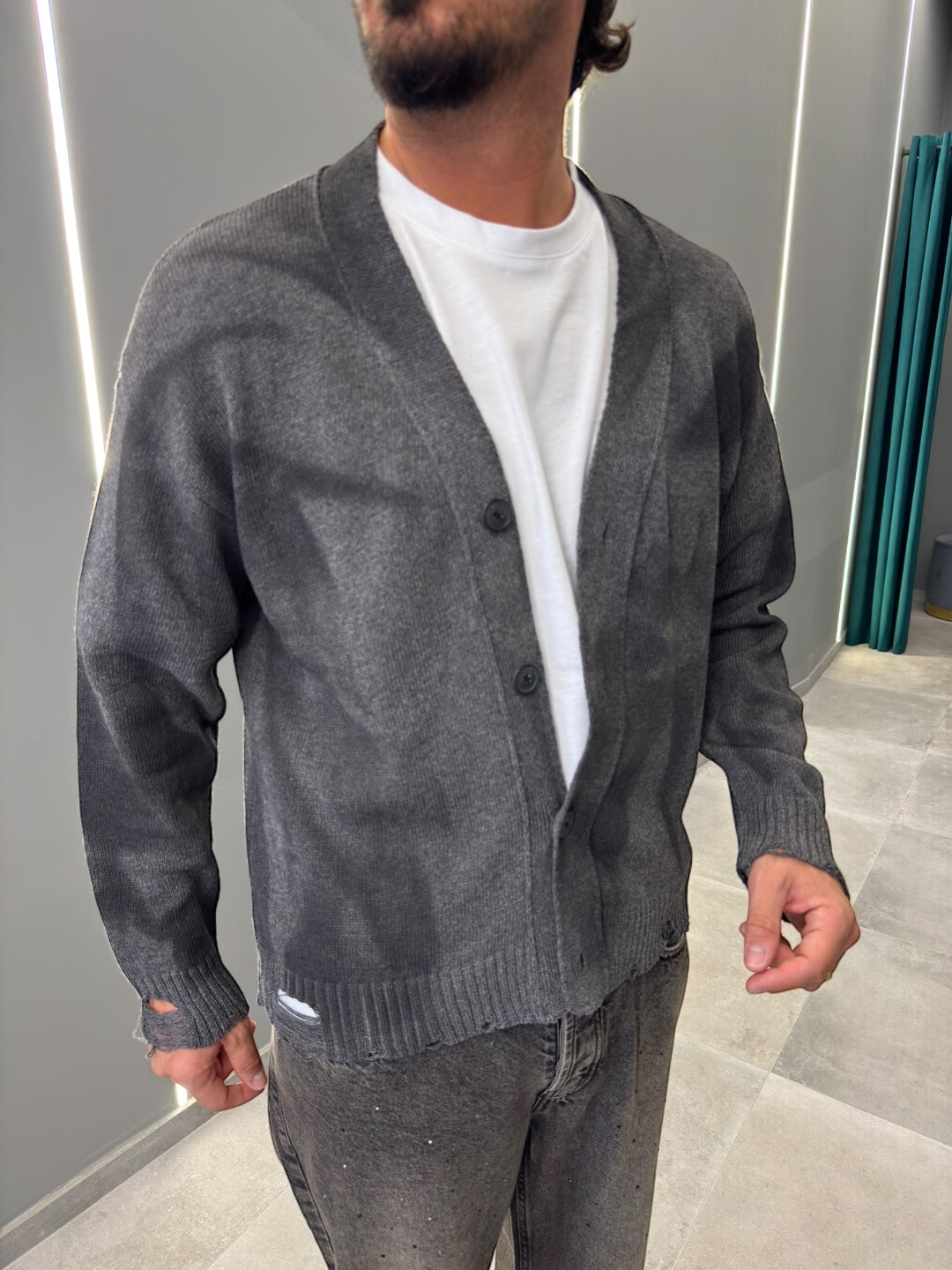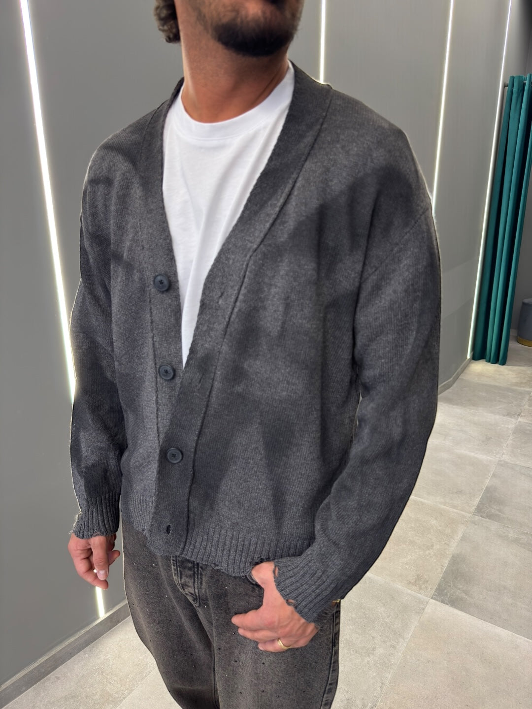 Scopri il nostro cardigan alla moda, un capo versatile che arricchisce il tuo guardaroba con eleganza e comfort. Disponibile in quattro affascinanti tonalità: grigio chiaro, marrone, nero e antracite, questo cardigan è l'ideale per ogni stagione.