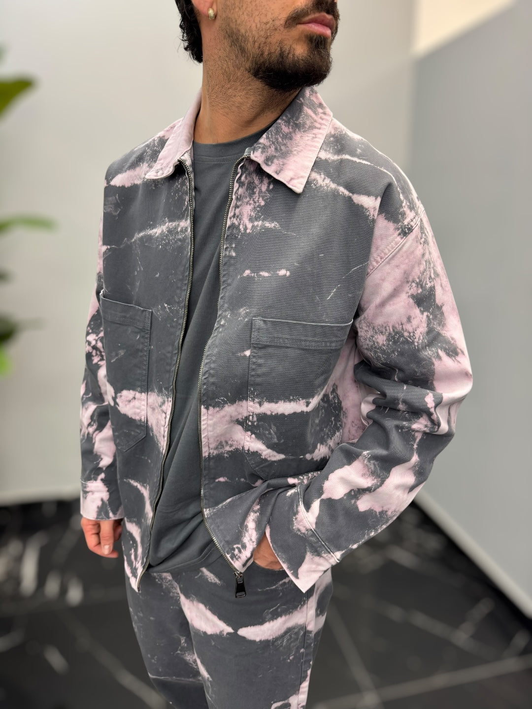 Questo coordinato in bull denim è il mix perfetto tra stile e comfort, pensato per chi ama distinguersi con eleganza e un tocco di originalità. La giacca con zip, dalle linee moderne e minimal, si abbina perfettamente al pantalone baggy, che regala un fit ampio e comodo, senza rinunciare a un look deciso. L’effetto tie-dye, vibrante e unico, conferisce al capo un carattere audace, rendendolo ideale per chi non ha paura di osare con colori e sfumature.