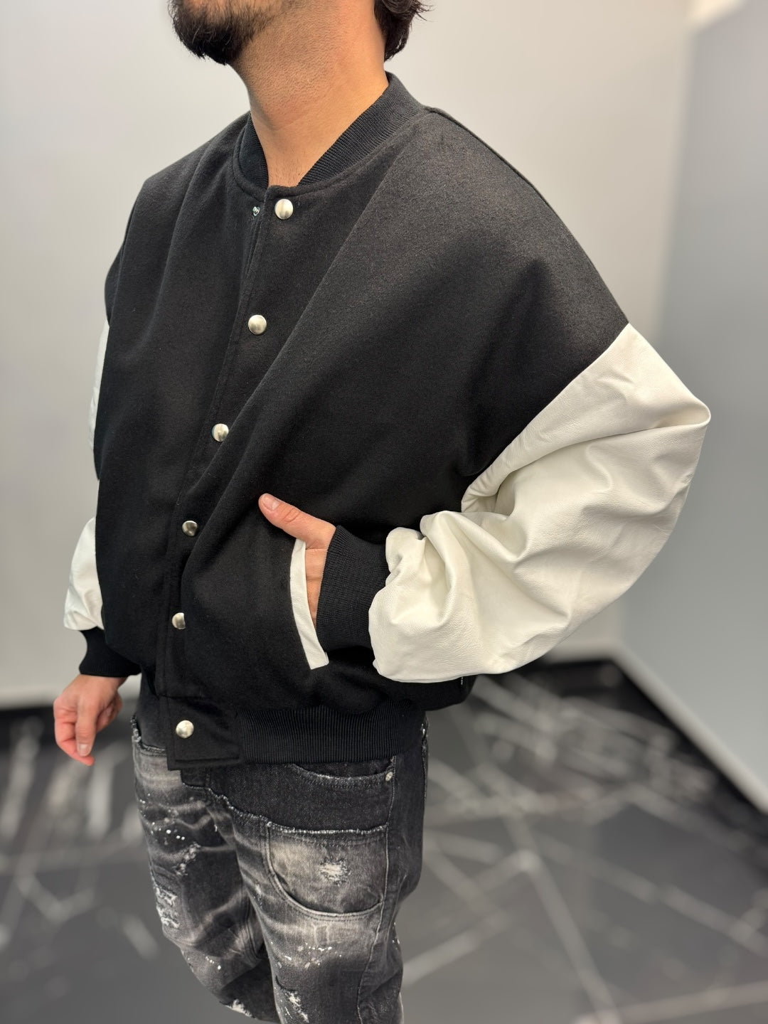 La combinazione del nero profondo con le maniche in ecopelle bianca crea un contrasto di grande impatto, aggiungendo un tocco urban-chic al tuo look. Le maniche strutturate donano carattere e raffinatezza, mentre il taglio corto lo rende ideale da abbinare a jeans o pantaloni per un effetto contemporaneo.