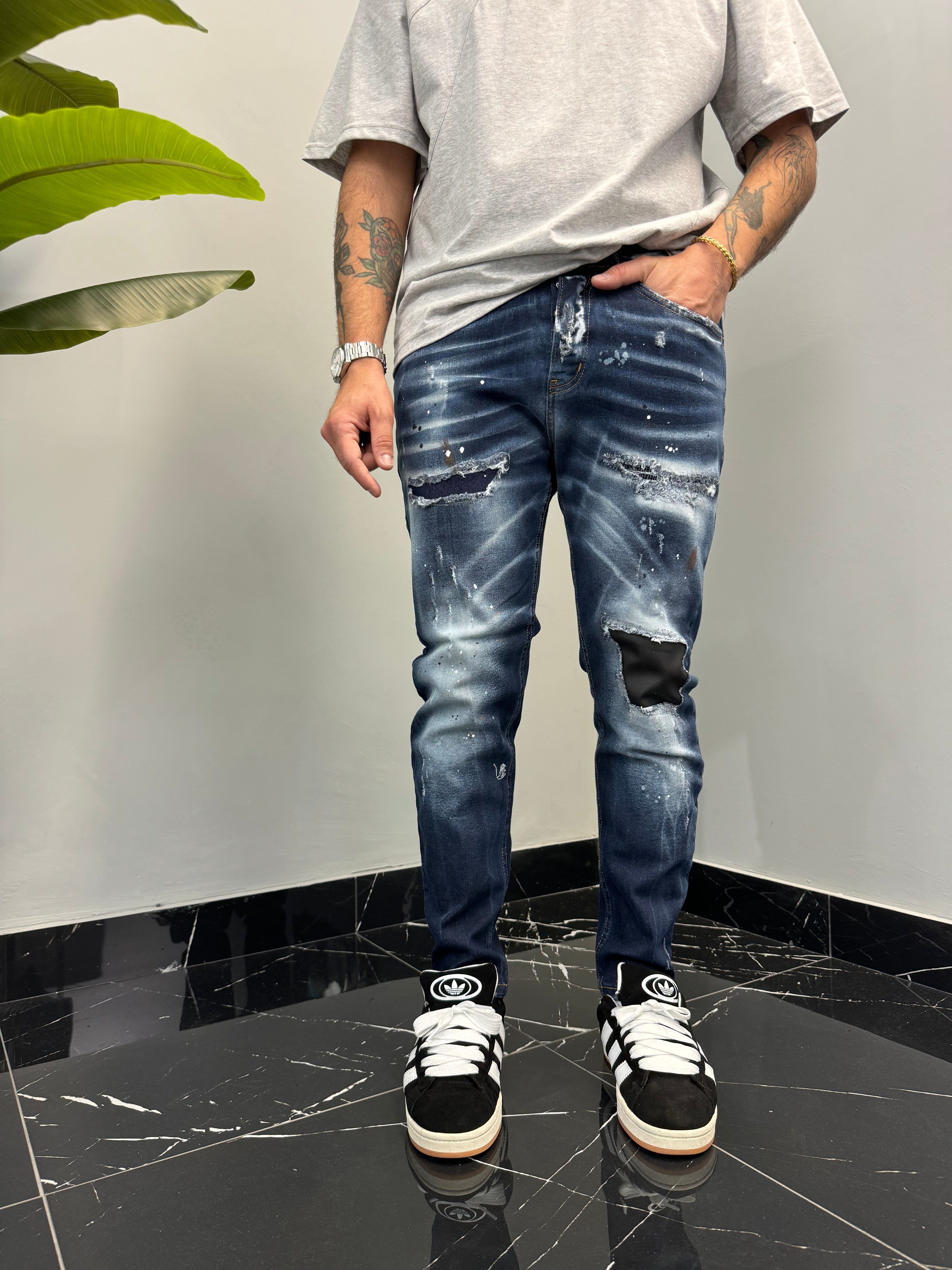Questo jeans in denim è un capo unico e alla moda che catturerà l'attenzione di chiunque lo veda. Con schizzi di vernice strategicamente posizionati, aggiunge un tocco di creatività al suo design. I punti luce nel lavaggio intermedio conferiscono un aspetto vintage contemporaneo, mentre le rotture varie donano un tocco di grinta e personalità. La vestibilità slim garantisce una silhouette elegante e moderna. Realizzato con una composizione del 98% in cotone e il 2% di elasten, offre il comfort e la flessibilità necessari per un look alla moda. Un must-have per chi cerca stile e originalità in un unico paio di jeans.