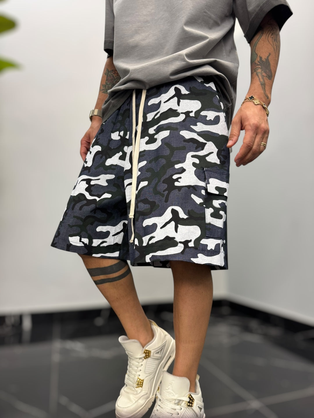 Scopri il tuo nuovo must-have estivo: gli shorts cargo in denim a fantasia camouflage! Questi shorts non sono solo pratici, ma anche estremamente alla moda, perfetti per chi ama un look avventuroso e contemporaneo.