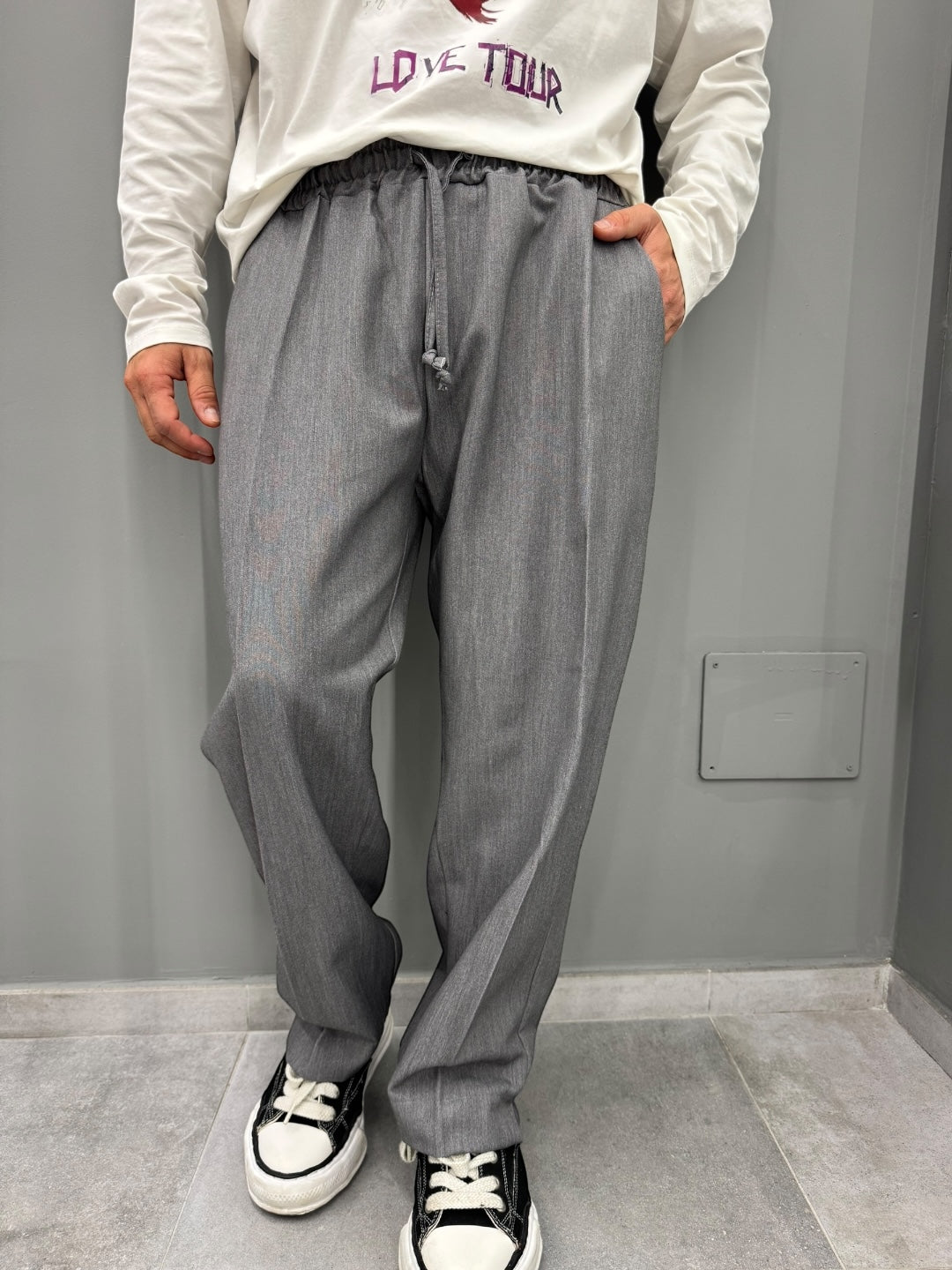 Realizzato in un tessuto morbido e fluido, questo modello presenta una linea dritta e rilassata, ideale per outfit casual, streetwear o smart-casual.