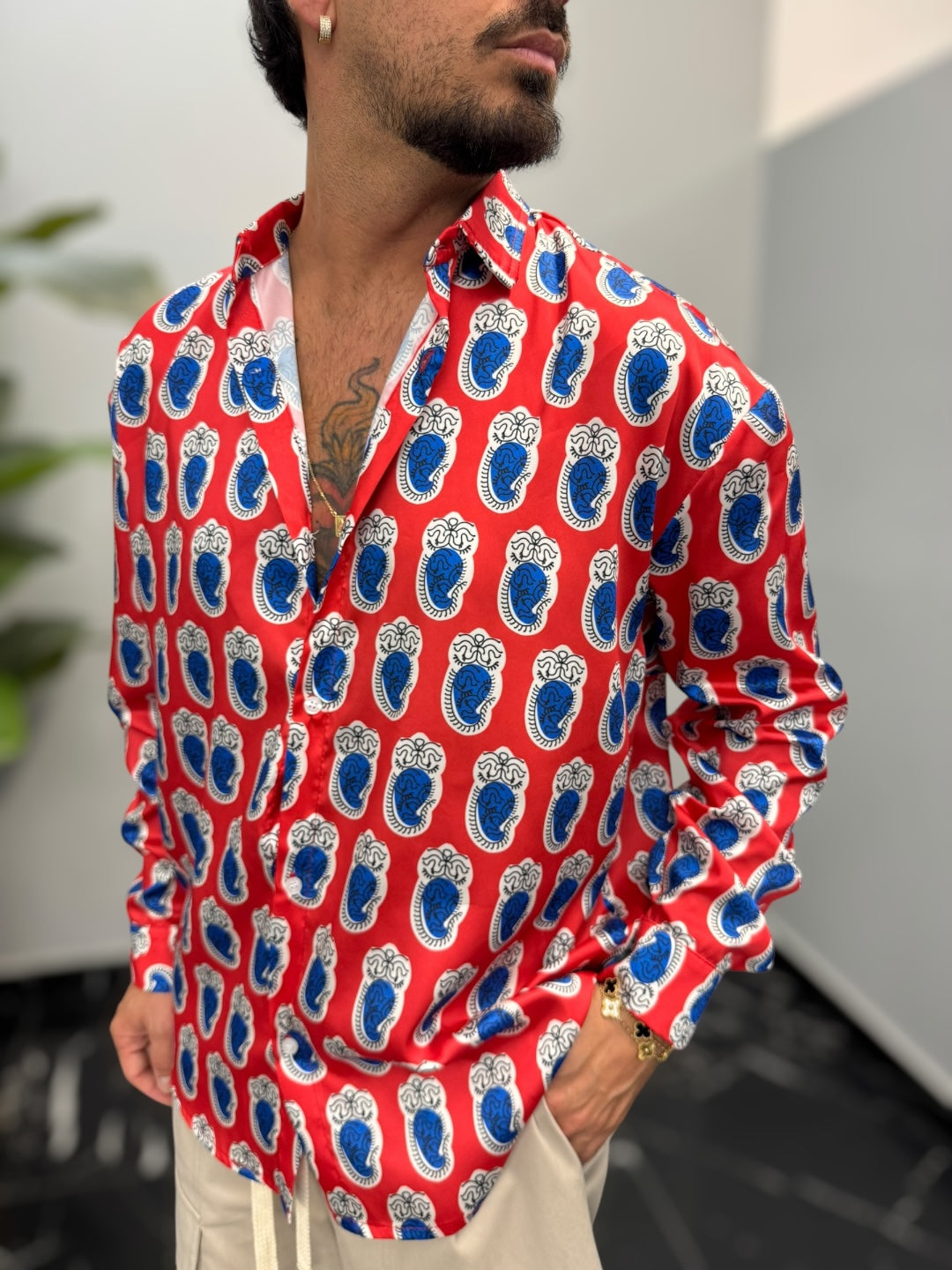 Non lasciarti sfuggire questa opportunità: porta eleganza e stile nelle tue serate estive con la nostra camicia a fantasia in raso! Sii il centro dell'attenzione e lascia un'impressione duratura in ogni occasione.