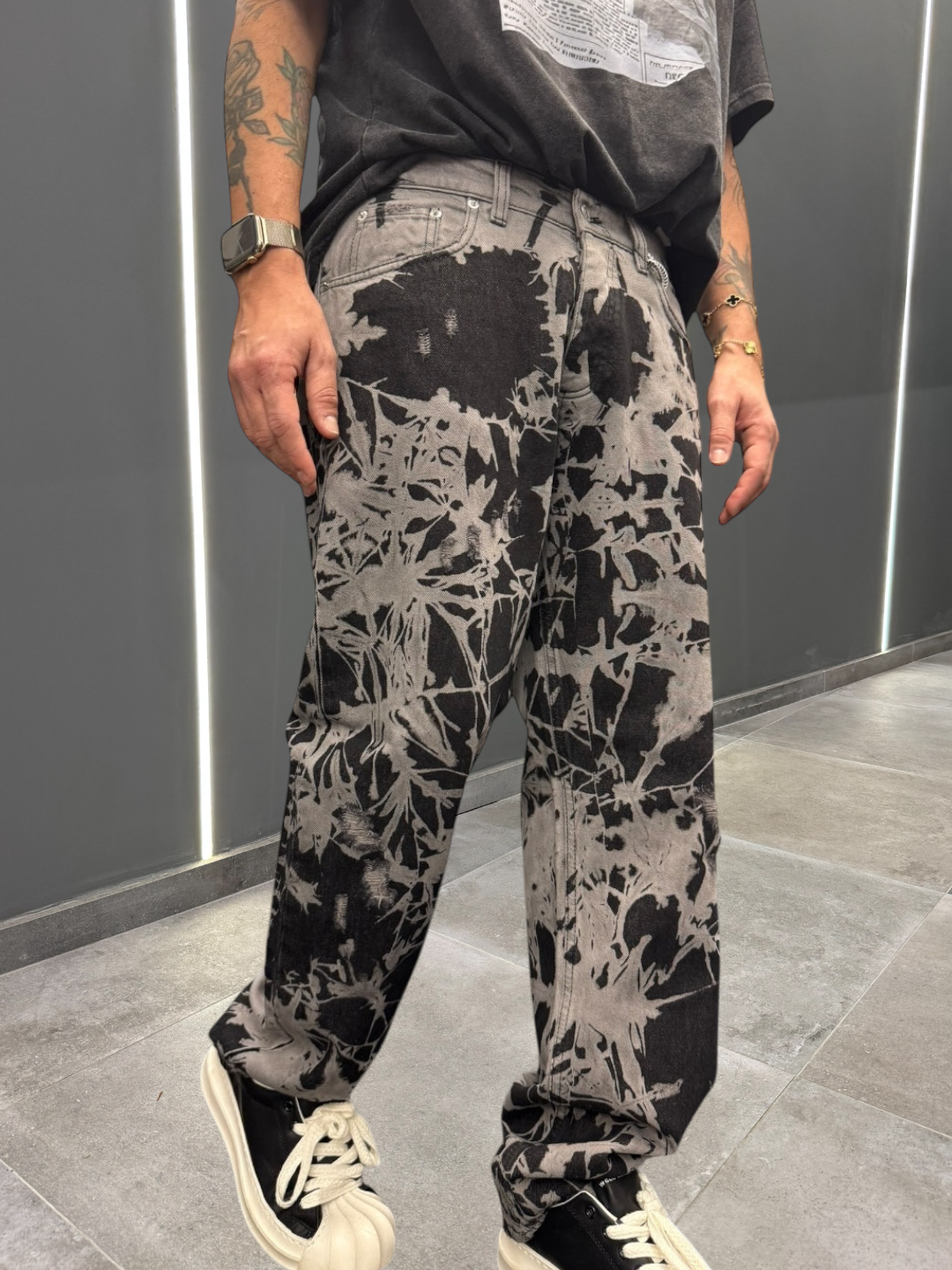 Vendibile a chi ama lo streetwear sofisticato, ma anche a chi cerca un capo che si possa indossare in diverse occasioni, dalla vita quotidiana a uscite più informali ma stilose. Il lavaggio nero caddeggiato rende il denim baggy un must-have per chi vuole distinguersi con un look grintoso e di carattere, senza sacrificare il comfort.