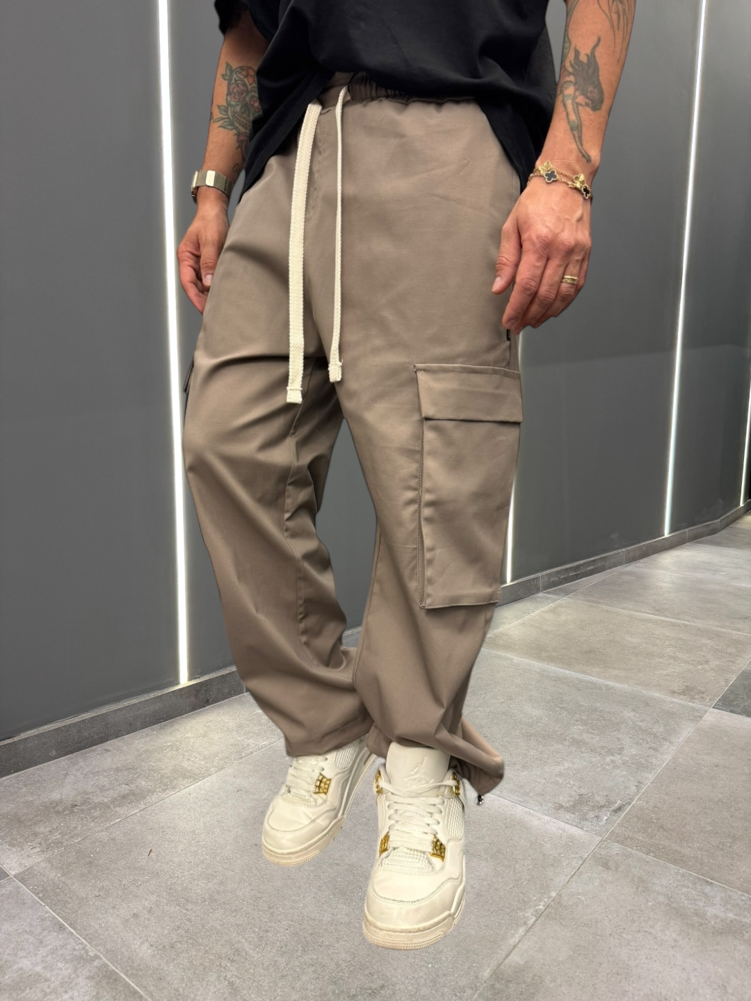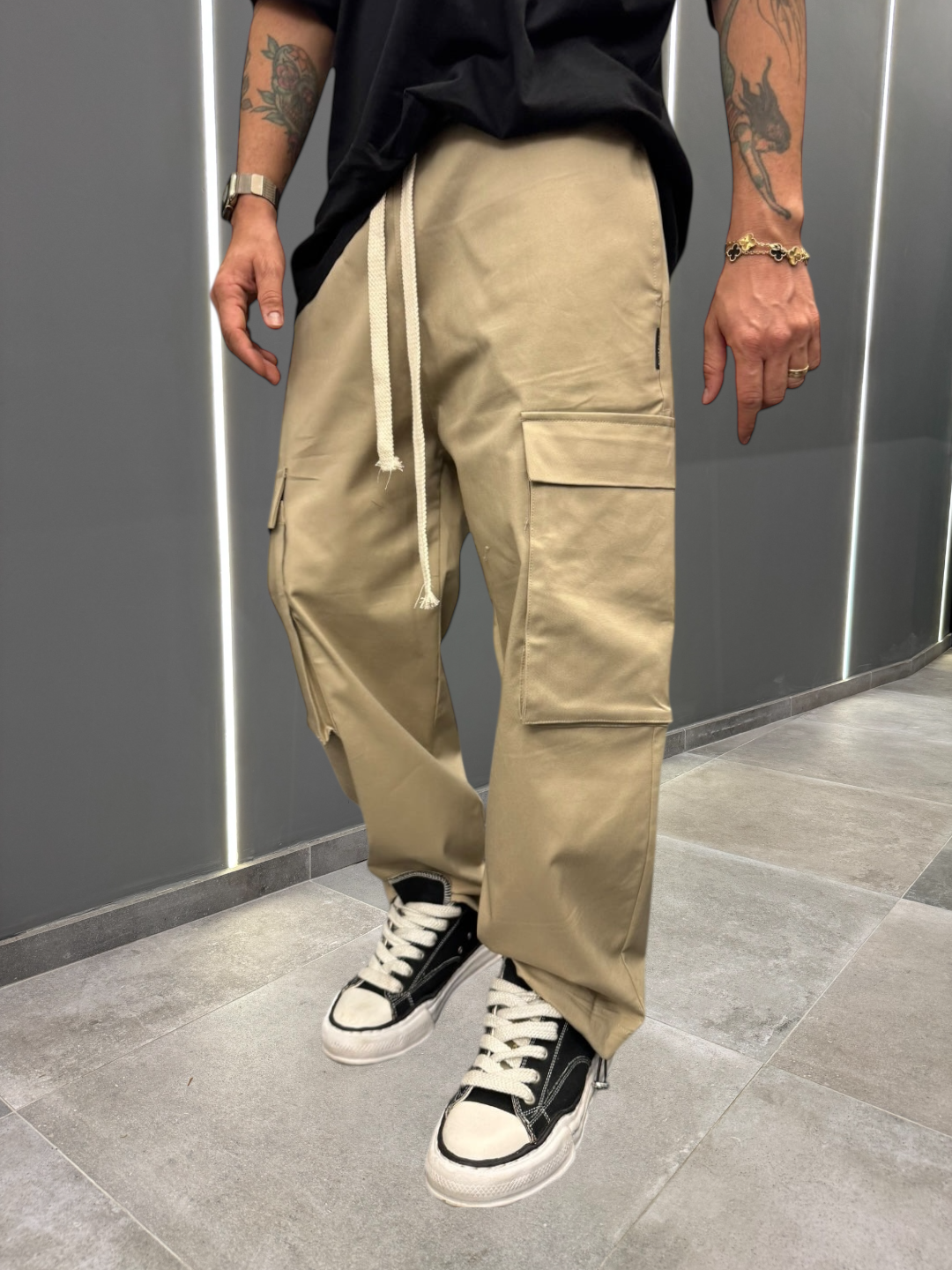 Questo pantalone cargo in cotone gabardina leggero, è un capo pratico e di tendenza, perfetto per chi cerca comodità e stile in un’unica soluzione. La vita elastica, regolabile con un doppio laccio, assicura una vestibilità comoda e versatile, adattandosi facilmente alla silhouette senza sacrificare il comfort.Dotato di due ampi tasconi laterali, offre praticità e spazio extra per piccoli oggetti, mantenendo un look casual e moderno. Il fondo largo contribuisce a una vestibilità rilassata, con la possibilità di stringerlo grazie a cordini regolabili, che permettono di adattare il capo a diversi stili e preferenze. Perfetto per un outfit urbano, si abbina facilmente a t-shirt e sneakers per un look casual e funzionale.