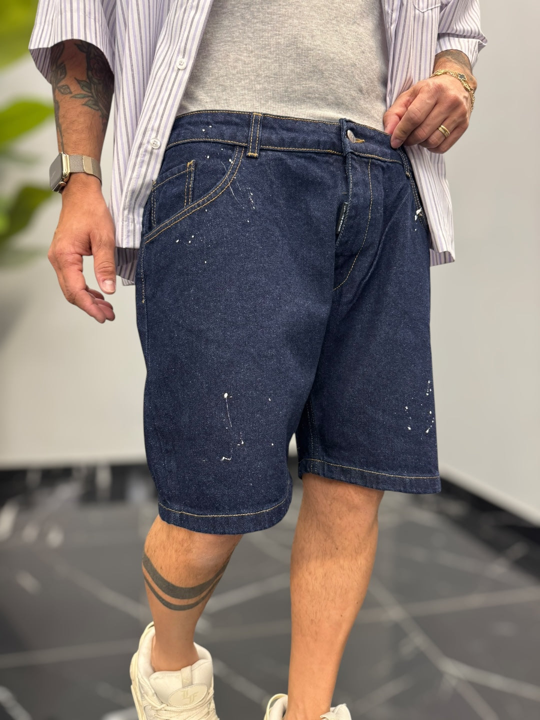 Denim lavaggio zero con schizzi di vernice