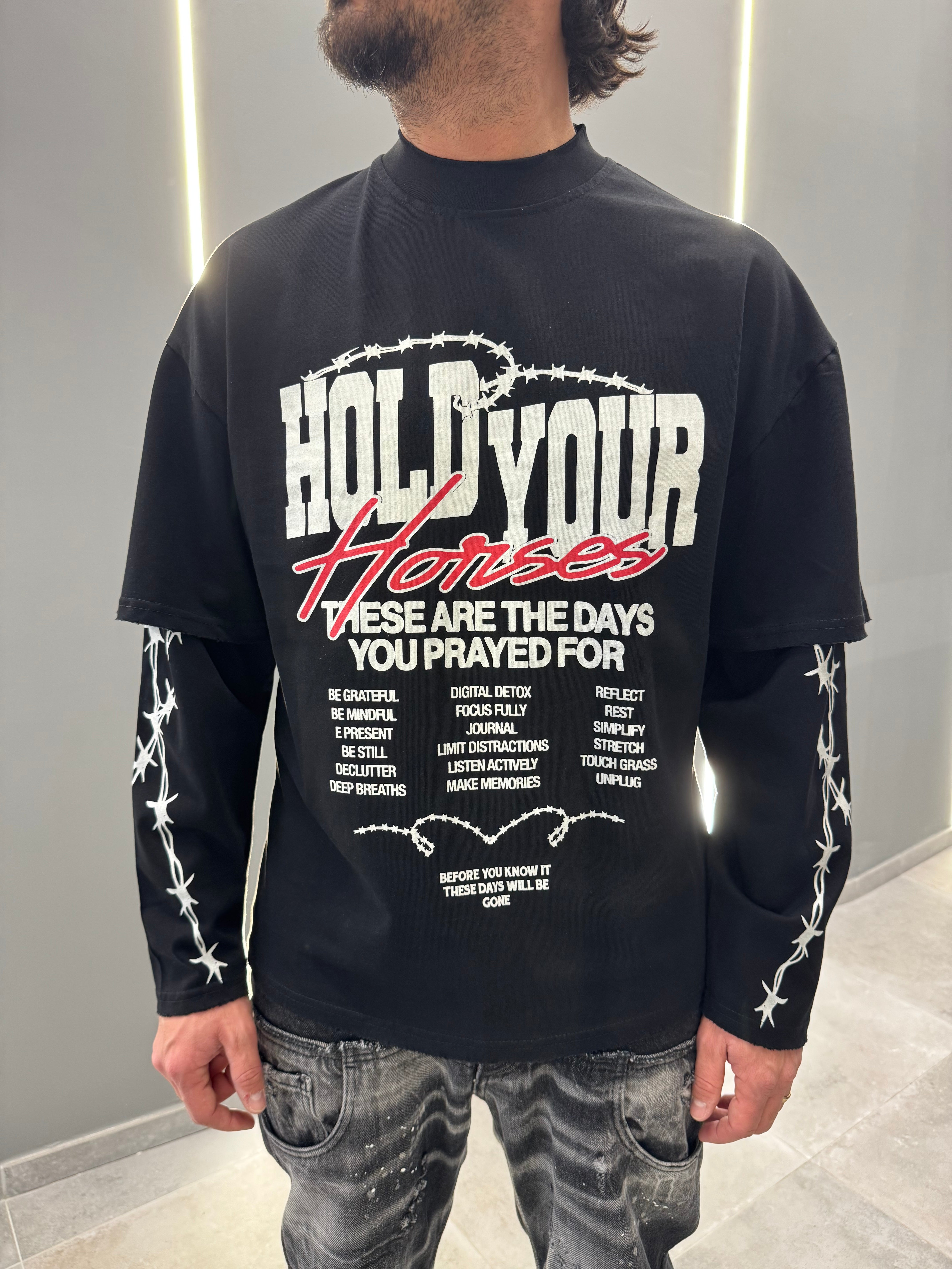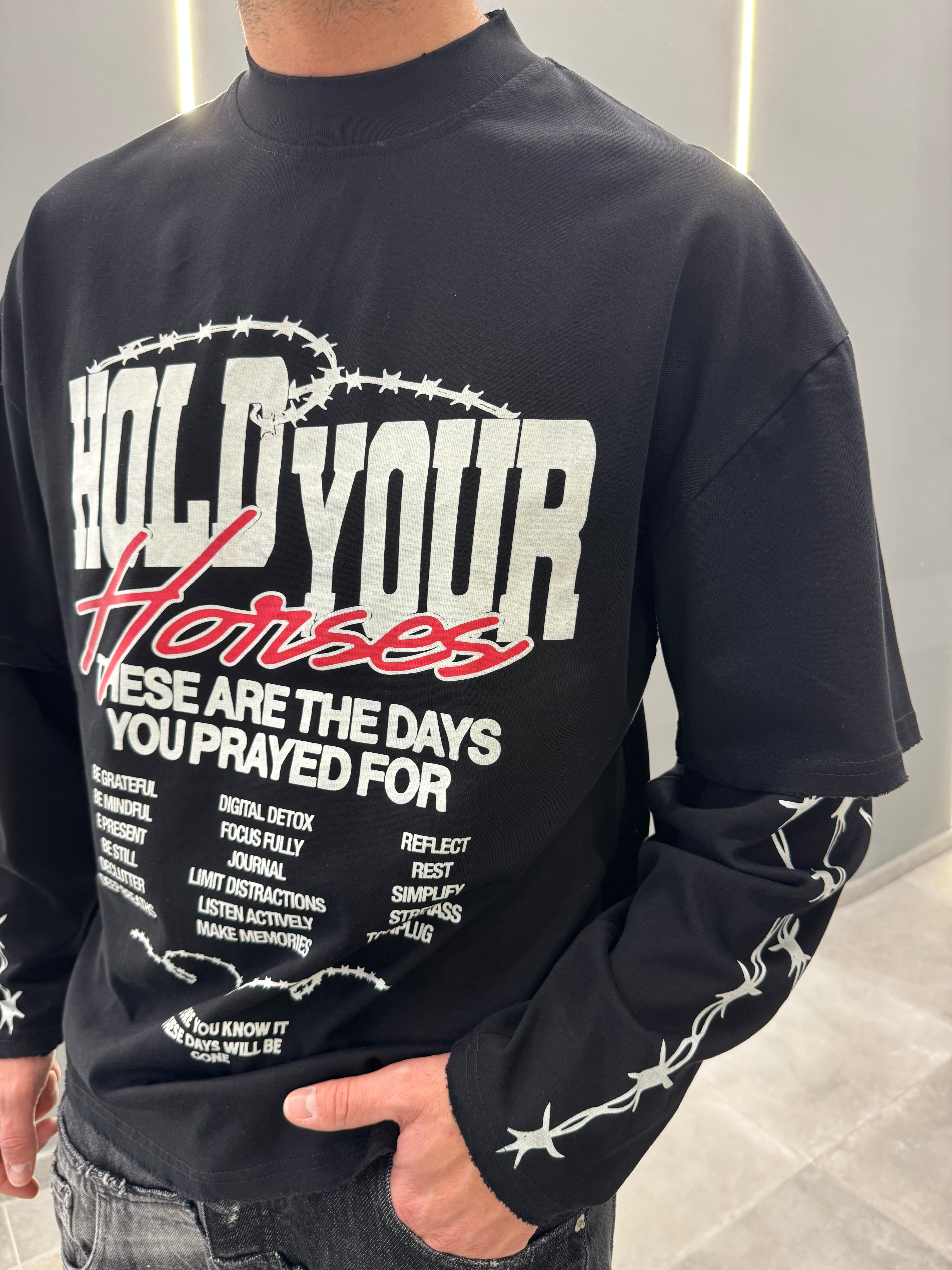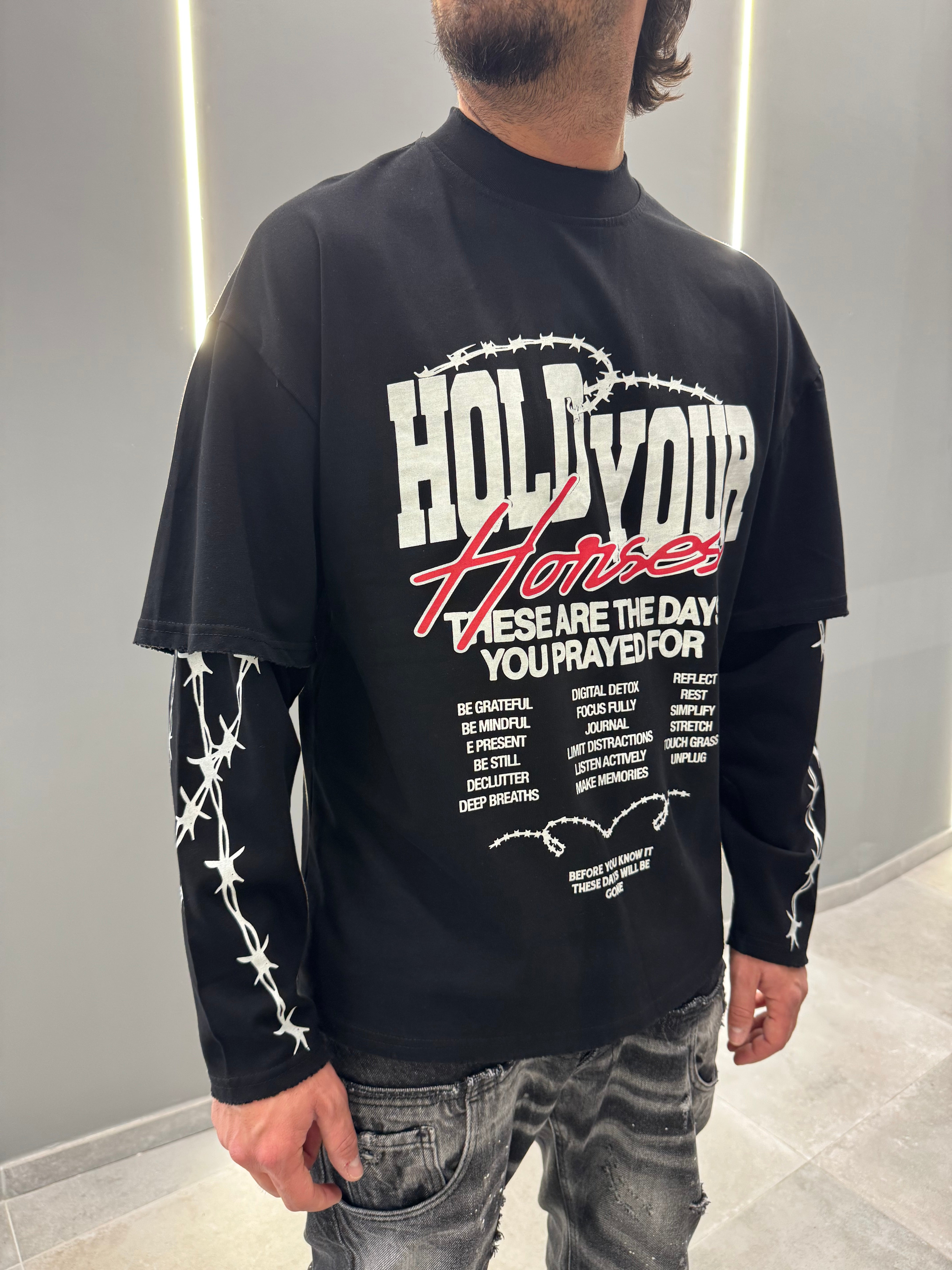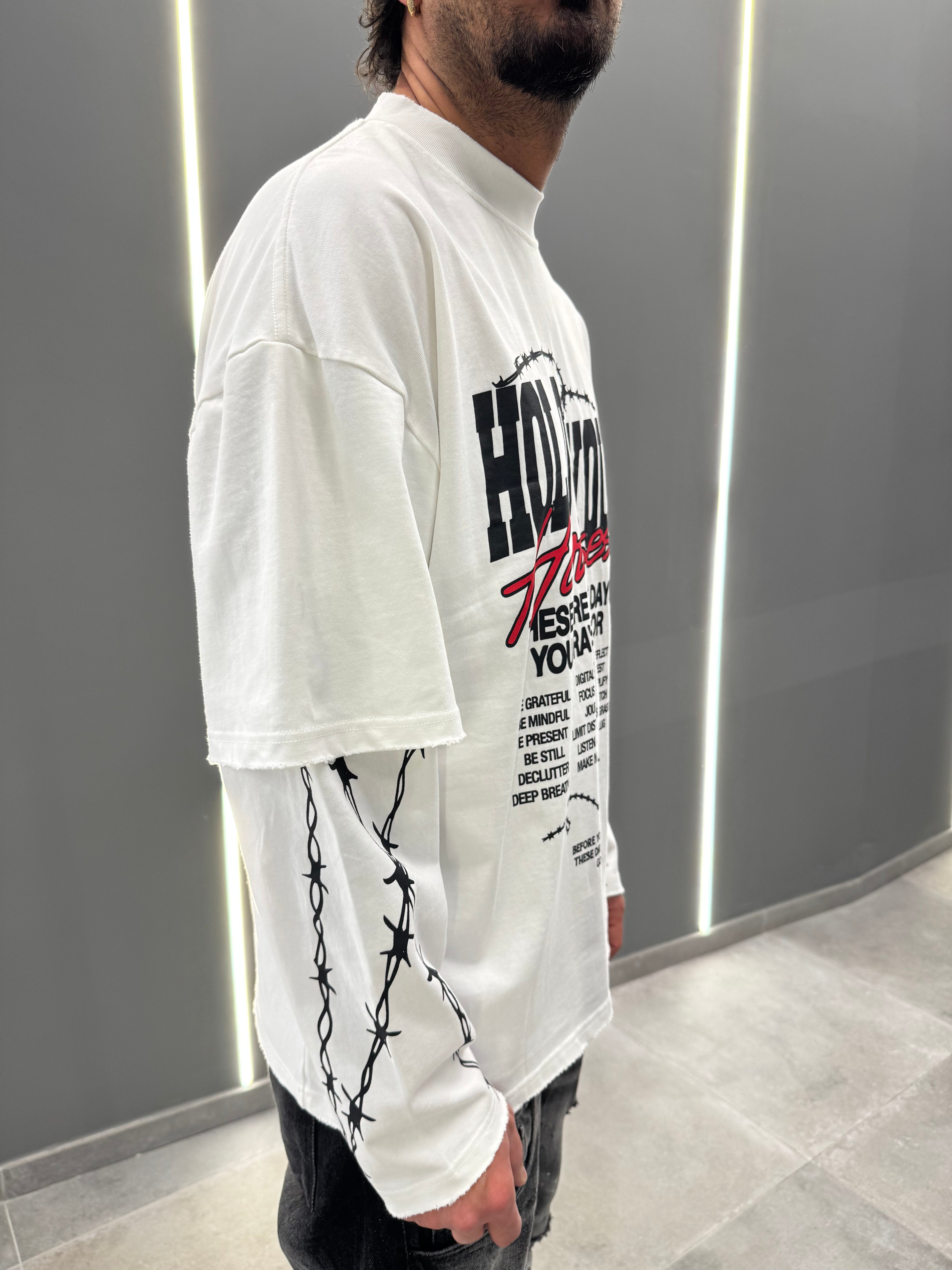 Fai emergere il tuo stile con questa maglia con doppia manica in cotone premium, un vero statement di moda.