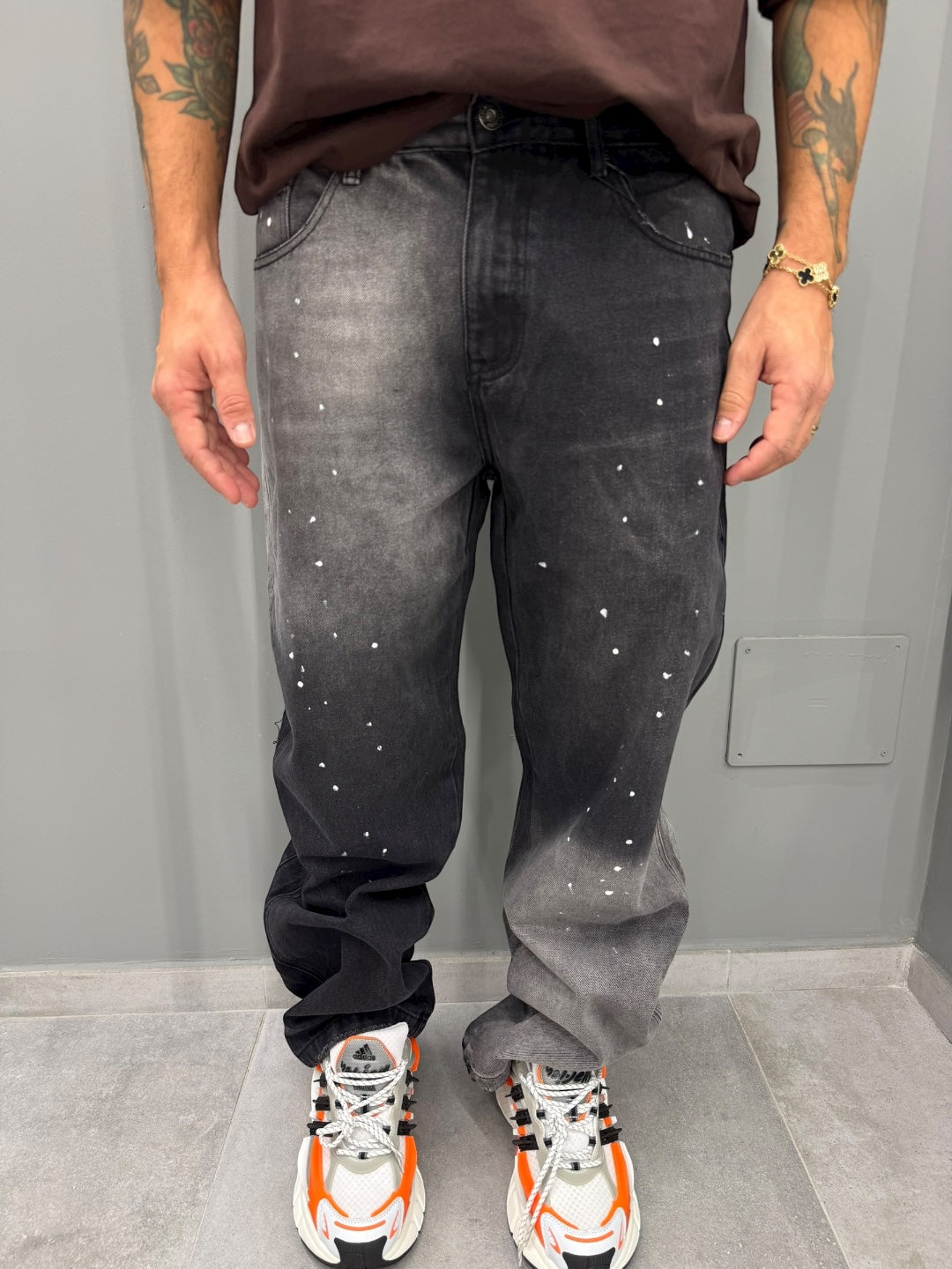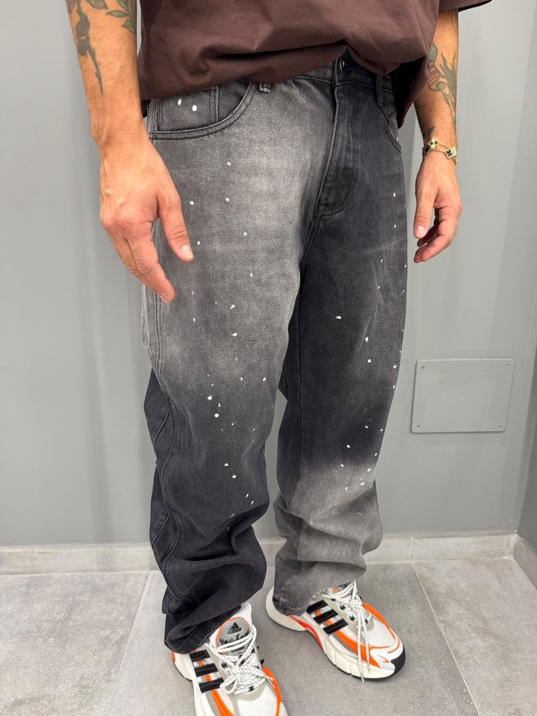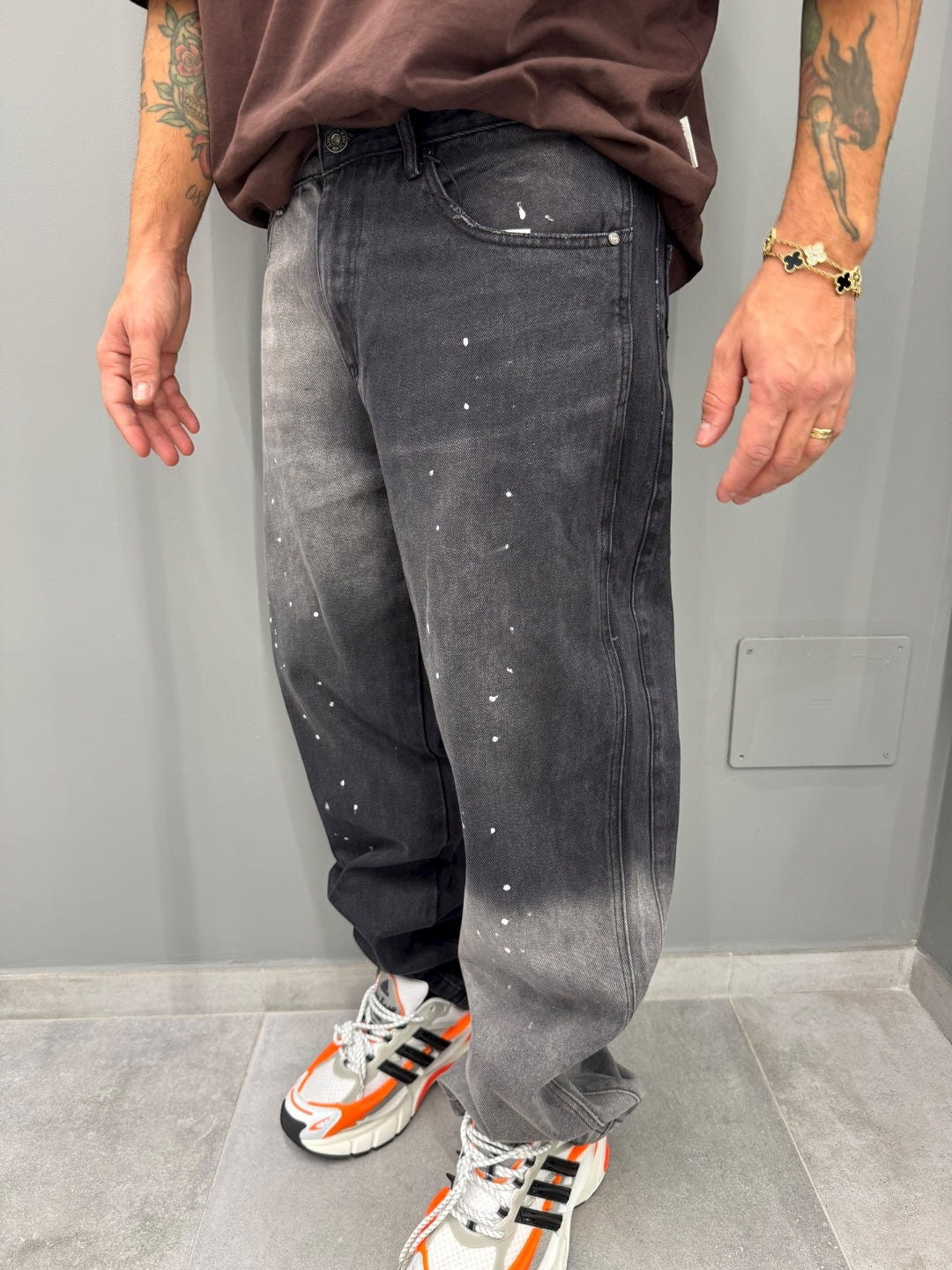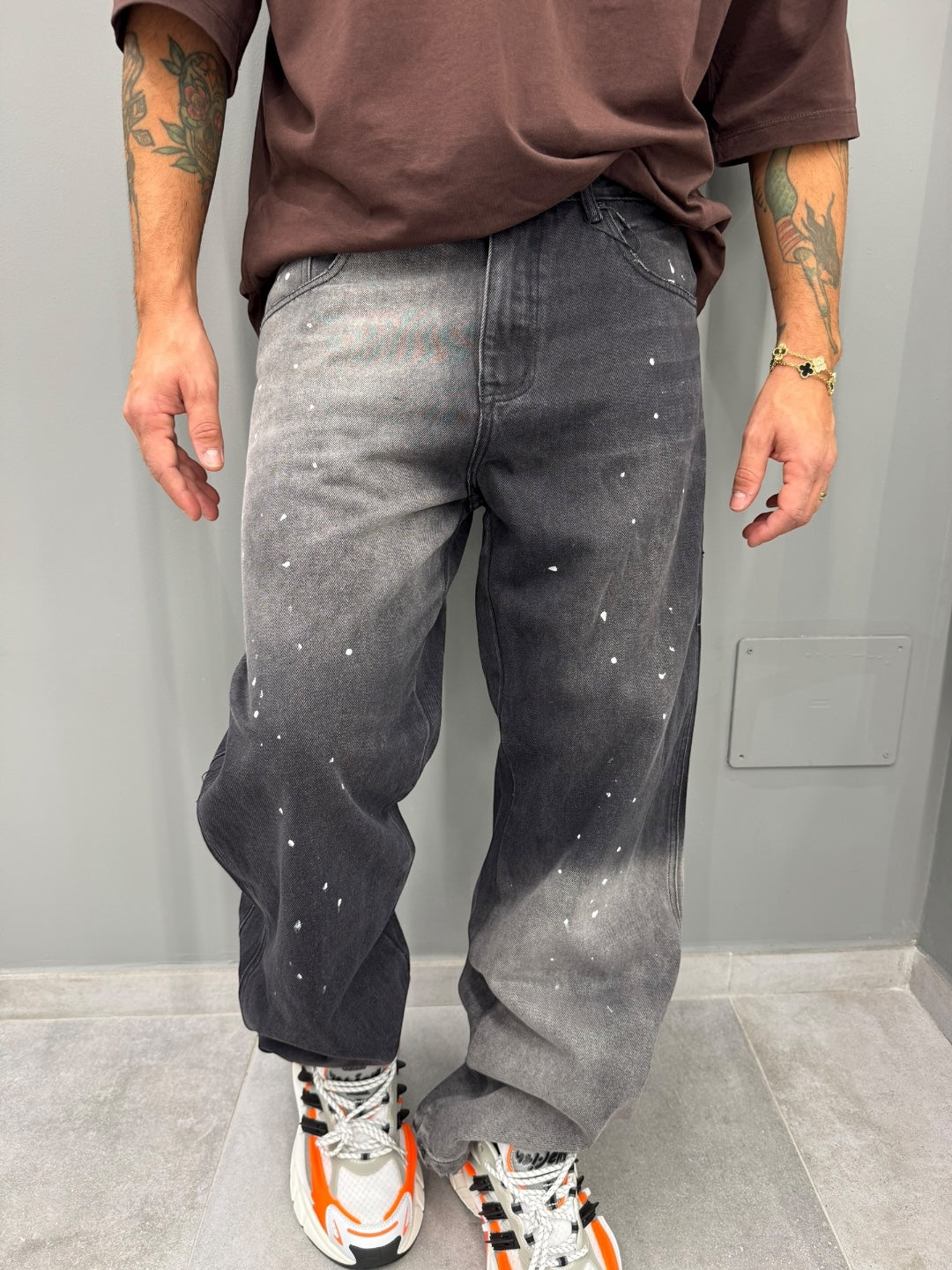 Scopri il denim baggy che ridefinisce il concetto di comfort con un'estetica audace e contemporanea. Questo jeans, caratterizzato da un taglio ampio e rilassato, vanta un effetto sbiadito e dettagli a spruzzo che aggiungono un tocco artistico ed esclusivo. Perfetto per chi ama esprimere la propria individualità con uno stile urbano e moderno. Ideale per creare look casual con felpe e sneakers, o per dare un tocco boho a camicie e giacche più eleganti. Lasciati conquistare da un capo che è sinonimo di libertà e personalità.