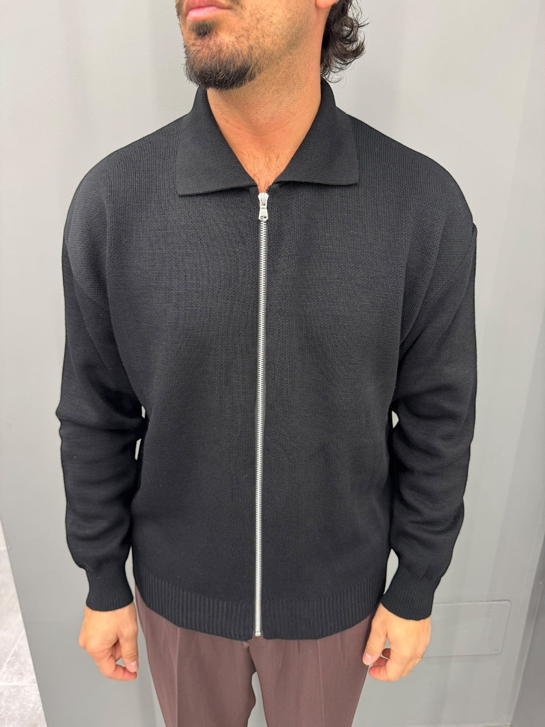Questa maglia con zip unisce la pulizia delle linee contemporanee al comfort dei filati morbidi e leggeri. Il design essenziale, valorizzato dal collo a polo e dalla zip metallica a tutta lunghezza, la rende un capo incredibilmente versatile: perfetta sopra una t-shirt per un look casual ricercato, oppure su una camicia per uno stile più raffinato.