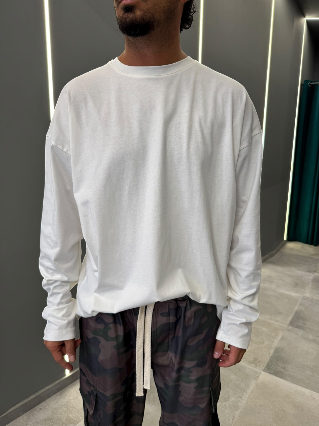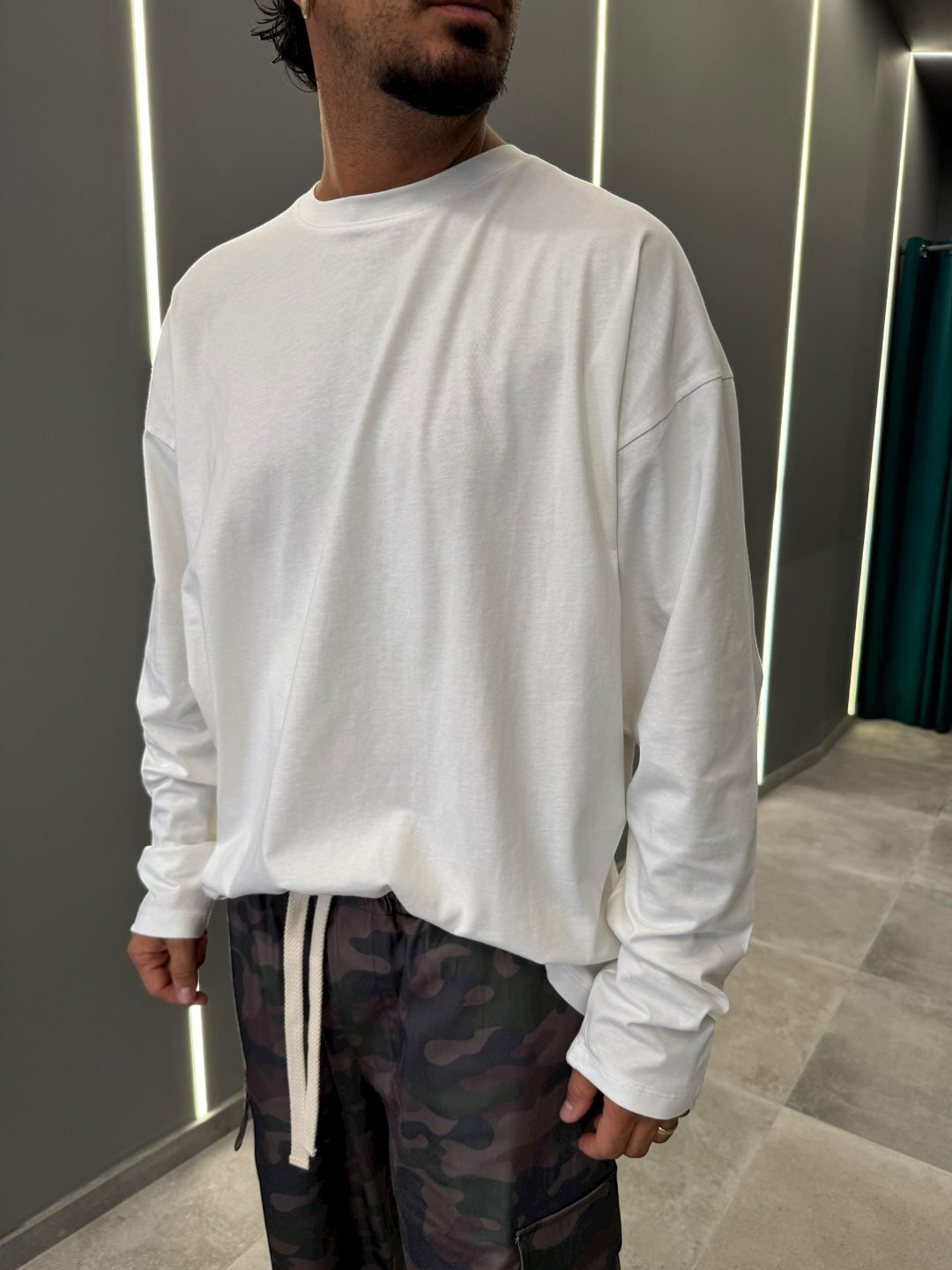 Scopri l'essenza dello stile senza tempo con questa t-shirt a manica lunga, disponibile in tre colori iconici: nero, panna e bianco.