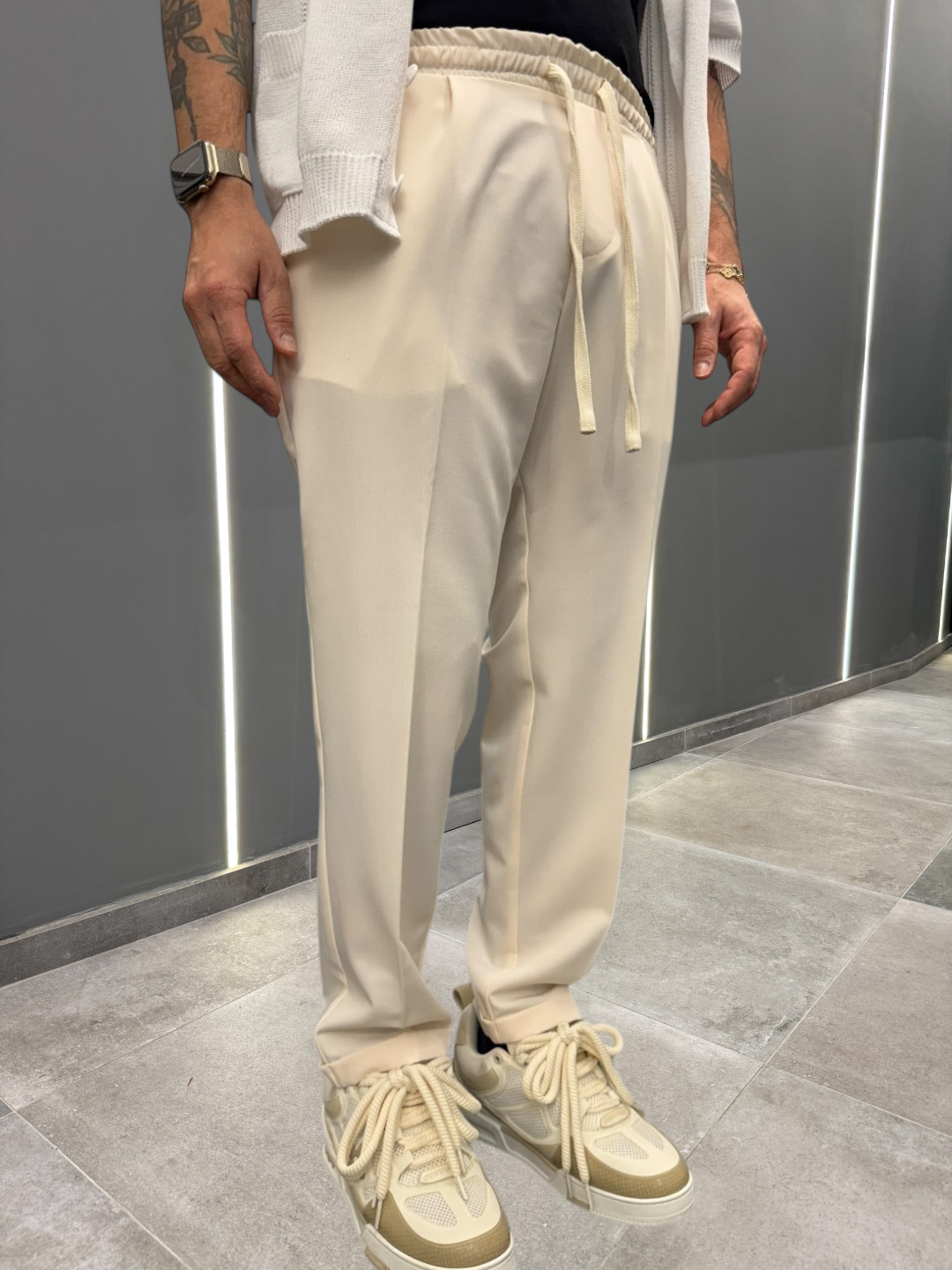 Elastico in vita Dettaglio distintivo che conferisce al pantalone una linea pulita e confortevole.