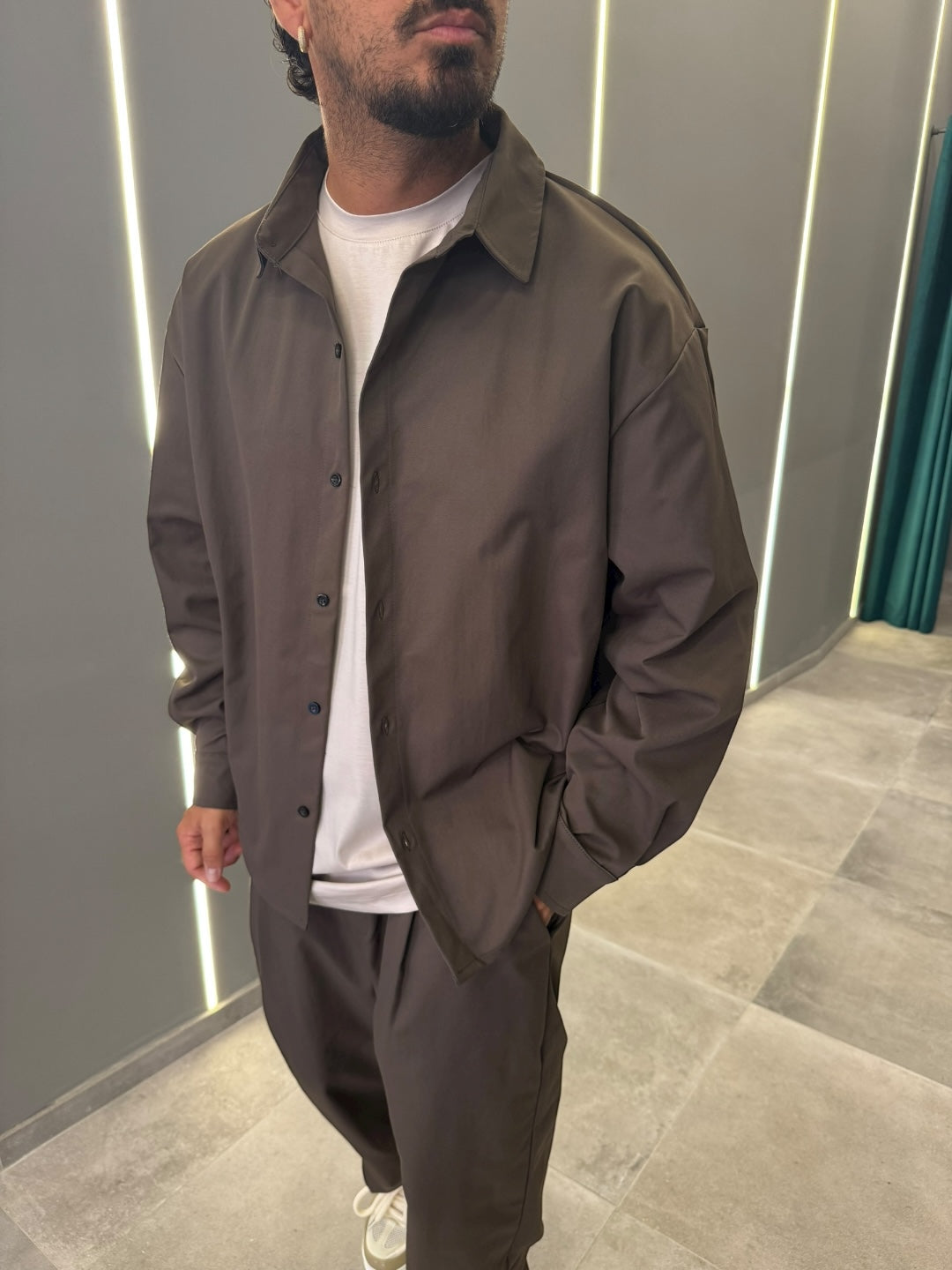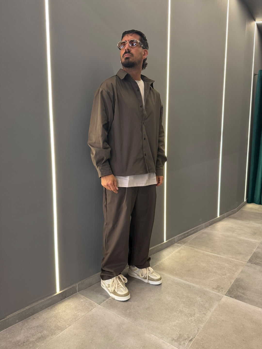 Scopri il coordinato perfetto per un guardaroba moderno e versatile: un mix impeccabile di stile, comfort e qualità. Questo completo, disponibile in tre eleganti varianti di colore — marrone, blu navy e nero — si distingue per il taglio contemporaneo , la vestibilità rilassata che valorizza ogni movimento e il tessuto siliconato