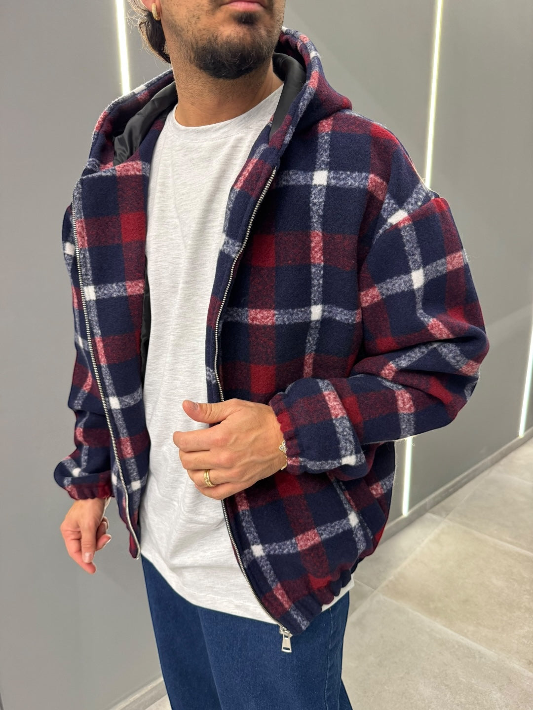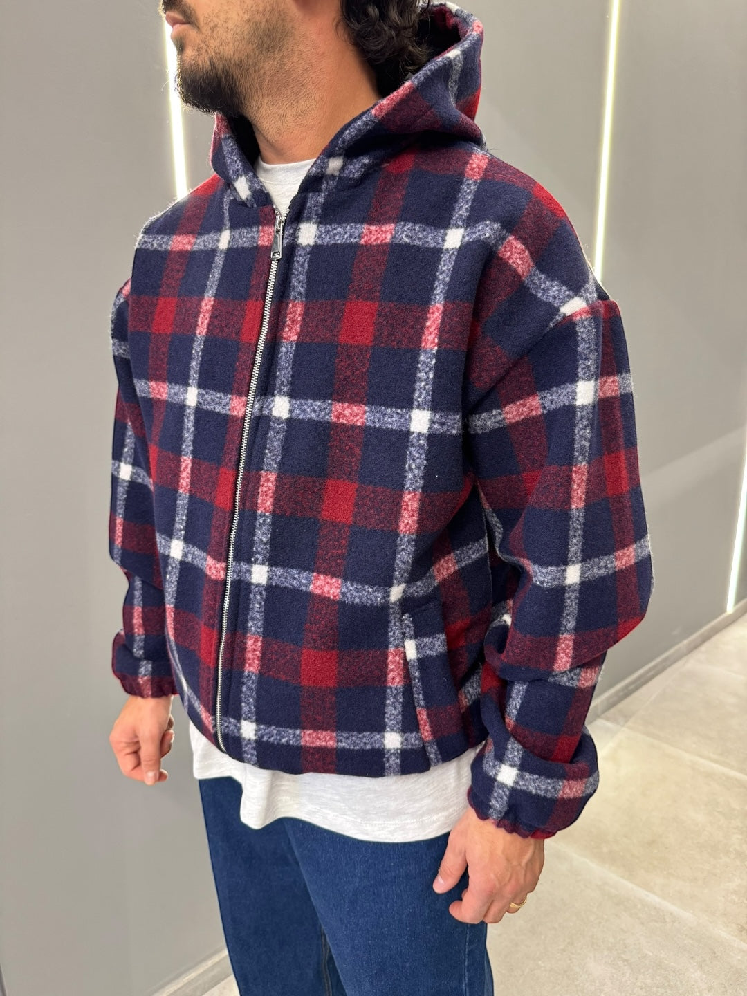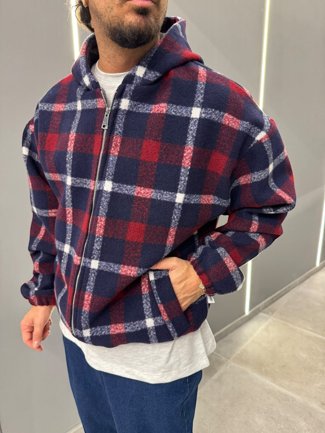 Il design a quadri rosso, blu navy e bianco richiama le classiche giacche da workwear americano, ma con un tocco moderno e urban. La vestibilità oversize e rilassata regala un look casual e contemporaneo, perfetto sia per la città che per il tempo libero.