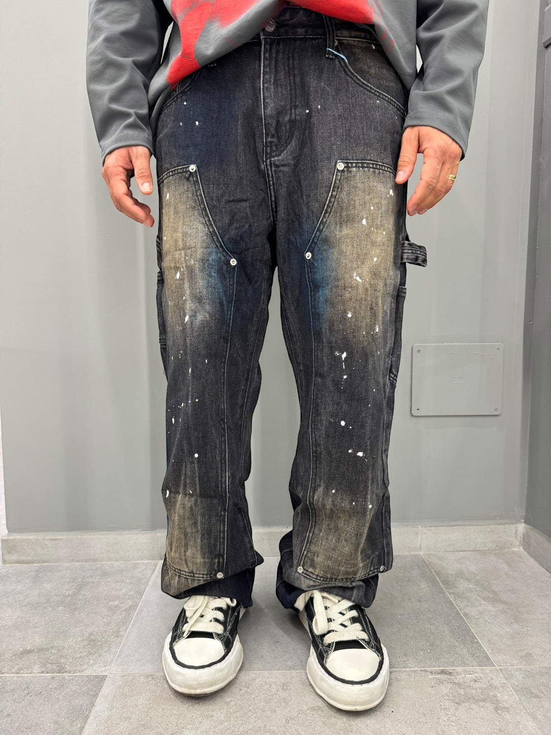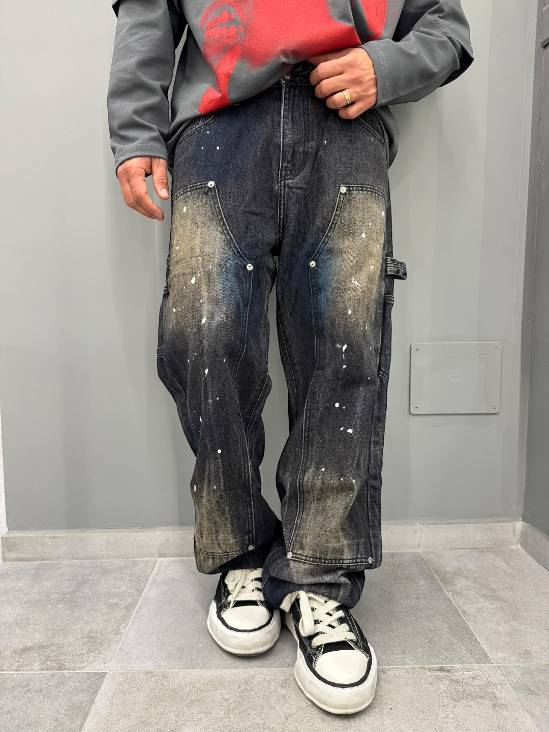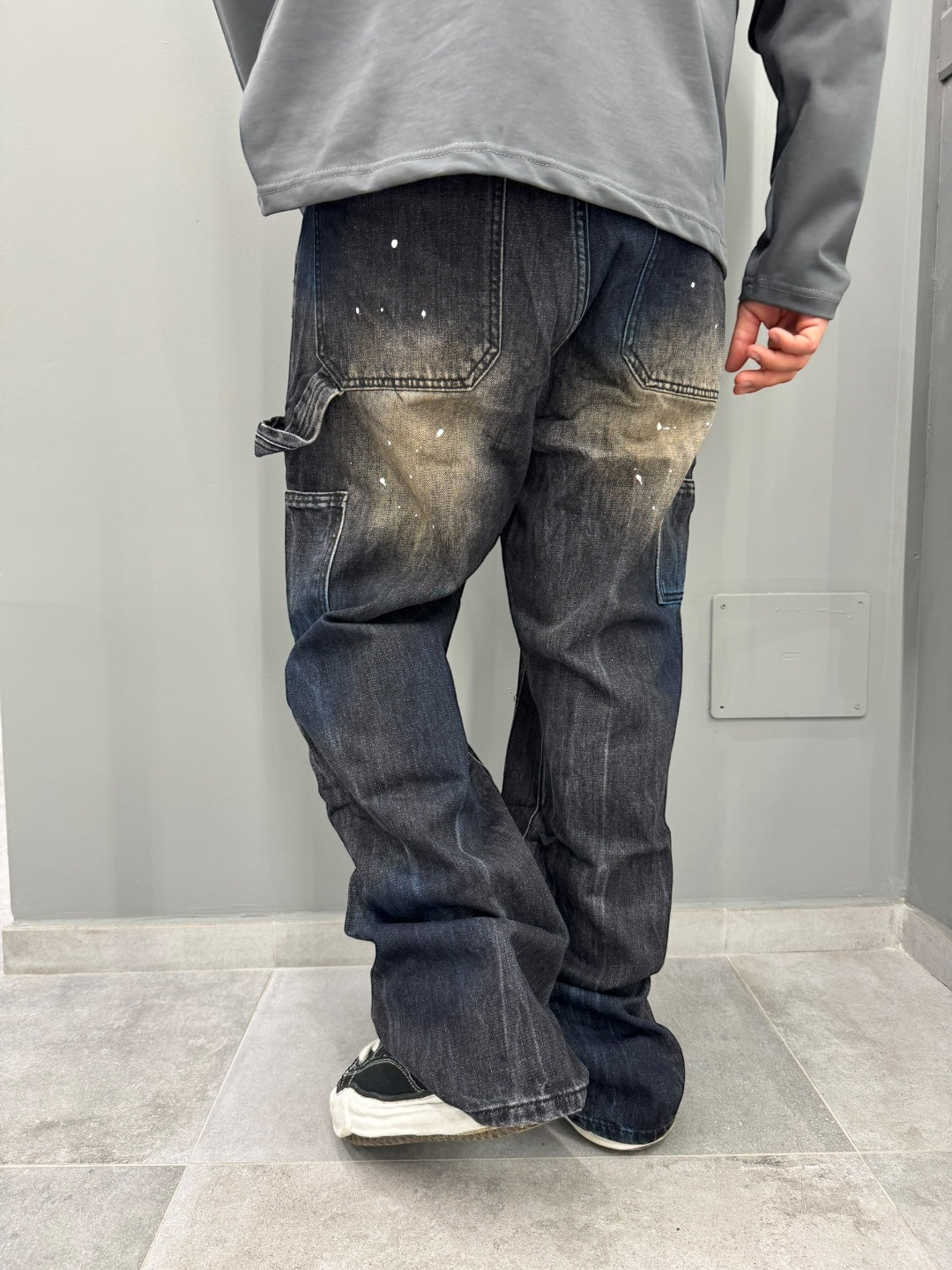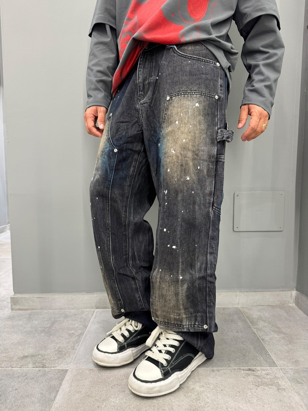 Scopri il denim baggy perfetto per chi ama uno stile urbano e disinvolto. Questo jeans è caratterizzato da un taglio ampio e comodo, ideale per chi cerca libertà di movimento senza rinunciare al look. Il lavaggio scuro con dettagli sbiaditi e schizzi di vernice conferisce un aspetto vissuto e autentico, perfetto per chi ama distinguersi con personalità.