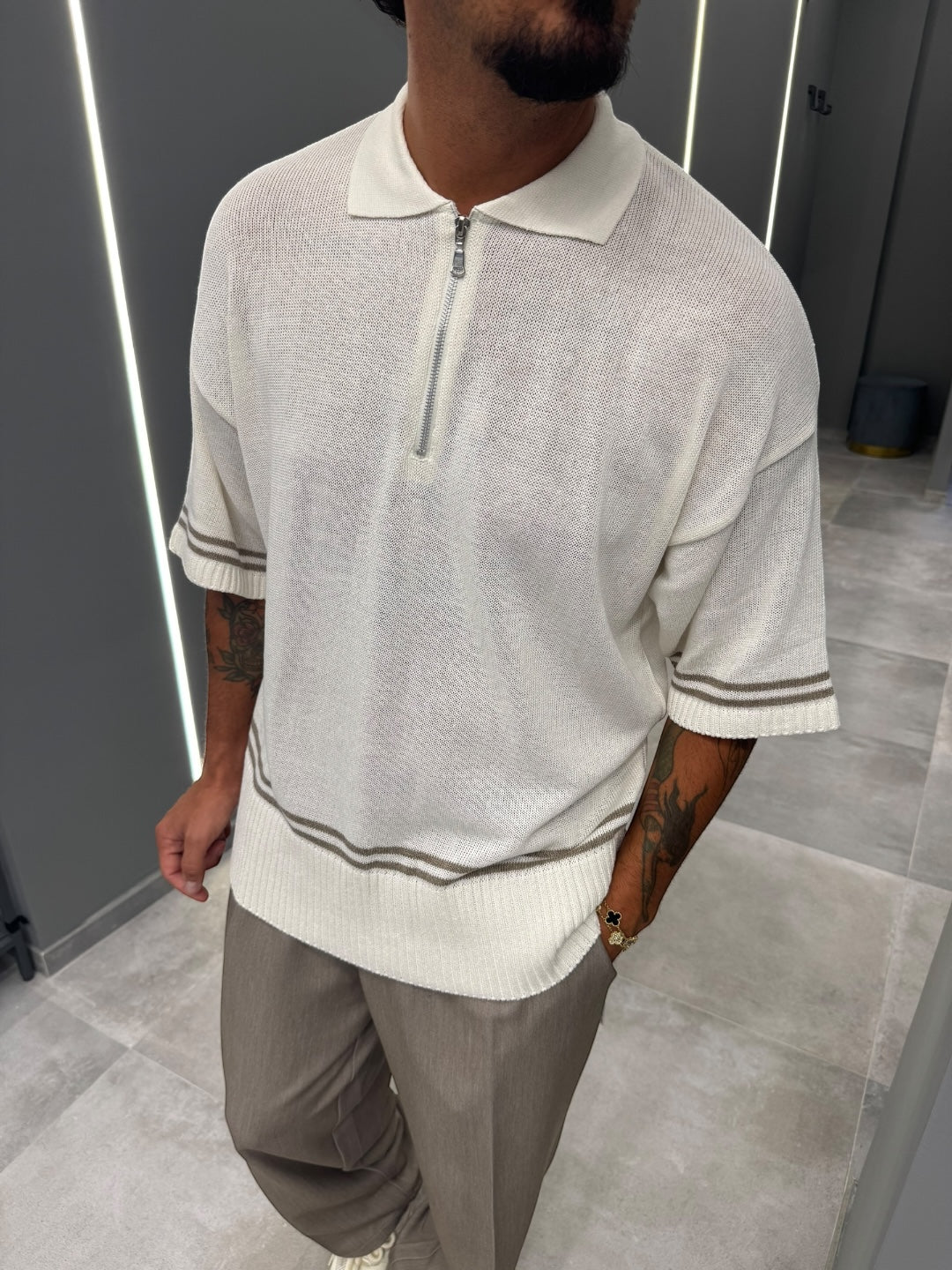 Scopri la nostra elegante polo a maniche corte, perfetta per chi cerca uno stile raffinato senza rinunciare al comfort. Realizzata in morbido tessuto traspirante, questa polo si distingue per il design minimalista e moderno: un collo a polo con zip sul davanti, che aggiunge un tocco di originalità e facilita la regolazione della vestibilità.