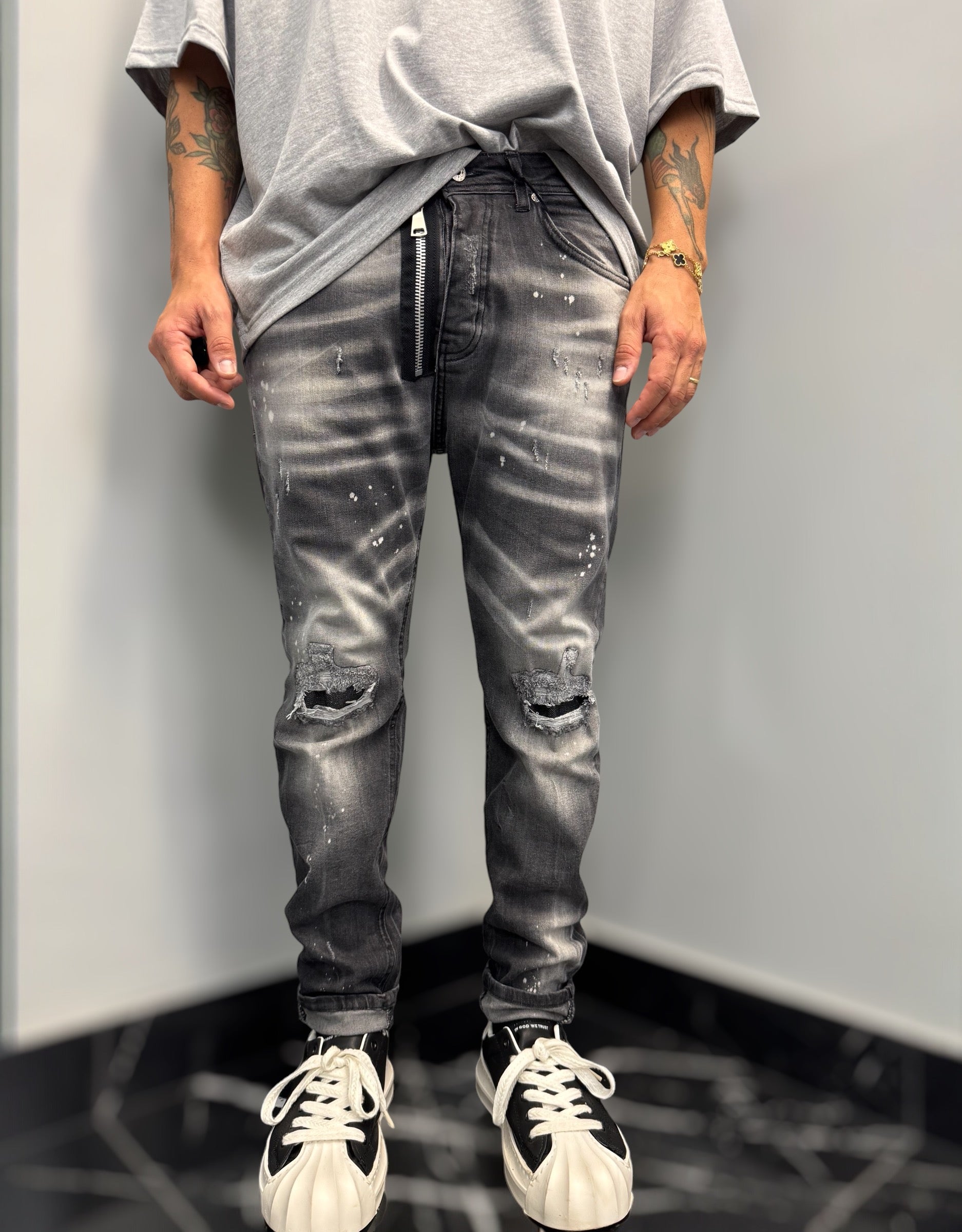 Questo jeans in denim è un capo unico e alla moda che catturerà l'attenzione di chiunque lo veda. Con schizzi di vernice strategicamente posizionati, aggiunge un tocco di creatività al suo design. I punti luce nel lavaggio scuro conferiscono un aspetto vintage contemporaneo, mentre le rotture varie donano un tocco di grinta e personalità. La vestibilità slim garantisce una silhouette elegante e moderna. Realizzato con una composizione del 98% in cotone e il 2% di elasten, offre il comfort e la flessibilità necessari per un look alla moda. Un must-have per chi cerca stile e originalità in un unico paio di jeans.