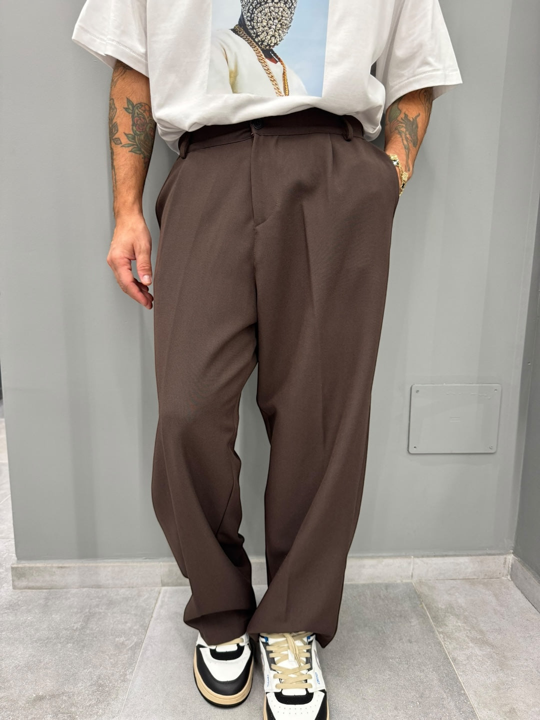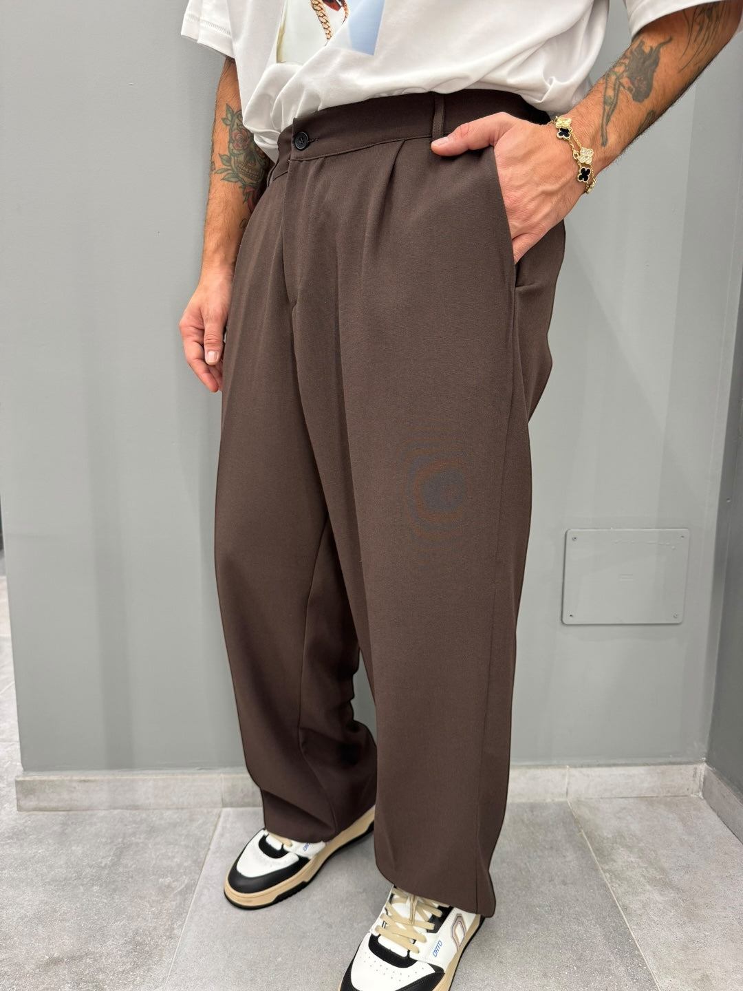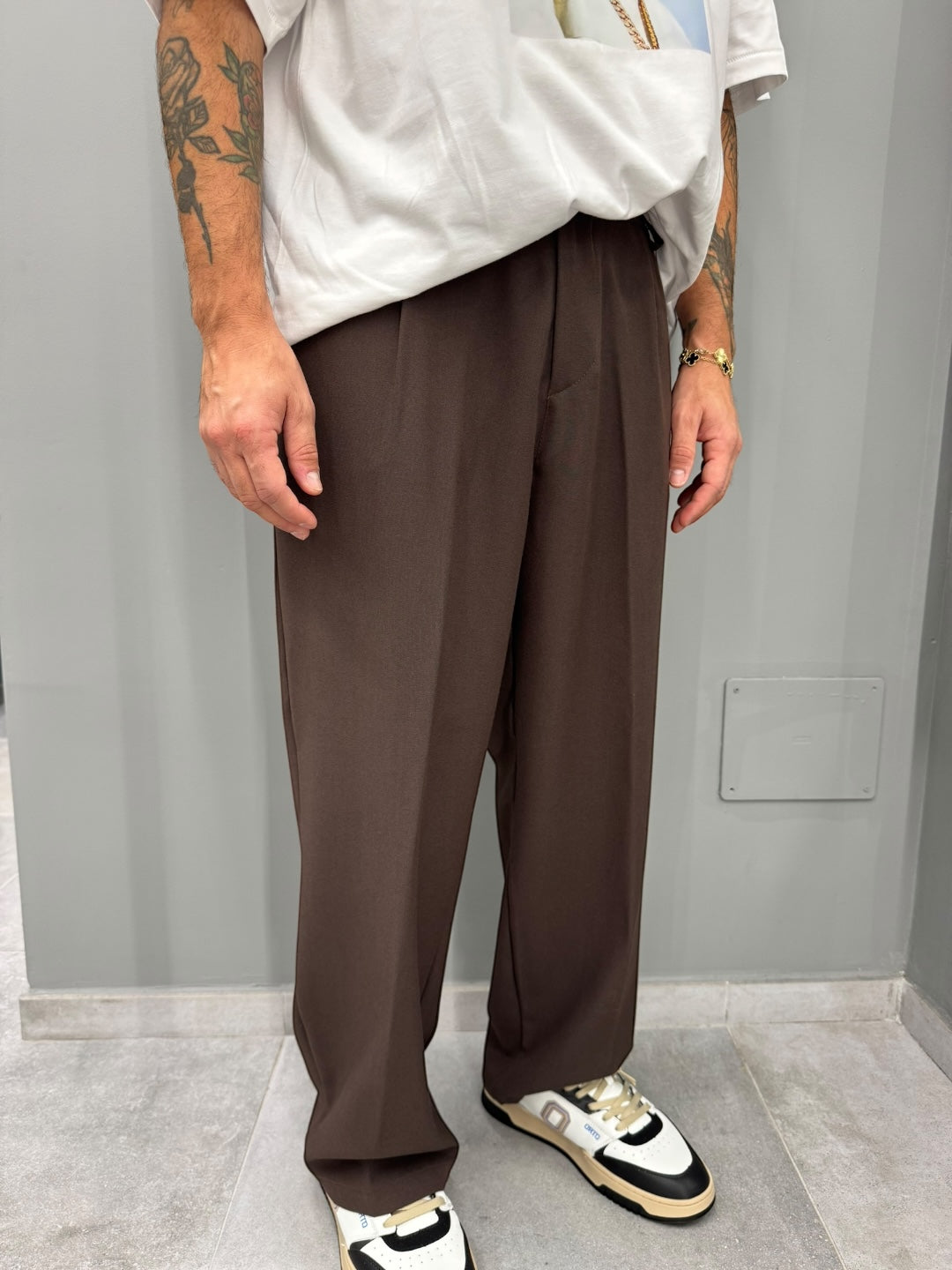 È il pantalone che unisce comodità assoluta e stile moderno, perfetto per chi vuole apparire curato senza rinunciare a una vestibilità rilassata. Un must-have per chi apprezza i tagli ampi e le linee minimal che valorizzano ogni outfit.