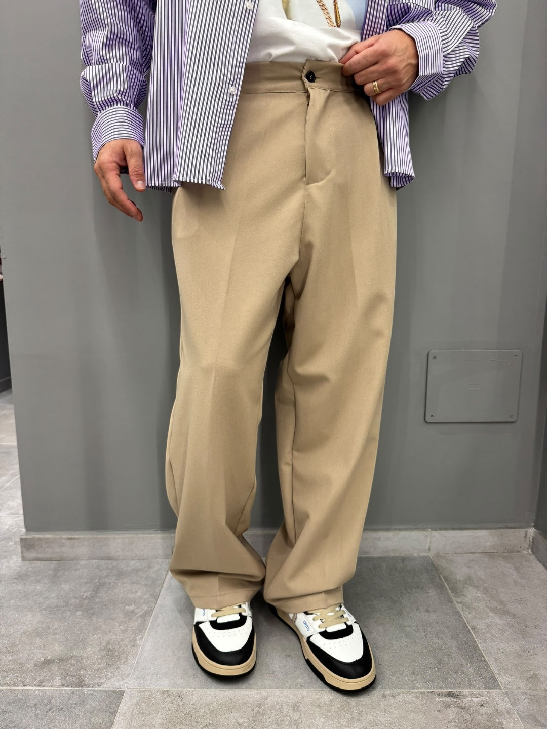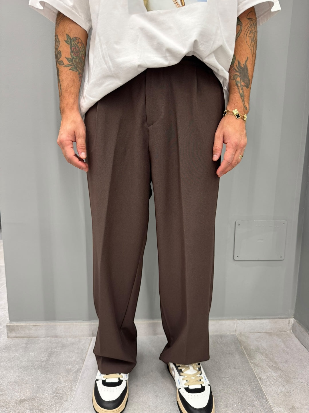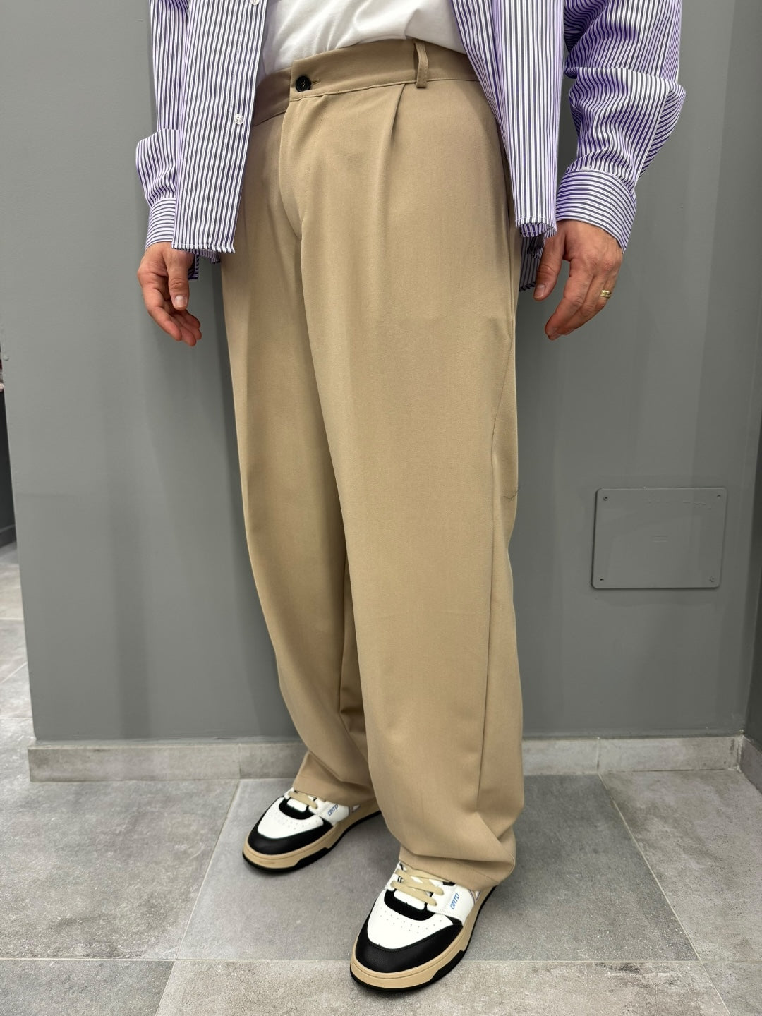 È il pantalone che unisce comodità assoluta e stile moderno, perfetto per chi vuole apparire curato senza rinunciare a una vestibilità rilassata. Un must-have per chi apprezza i tagli ampi e le linee minimal che valorizzano ogni outfit.