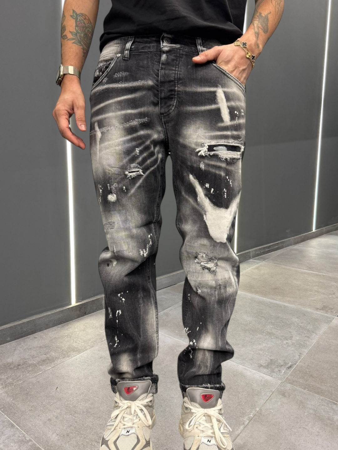 Il modello è alto 1,78 e pesa 76kg , indossa una Taglia 48