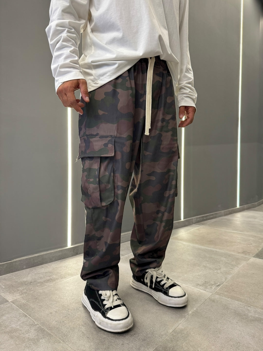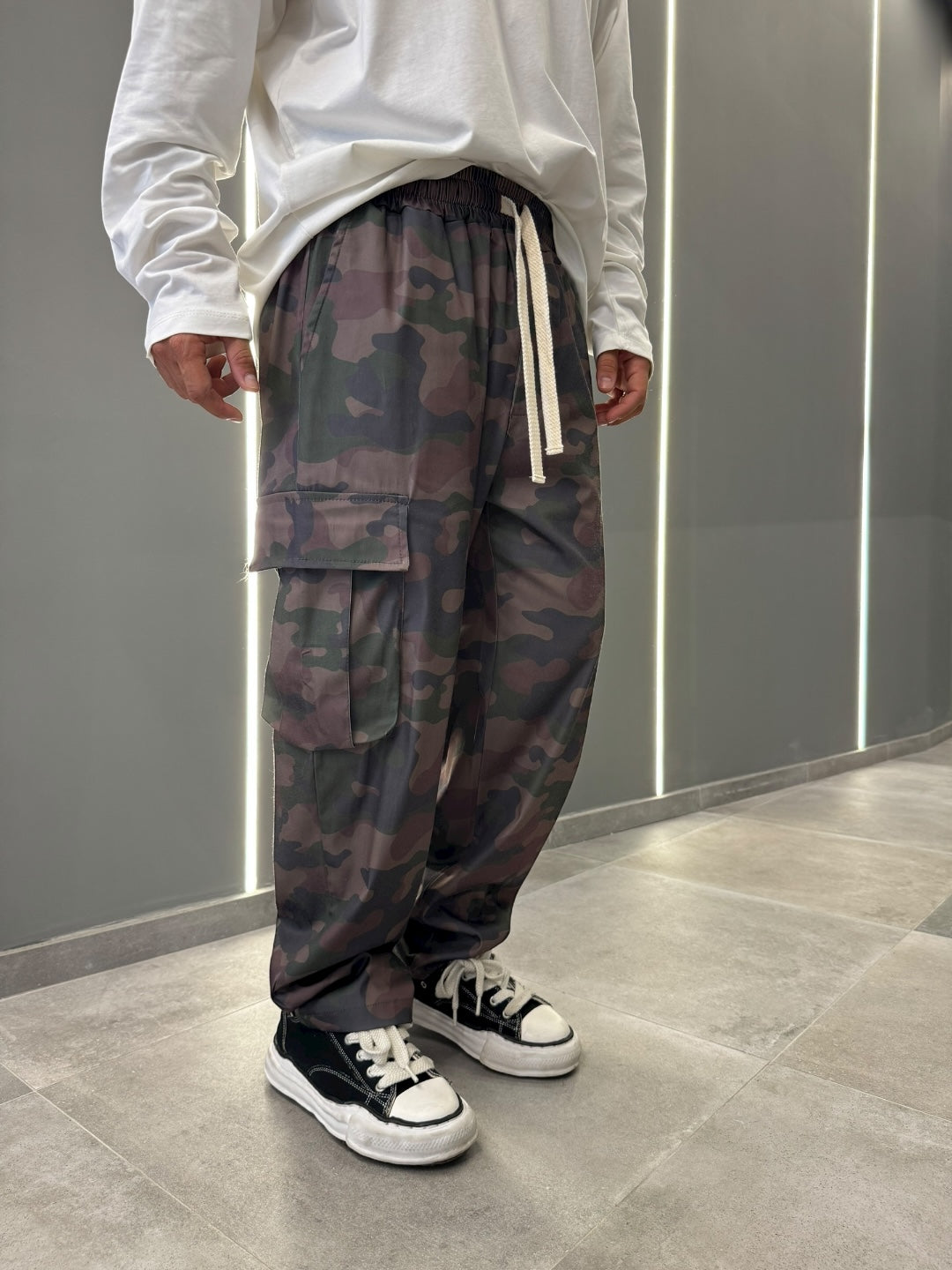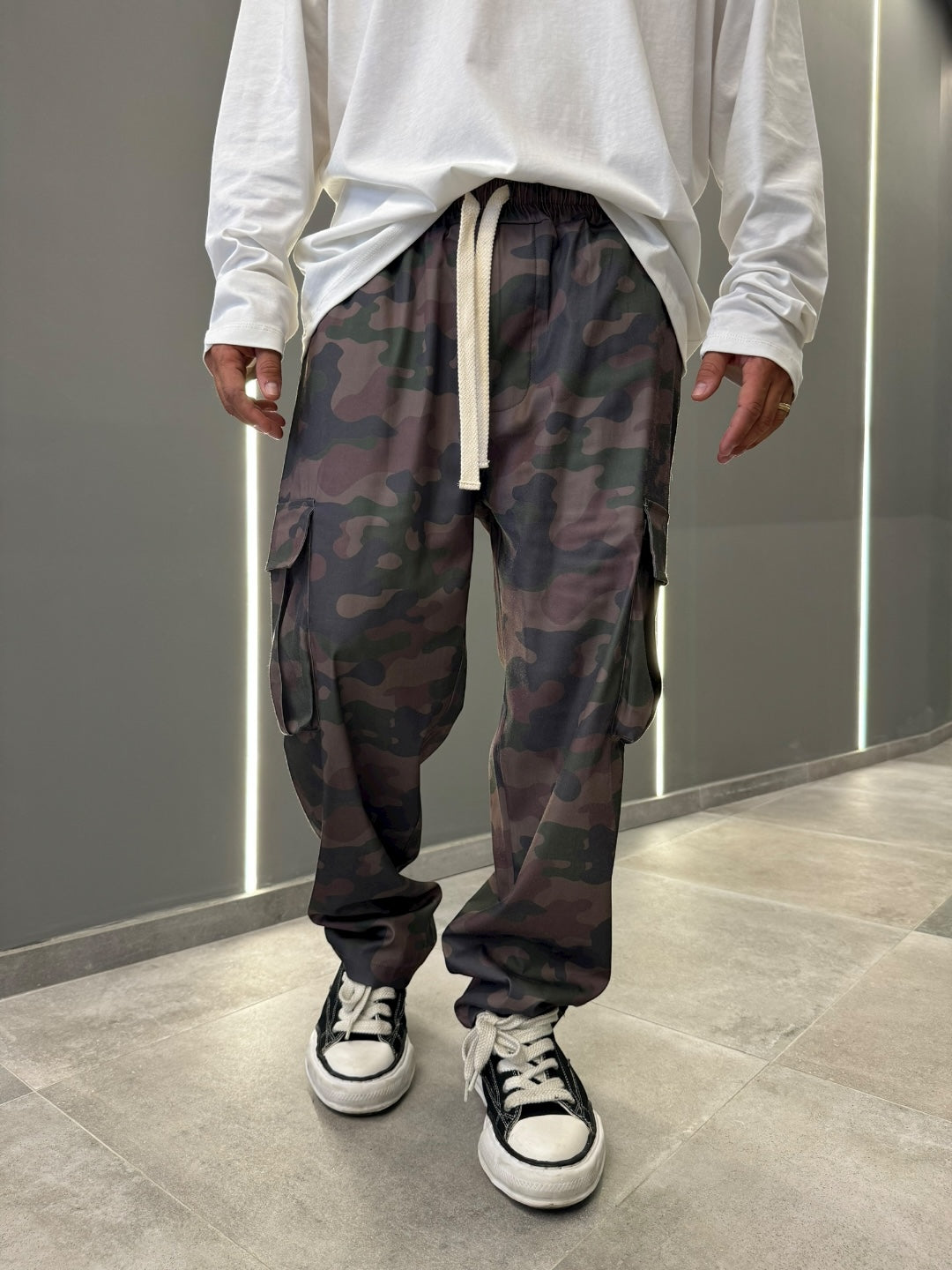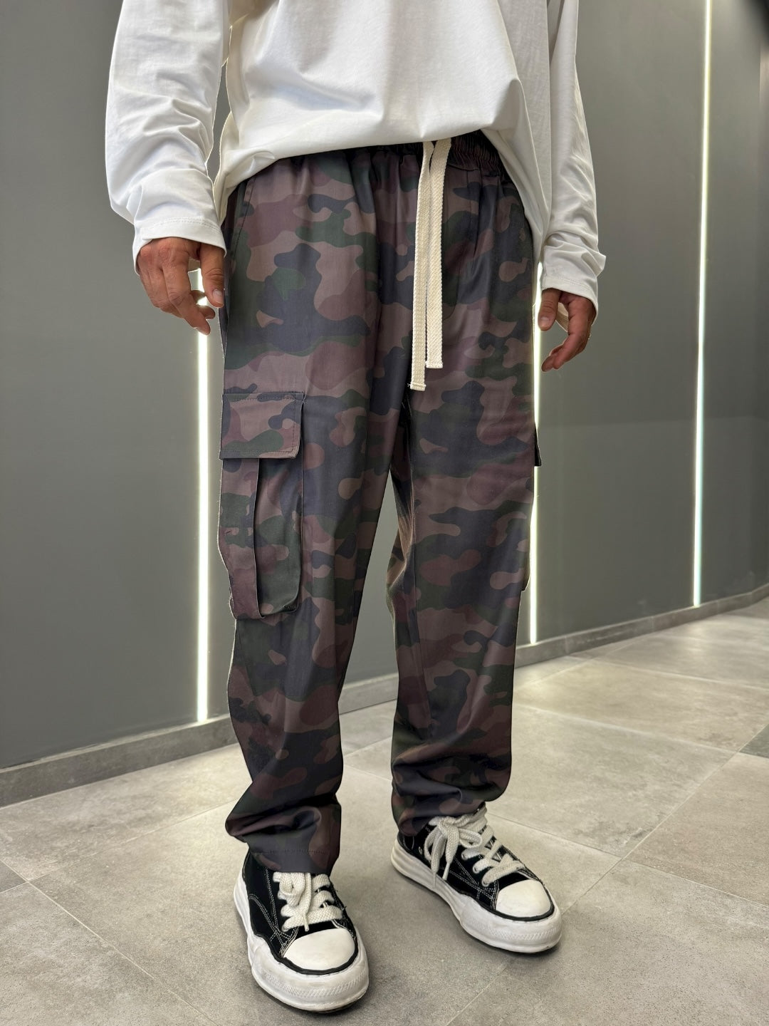 Scopri il massimo comfort e lo stile senza compromessi con i nostri pantaloni cargo camouflage! Realizzati in tessuto morbido e resistente, sono perfetti per chi ama un look casual e dinamico, senza rinunciare alla praticità. La fantasia mimetica in tonalità scure dona un tocco di grinta e originalità, mentre le ampie tasche laterali con patta assicurano spazio extra per portare con te tutto l'essenziale.