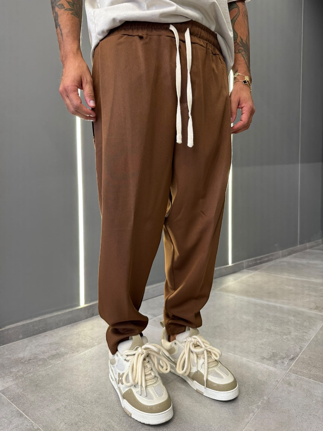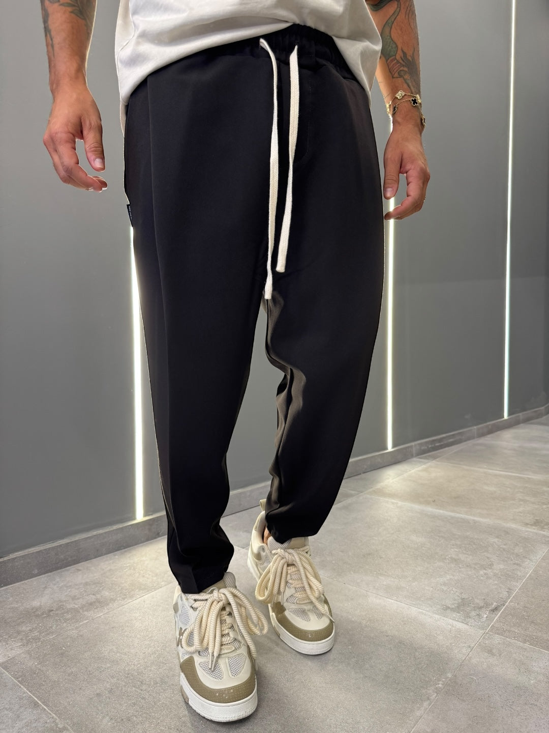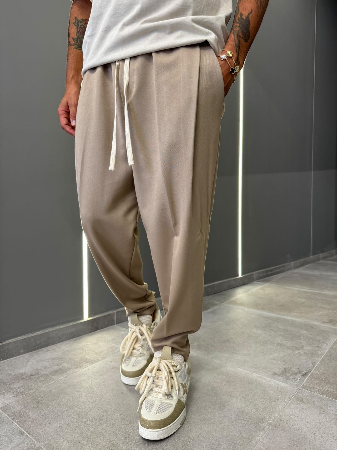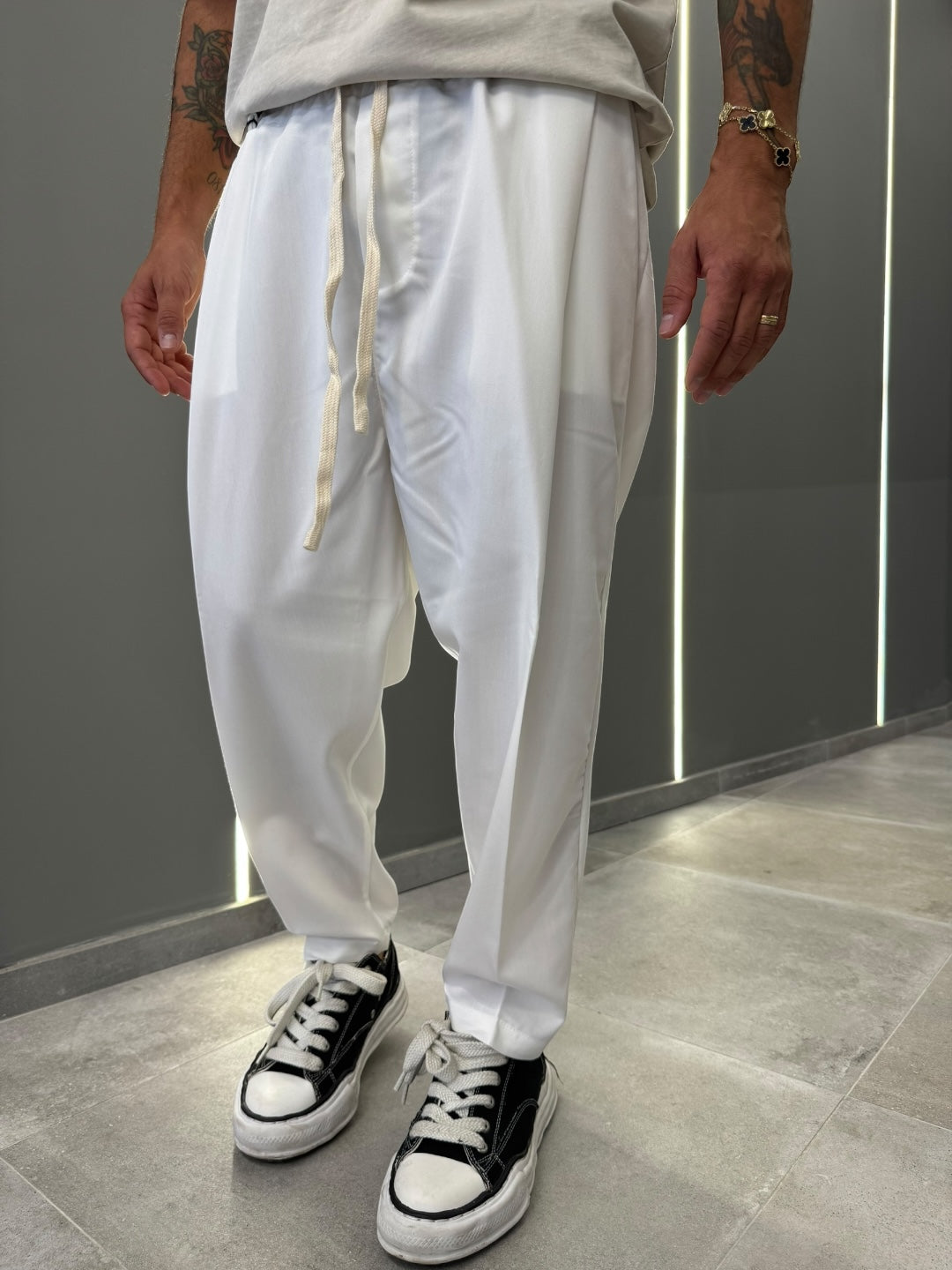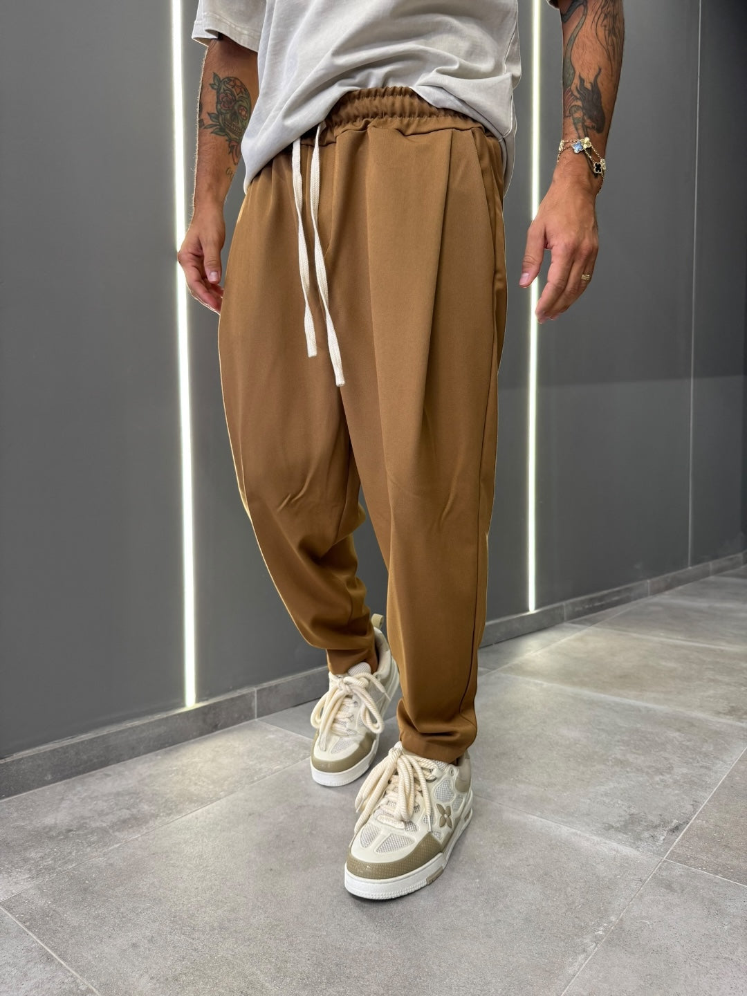 Questo pantalone con laccio è l’ideale per chi cerca un mix tra eleganza e comodità. La vestibilità è perfetta grazie alla costruzione con pence che dona volume nella parte alta, garantendo comfort sulla coscia, mentre il taglio si stringe gradualmente fino alla caviglia, per una silhouette moderna e slanciata.Dotato di pratiche tasche America sui lati, aggiunge funzionalità senza rinunciare allo stile. Il laccio in vita permette di regolare facilmente la vestibilità, adattandosi alle diverse esigenze di chi lo indossa. Questo pantalone si presta a diverse occasioni, da abbinare sia con una camicia per un look casual-elegante che con una t-shirt per uno stile più rilassato.