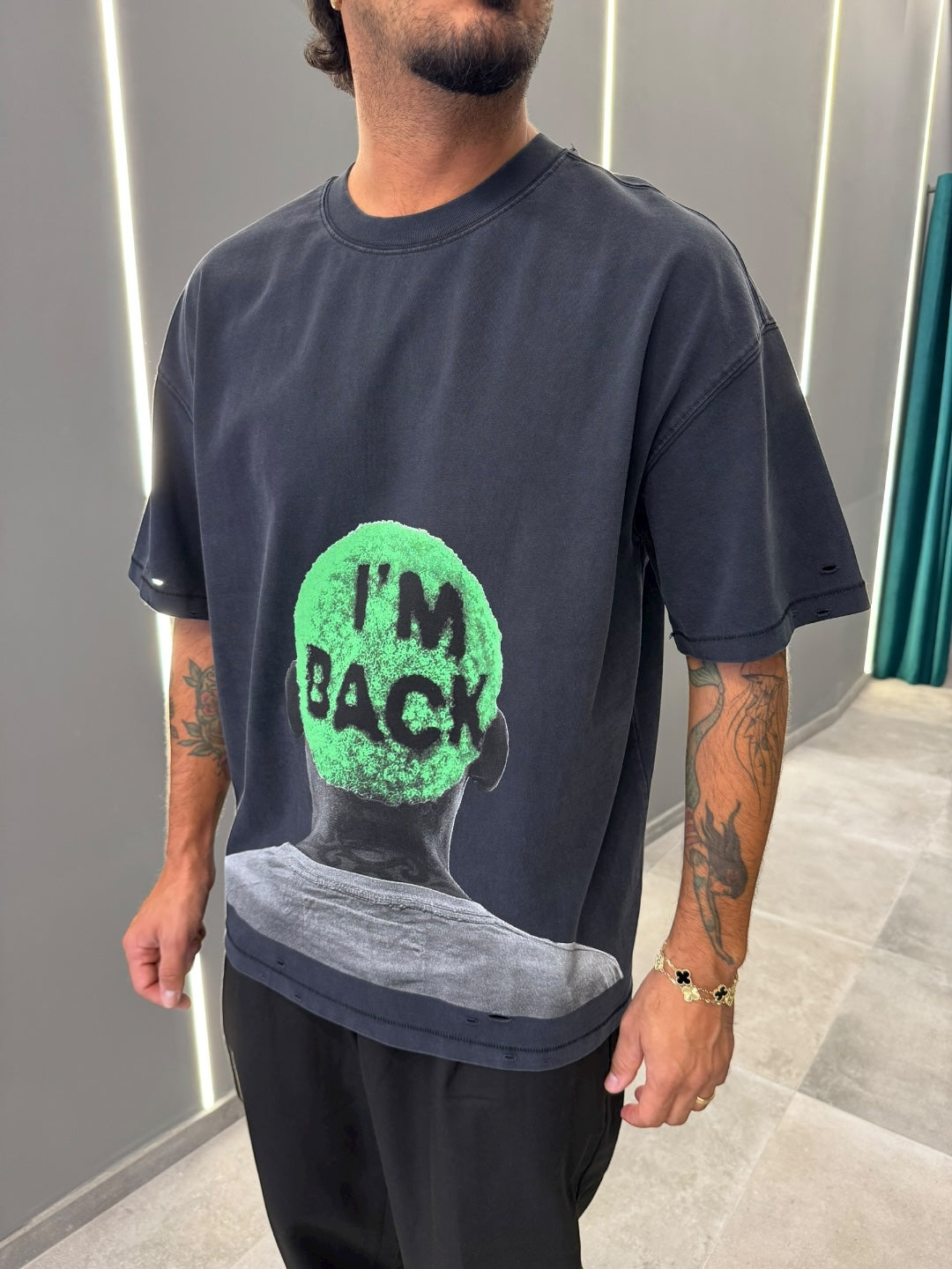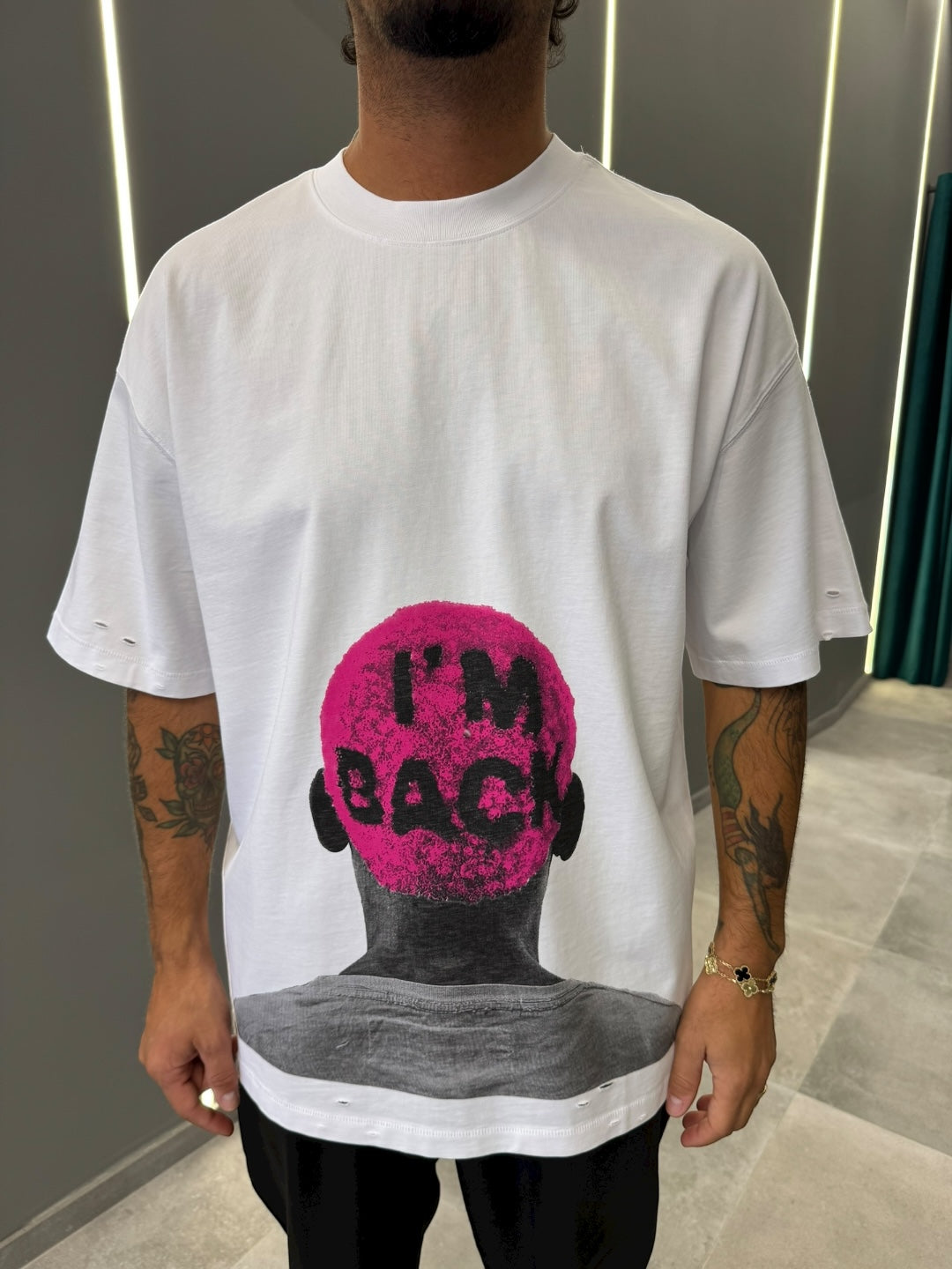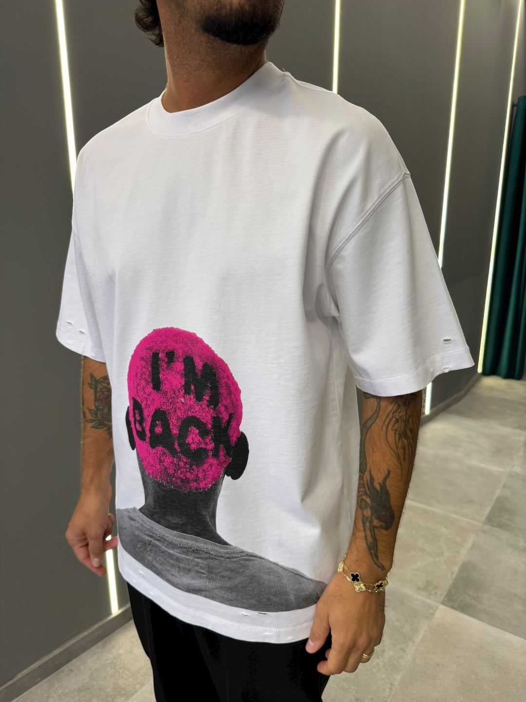 Scopri la t-shirt "I'M BACK", un capo unico e dal carattere deciso che non passerà inosservato nel tuo guardaroba.