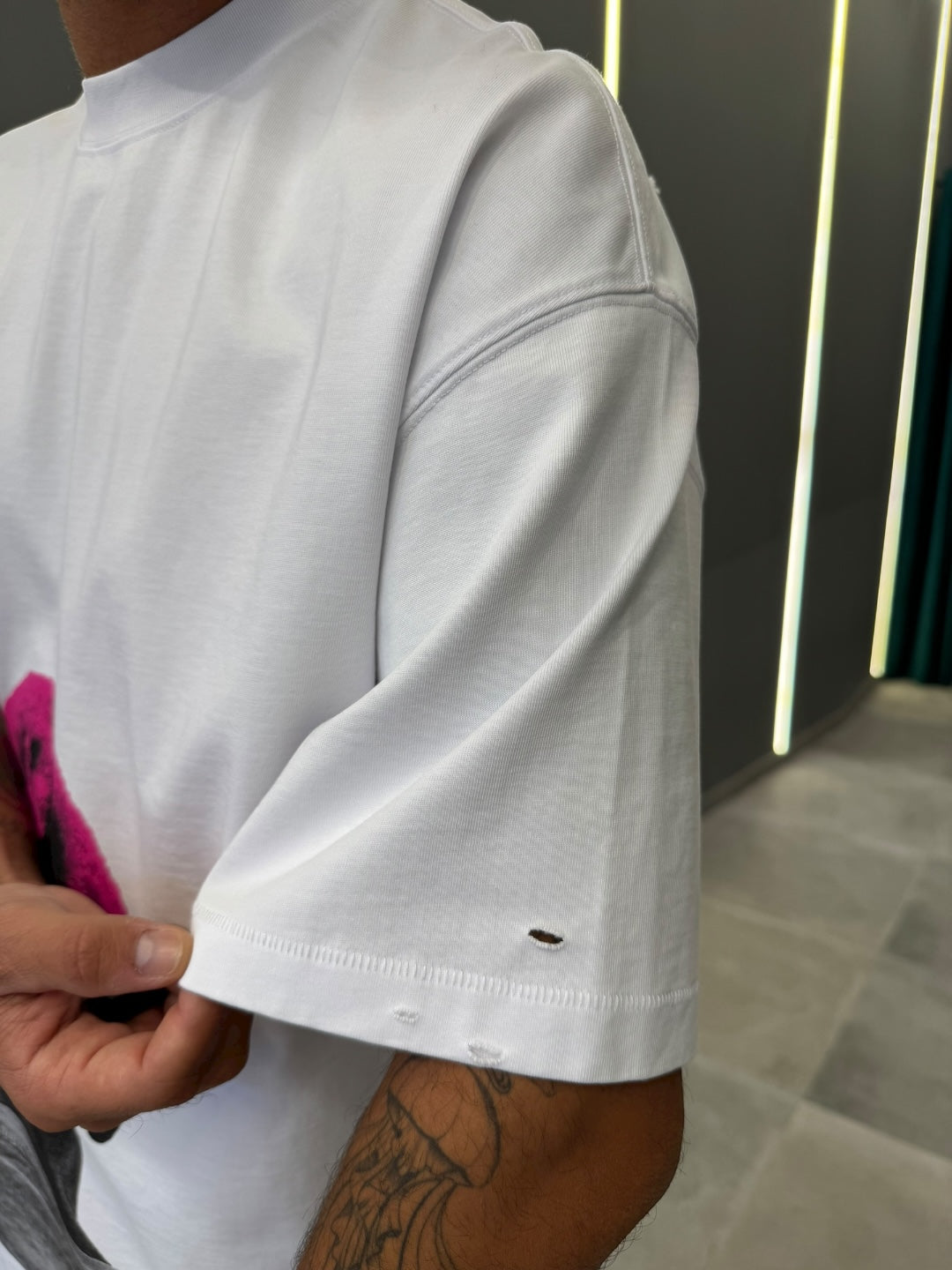 I dettagli vintage con piccoli effetti di usura sulle maniche e l'orlo completano il look, donando un tocco di autenticità e stile streetwear. Disponibile nel classico bianco o nel nero, questa t-shirt è facile da abbinare a jeans, pantaloni cargo o sneakers, trasformando ogni outfit in una dichiarazione di stile.