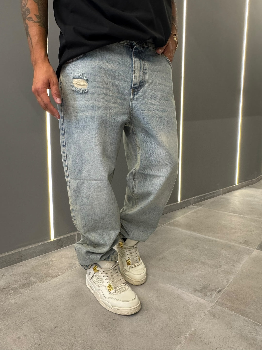 La vestibilità ampia e morbida lo rende ideale per un look rilassato ma deciso, capace di adattarsi a ogni occasione: dal tempo libero agli eventi casual con gli amici. Il dettaglio del piccolo strappo dona un carattere autentico e contemporaneo, esaltando la personalità di chi lo indossa.