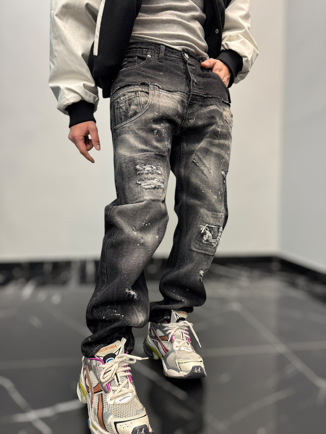 Porta il tuo stile a un livello superiore con questi jeans baggy neri dal fondo ampio, perfetti per un look streetwear deciso e originale. Le rotture strategiche e i dettagli di schizzi di vernice aggiungono un tocco ribelle e artistico, rendendoli un capo unico e grintoso. Realizzati per garantire comfort e libertà di movimento, questi jeans sono l’alleato perfetto per chi ama distinguersi con personalità. Indossali con sneakers e una t-shirt oversize per un outfit che non passa inosservato!”