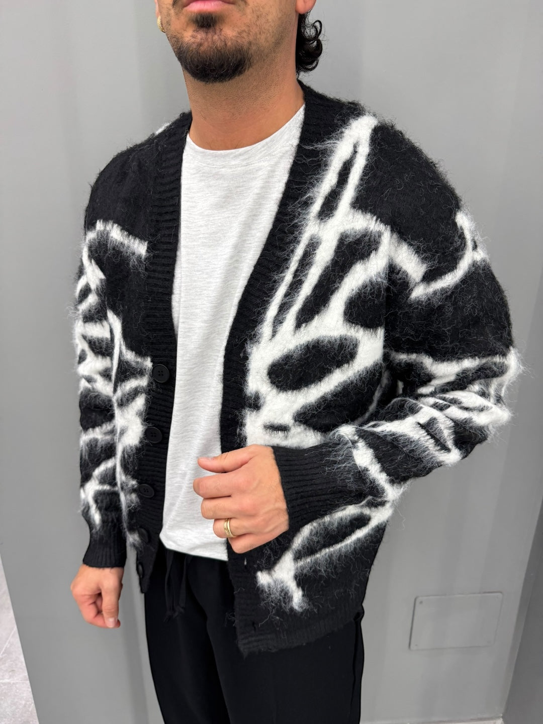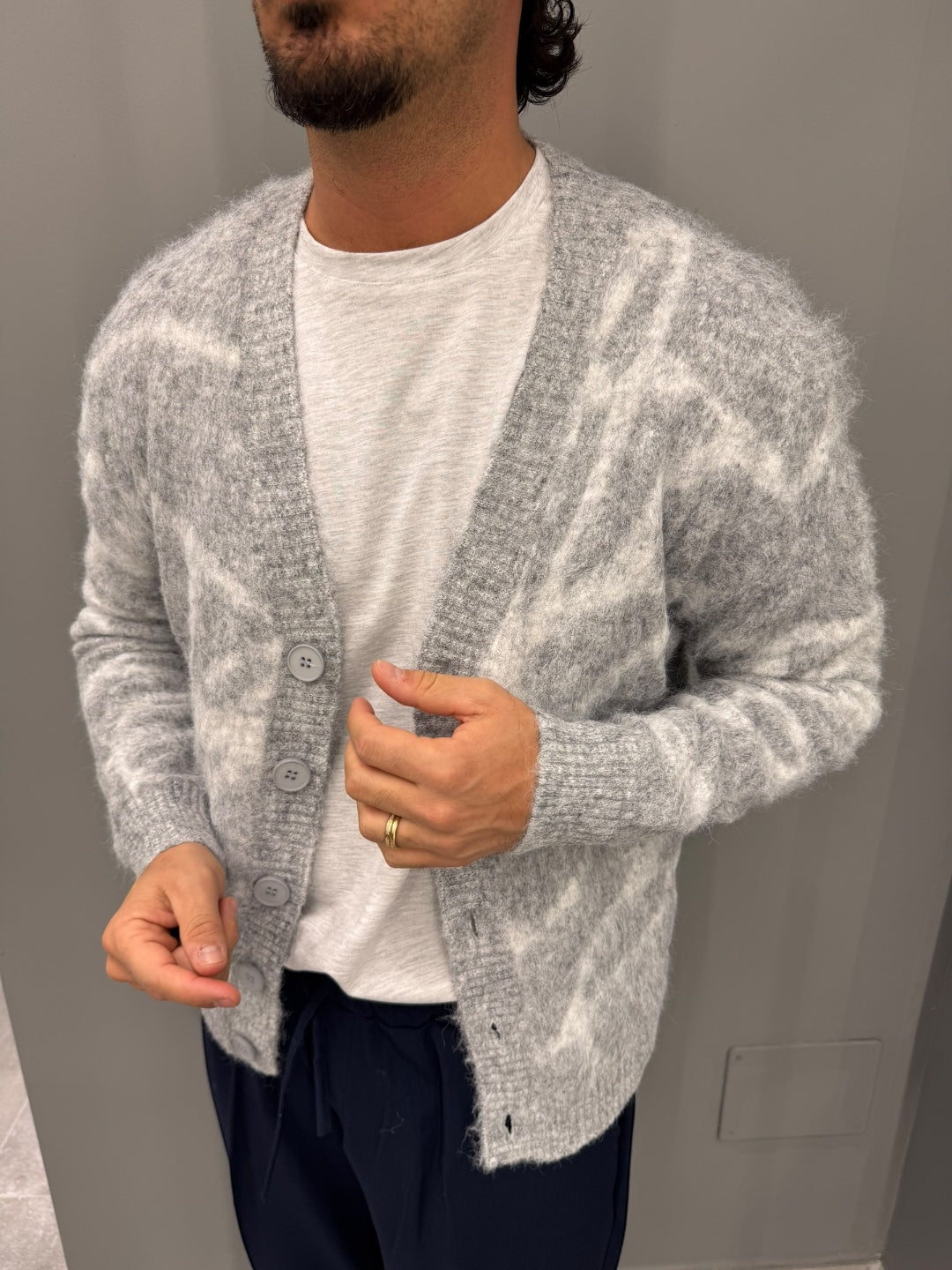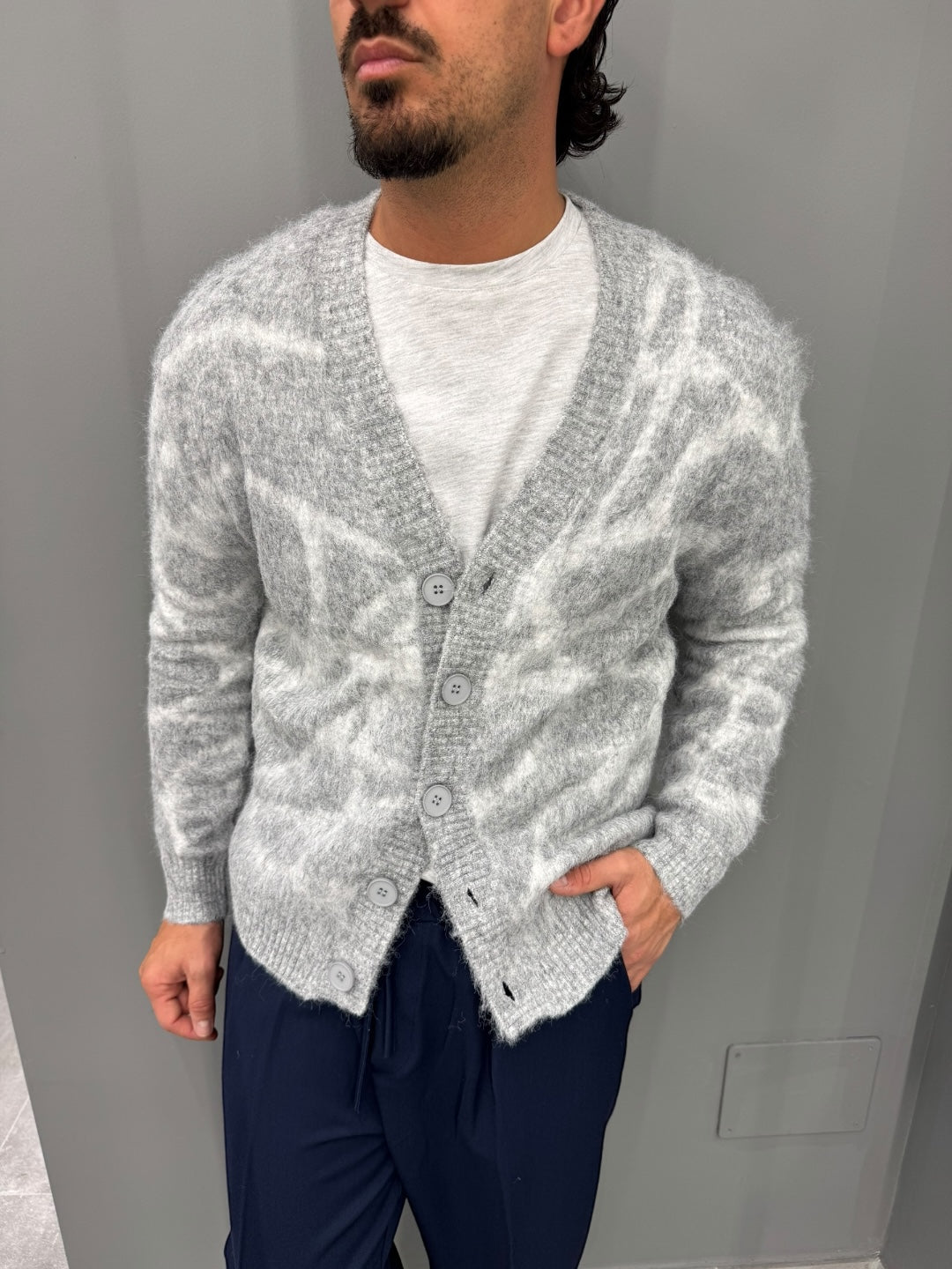 Cardigan in Mohair a Motivo Astratto – Morbidezza Iconica, Stile Deciso