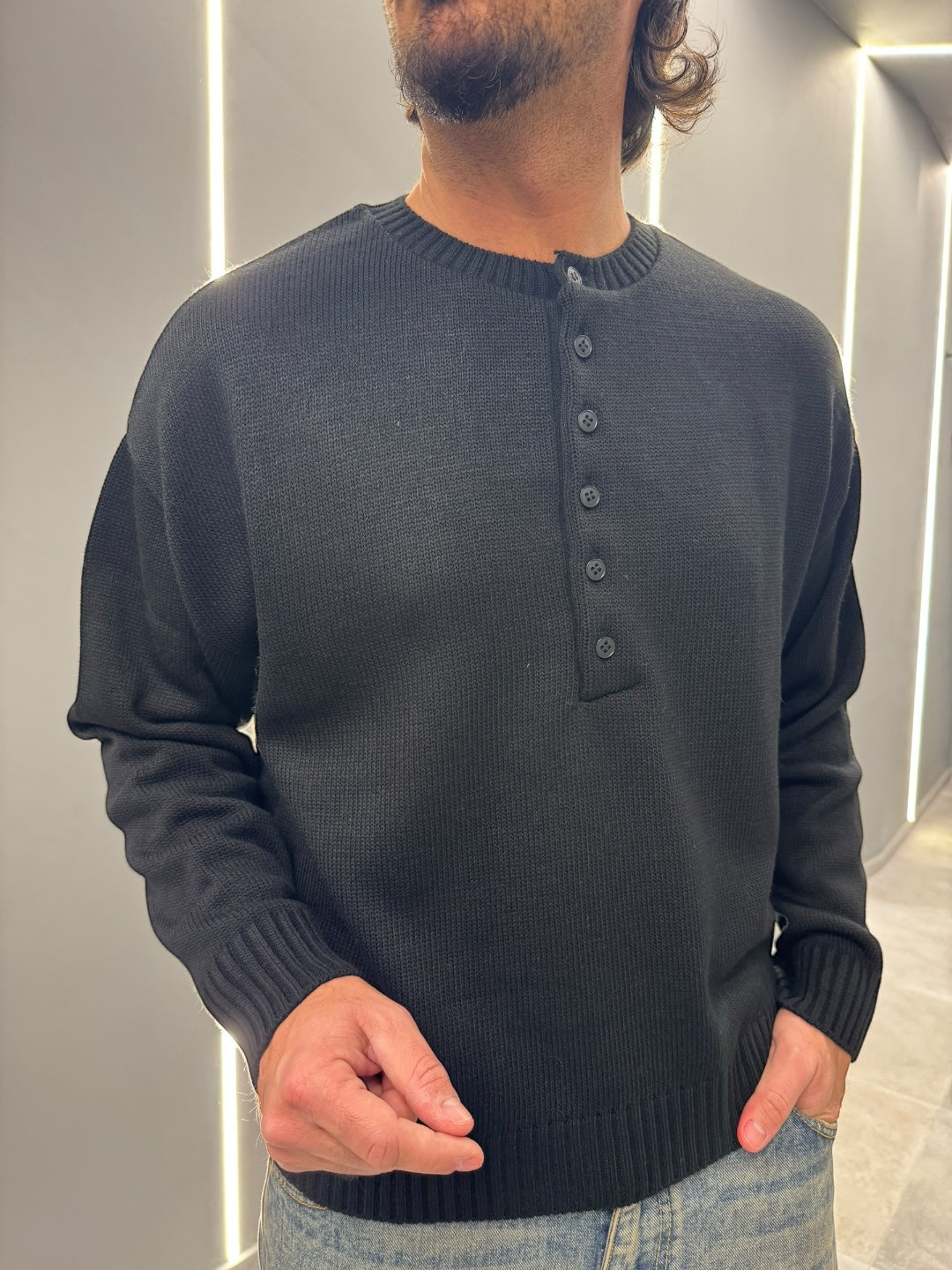 Il modello è alto 1,78 x 76 kg indossa una L