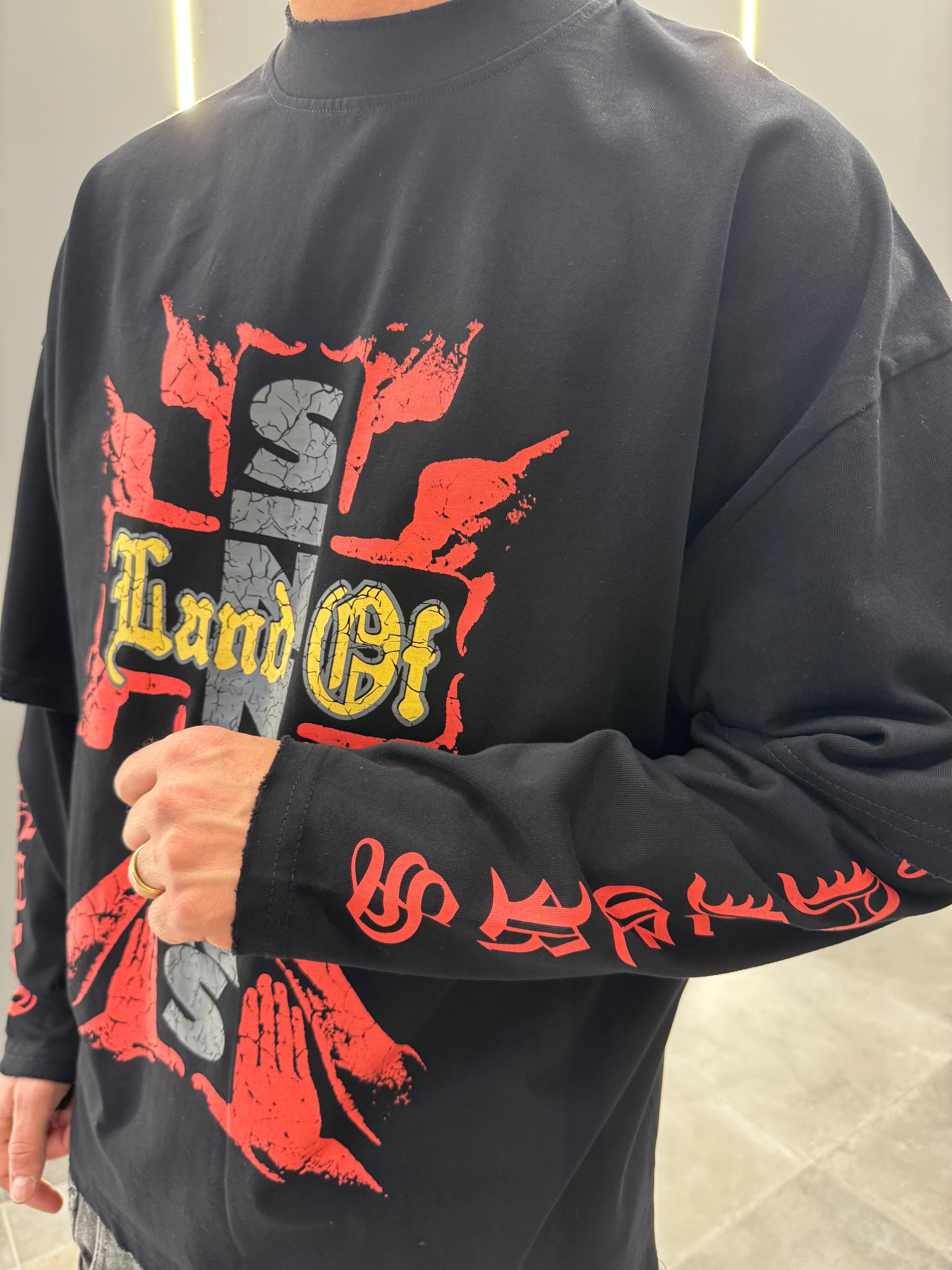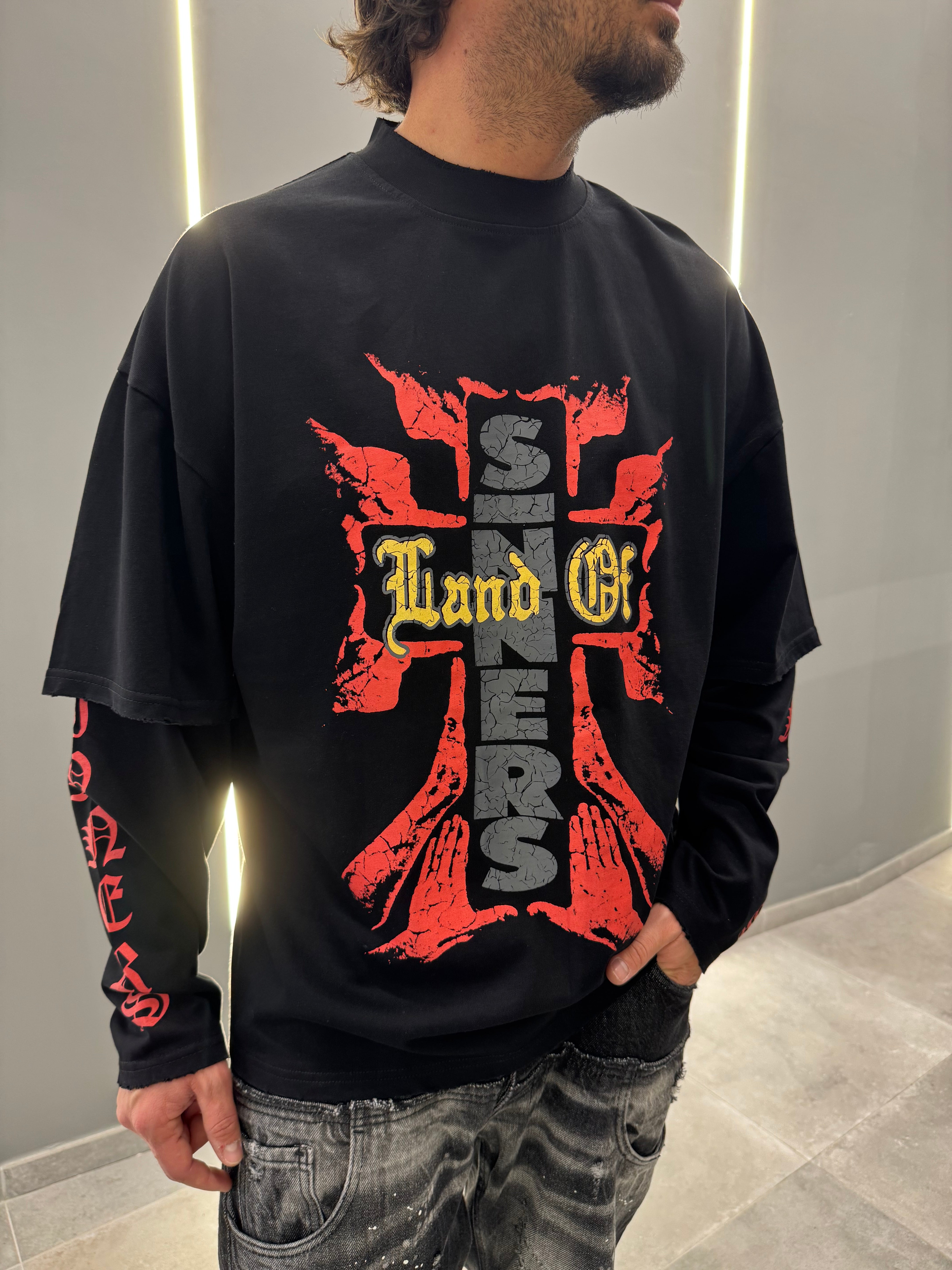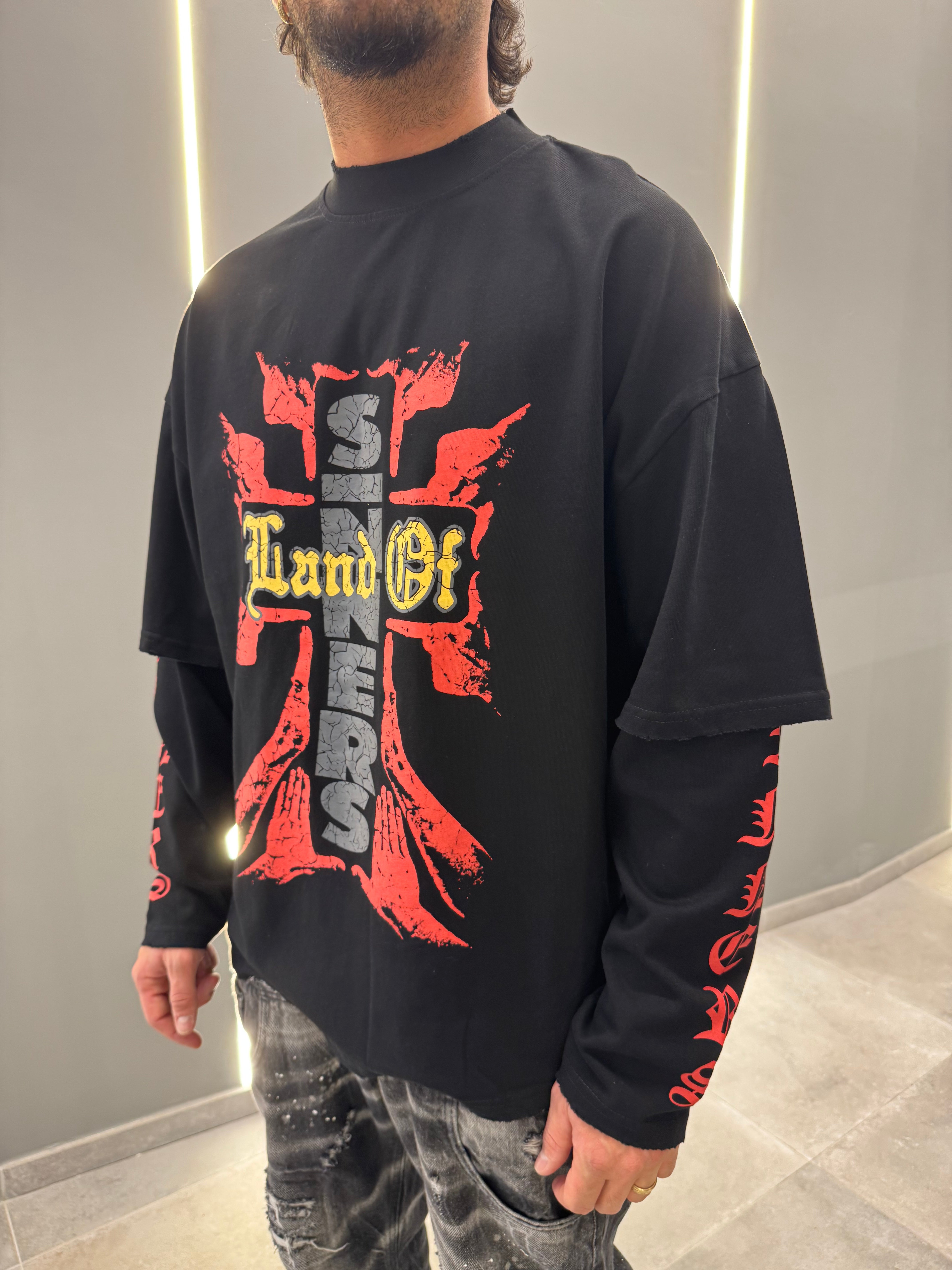 Fai emergere il tuo stile con questa maglia doppia manica in cotone premium, un vero statement di moda.