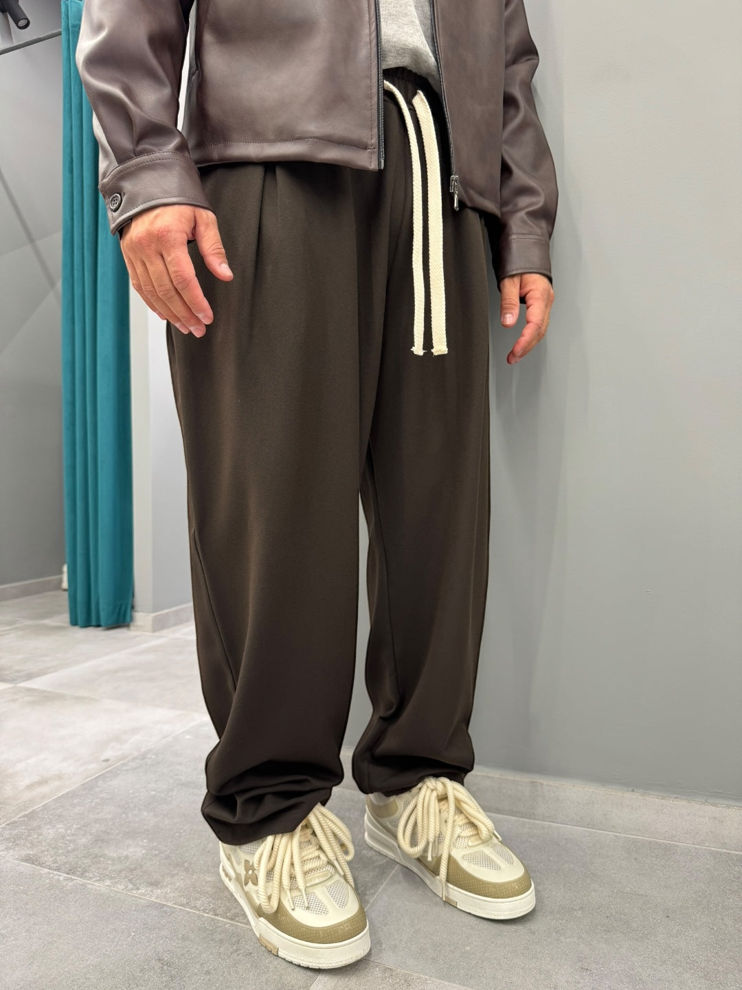Disponibile in tre varianti colore – nero profondo, beige sabbia e caffè scuro – si abbina facilmente a felpe, t-shirt, bomber e sneakers, adattandosi sia a look casual che più ricercati.