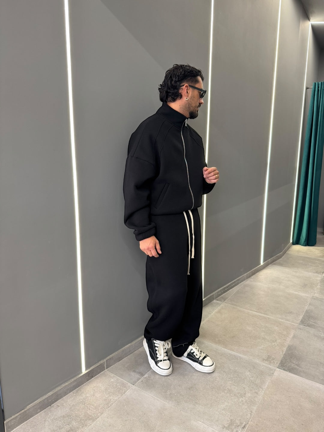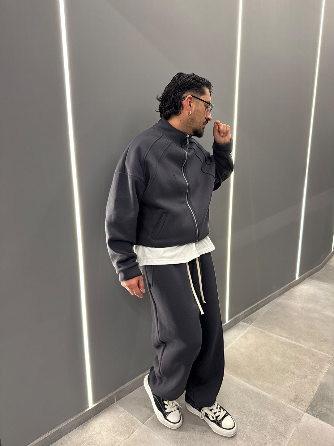 Scopri il comfort e lo stile senza tempo con la nostra tuta felpata moderna, un must-have per il tuo guardaroba! Disponibile nei sofisticati colori nero moro e grigio ferro, questa tuta è progettata per farti sentire al meglio in ogni occasione.