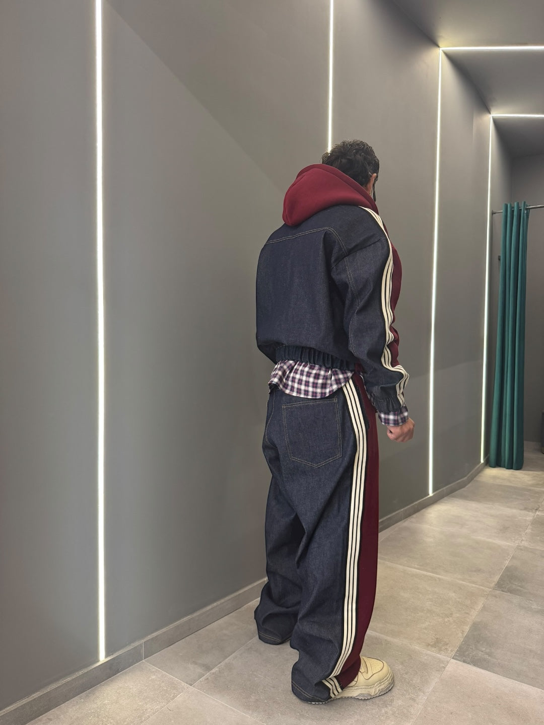 Presentiamo il tuo nuovo alleato di stile: il coordinato baggy con davanti in felpa e retro in denim! Questo pezzo unico è la combinazione perfetta di comfort e moda, ideale per chi ama esprimere la propria personalità attraverso l’abbigliamento.
