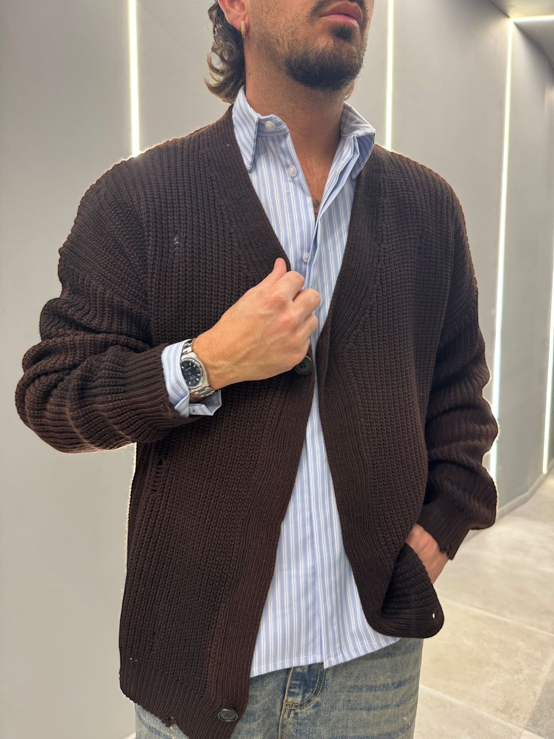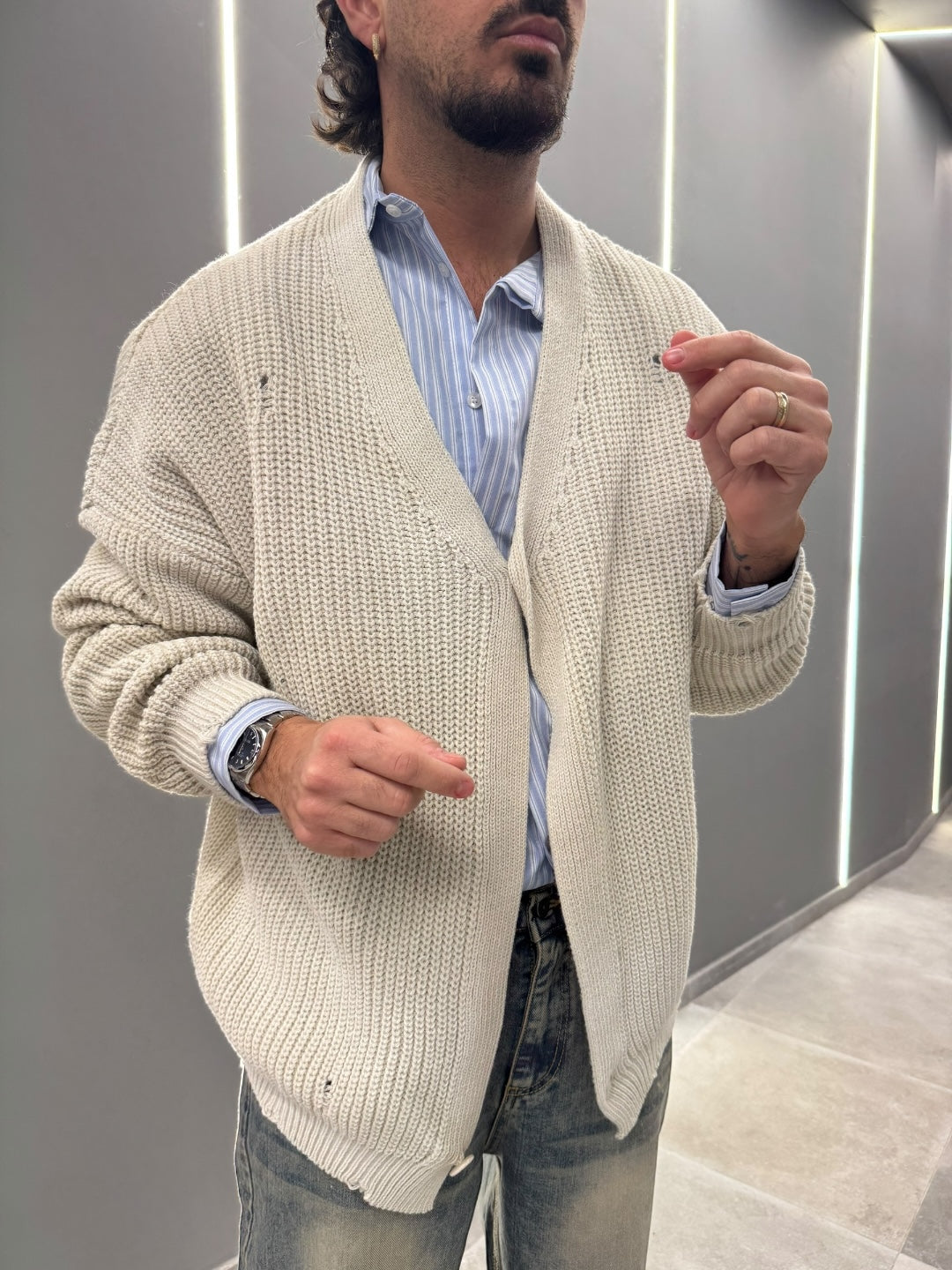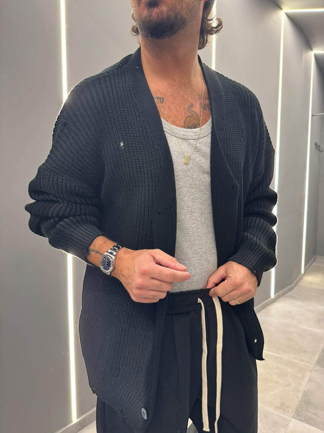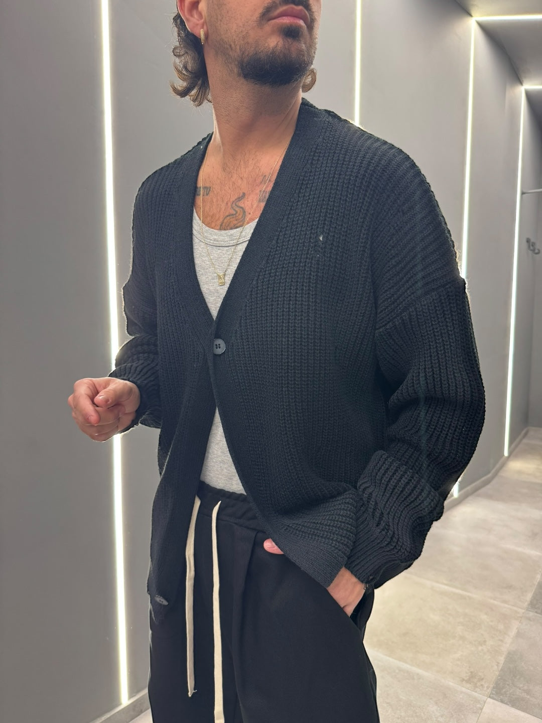 Il modello è alto 1.78 x 75kg indossa una M