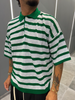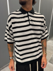 Scopri l'eleganza senza tempo della nostra polo a righe bianche e nere, perfetta per chi cerca uno stile casual ma raffinato. Realizzata in morbido tessuto lavorato a maglia con un motivo a zigzag sottile che dona un tocco unico e distintivo. Il colletto nero a costine con chiusura a due bottoni bianchi aggiunge un dettaglio classico, mentre le maniche corte e il taglio leggermente oversize garantiscono comfort e libertà di movimento. Ideale da abbinare a jeans o pantaloni chino per un look versatile, moderno e di grande impatto. La polo perfetta per ogni occasione, dal tempo libero al casual Friday in ufficio.