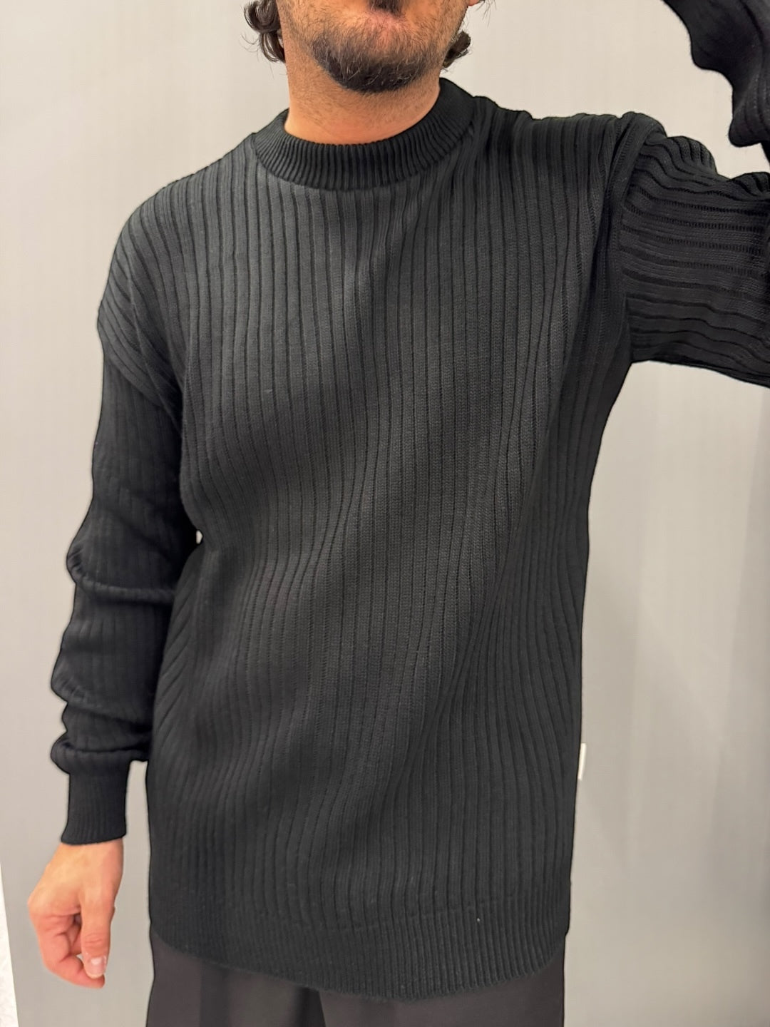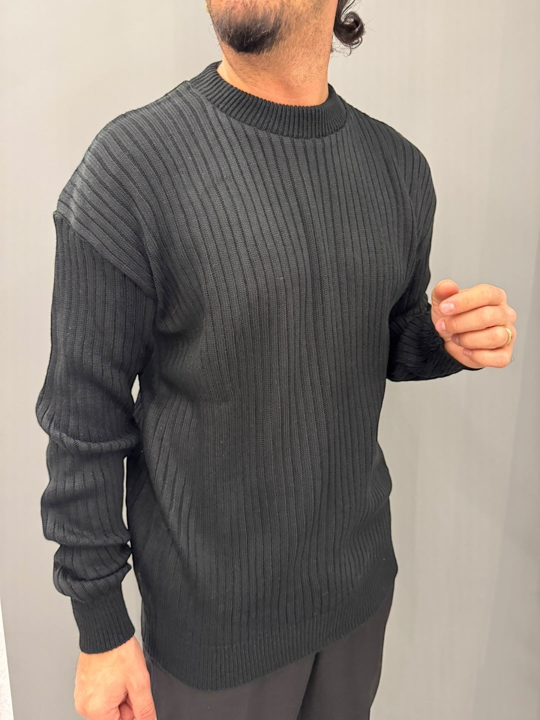 - Design Moderno: Le coste larghe donano texture e movimento al maglione, rendendolo un pezzo distintivo per ogni outfit.